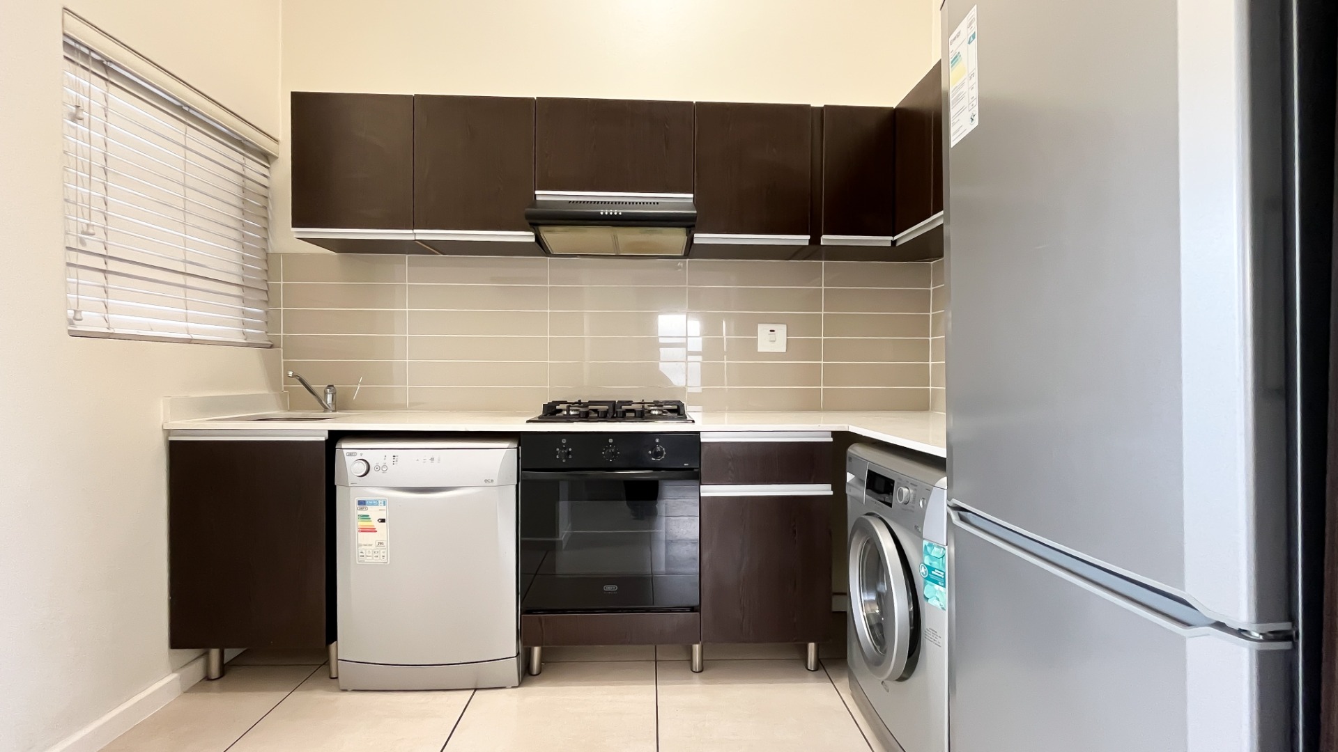 This top-floor apartment impresses from the moment you step through the door. The modern kitchen boasts ample cabinetry and comes equipped with high-end appliances, including a washing machine, dishwasher, and fridge, all from respected brands.