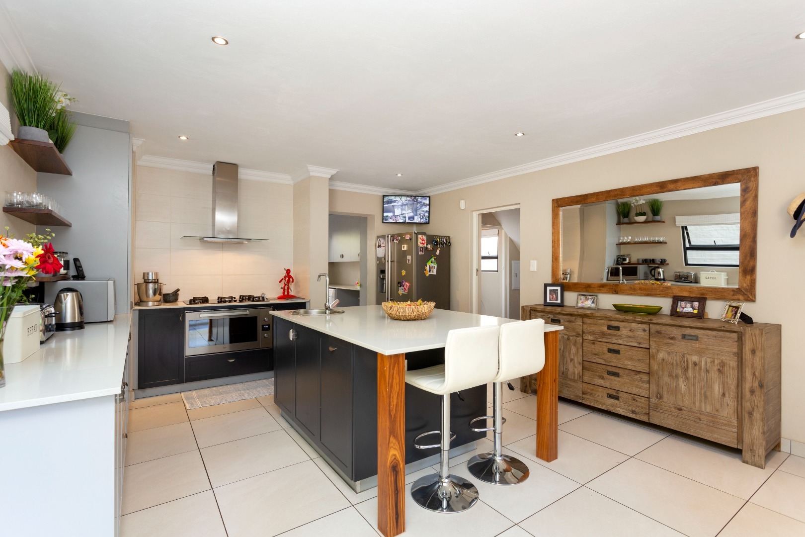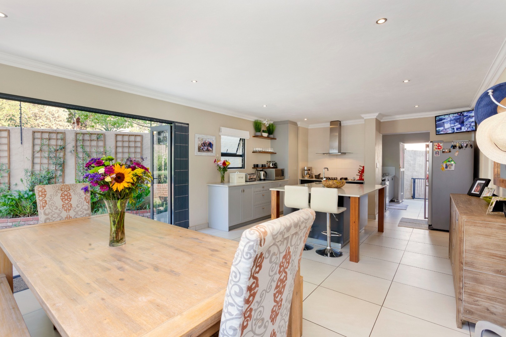 The open-plan kitchen and casual dining area is perfect for interaction between family and friends.