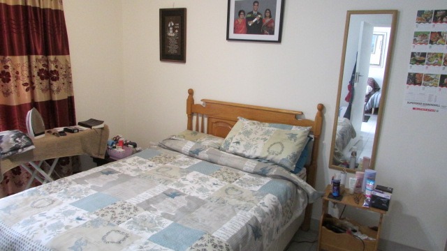 The bedroom is comfortable in size and includes built-in cupboards, offering stylish and practical living.