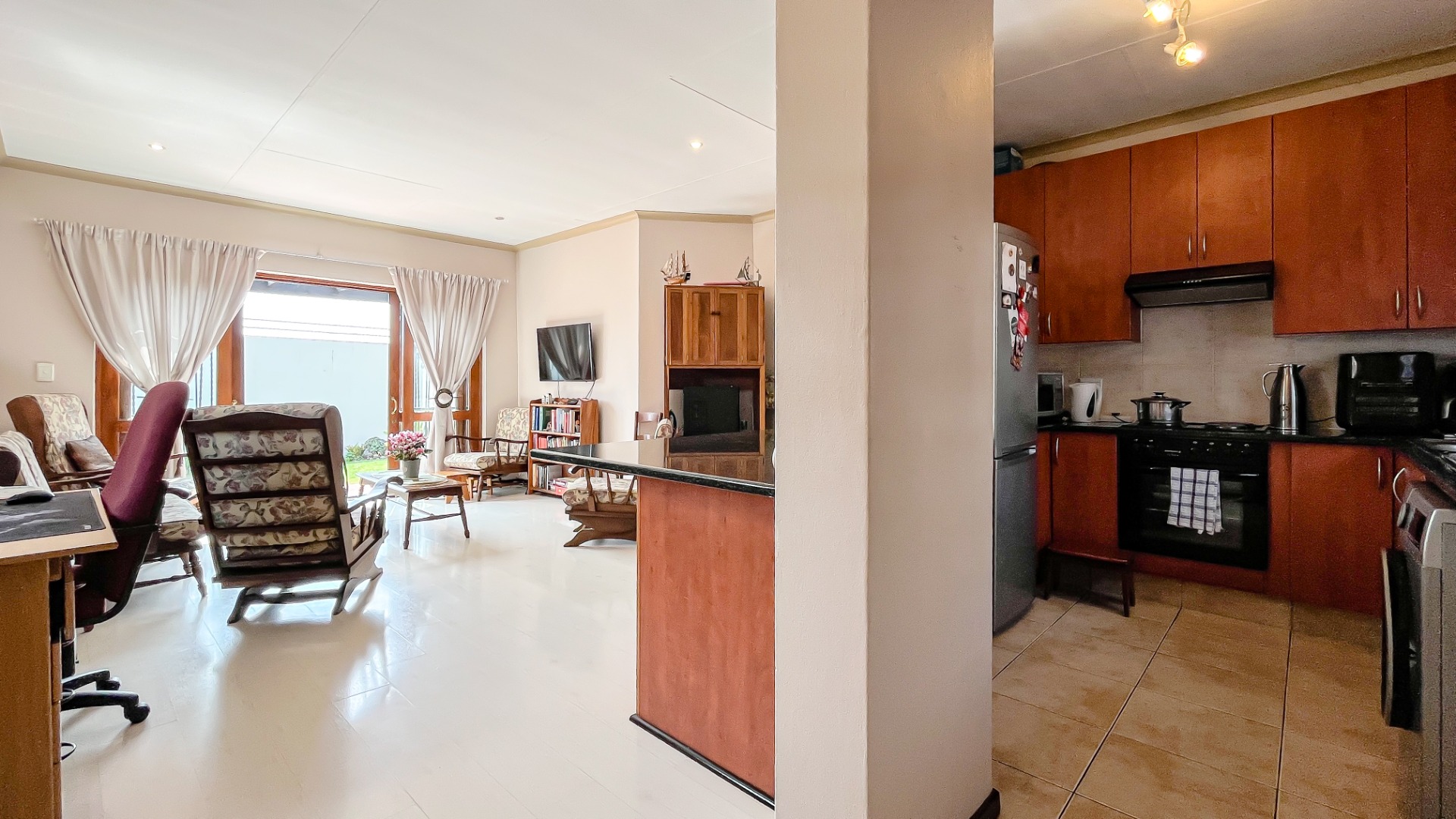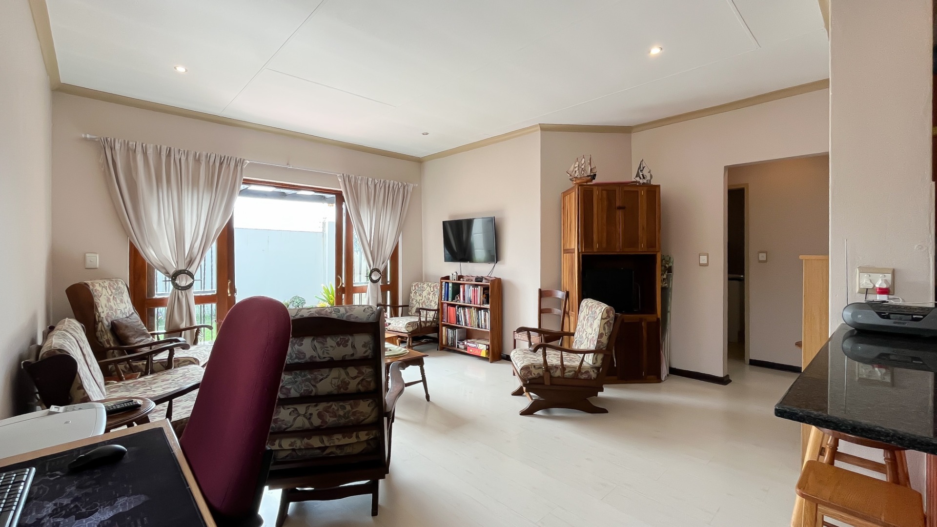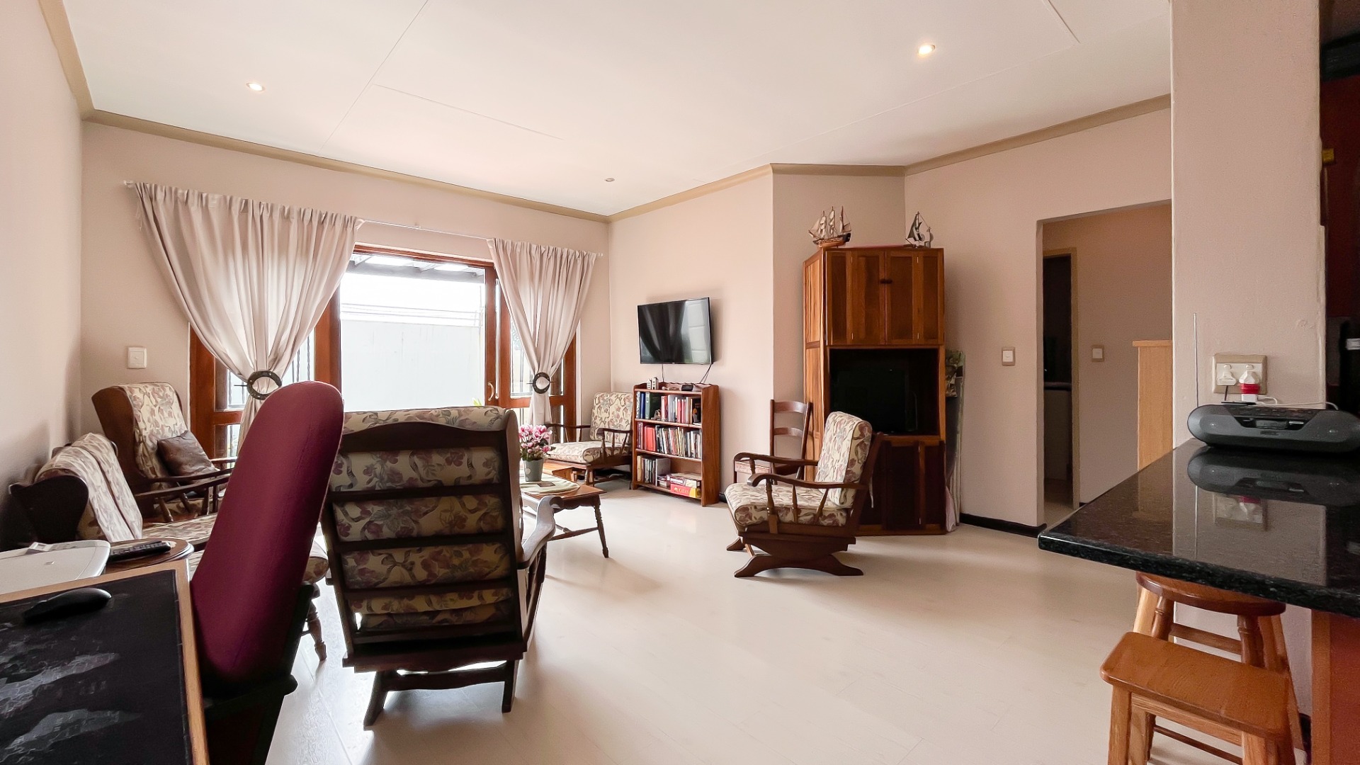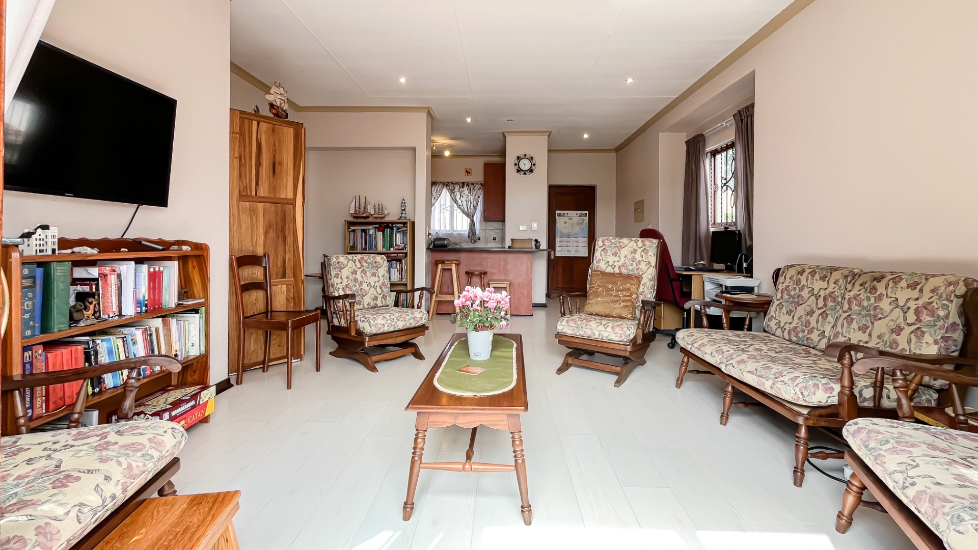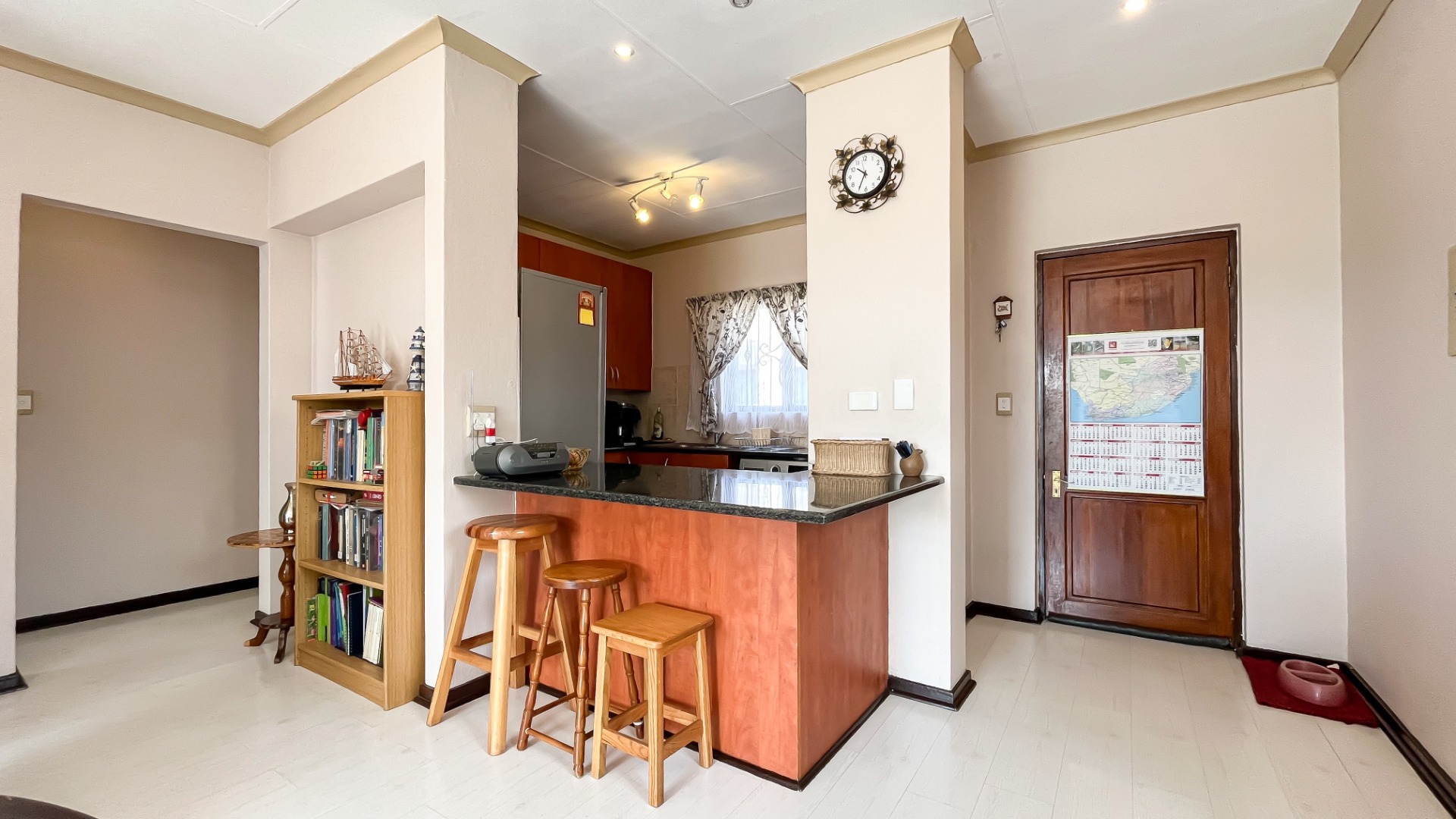 The interior features a thoughtfully arranged layout, comprising two comfortable bedrooms and a single, well-appointed bathroom. The living spaces include a dedicated lounge, providing a relaxed setting for daily activities, alongside a separate dining room ideal for entertaining or family meals. A functional kitchen is equipped to meet everyday culinary needs, ensuring a seamless living experience. Enhancing the lifestyle offering, residents benefit from access to a communal swimming pool, perfect for unwinding during warm South African days.