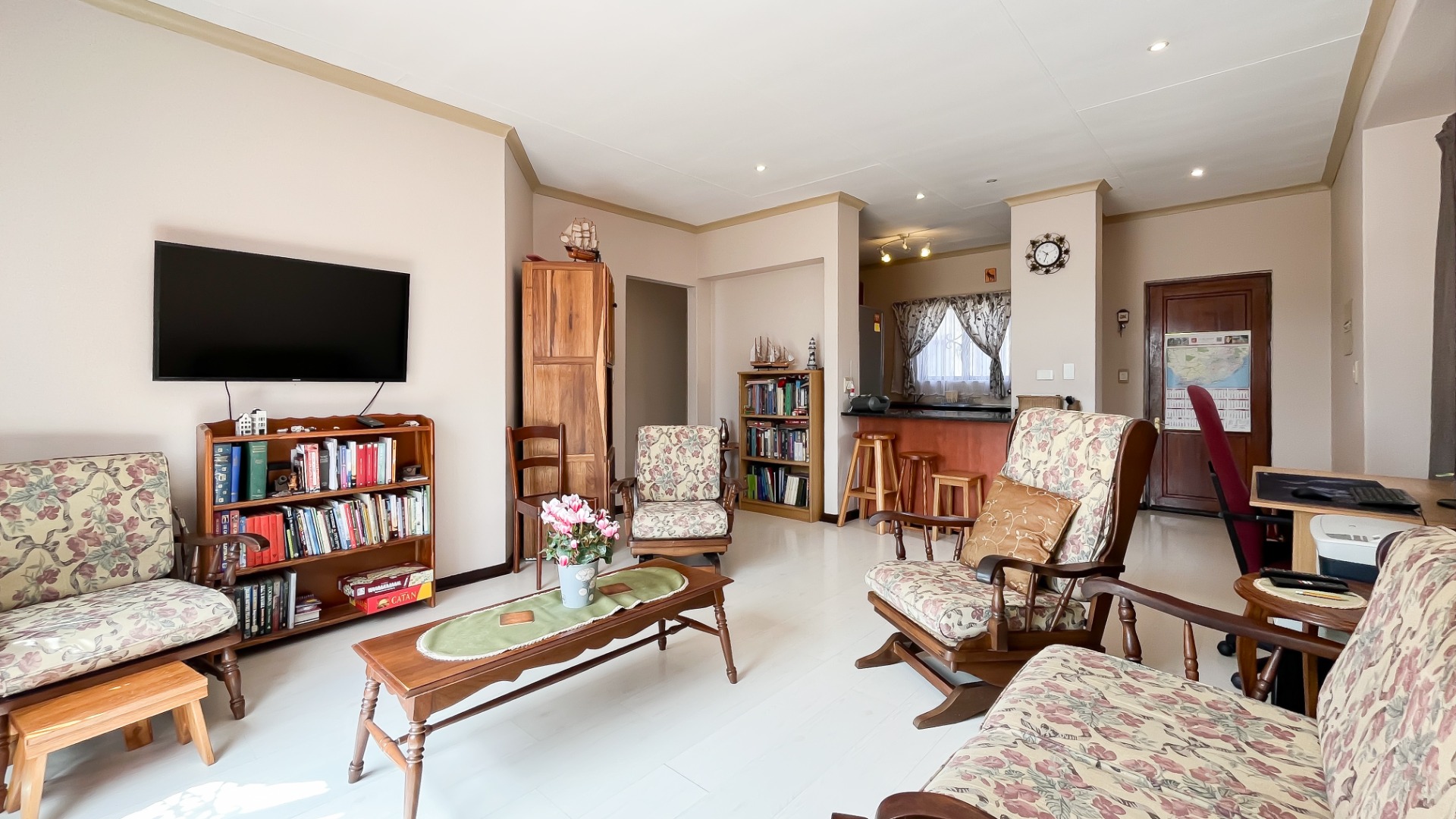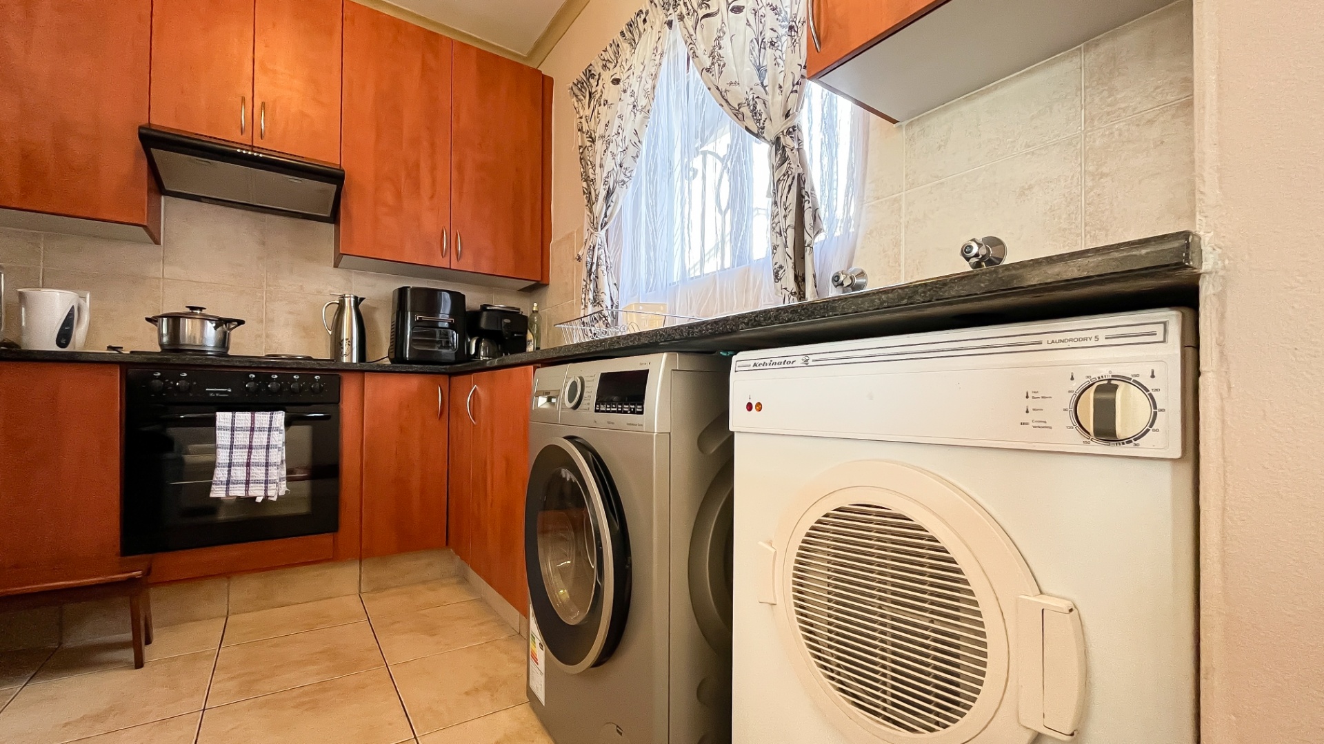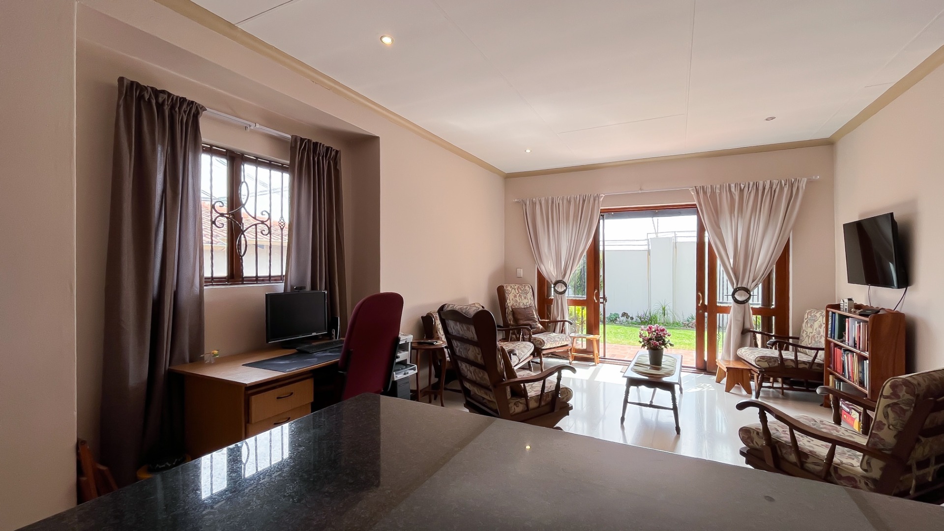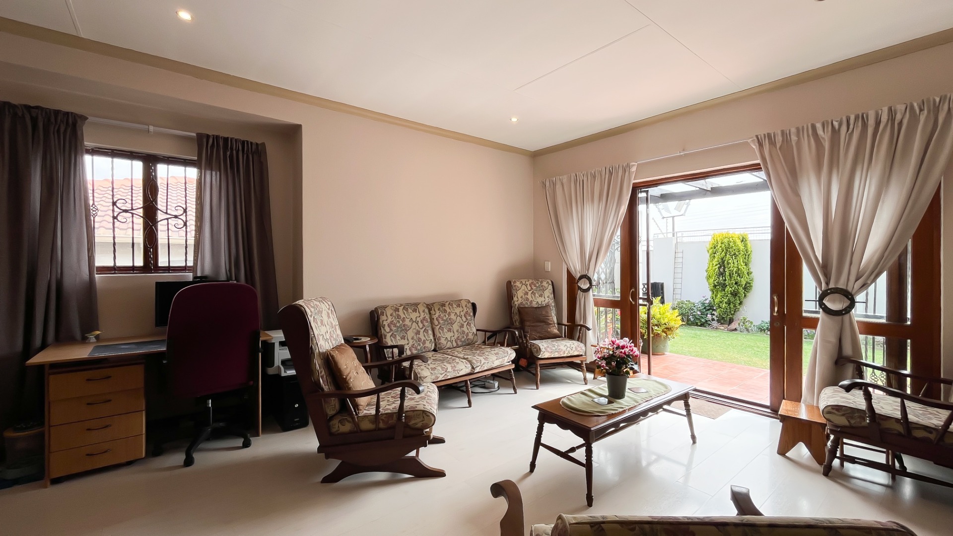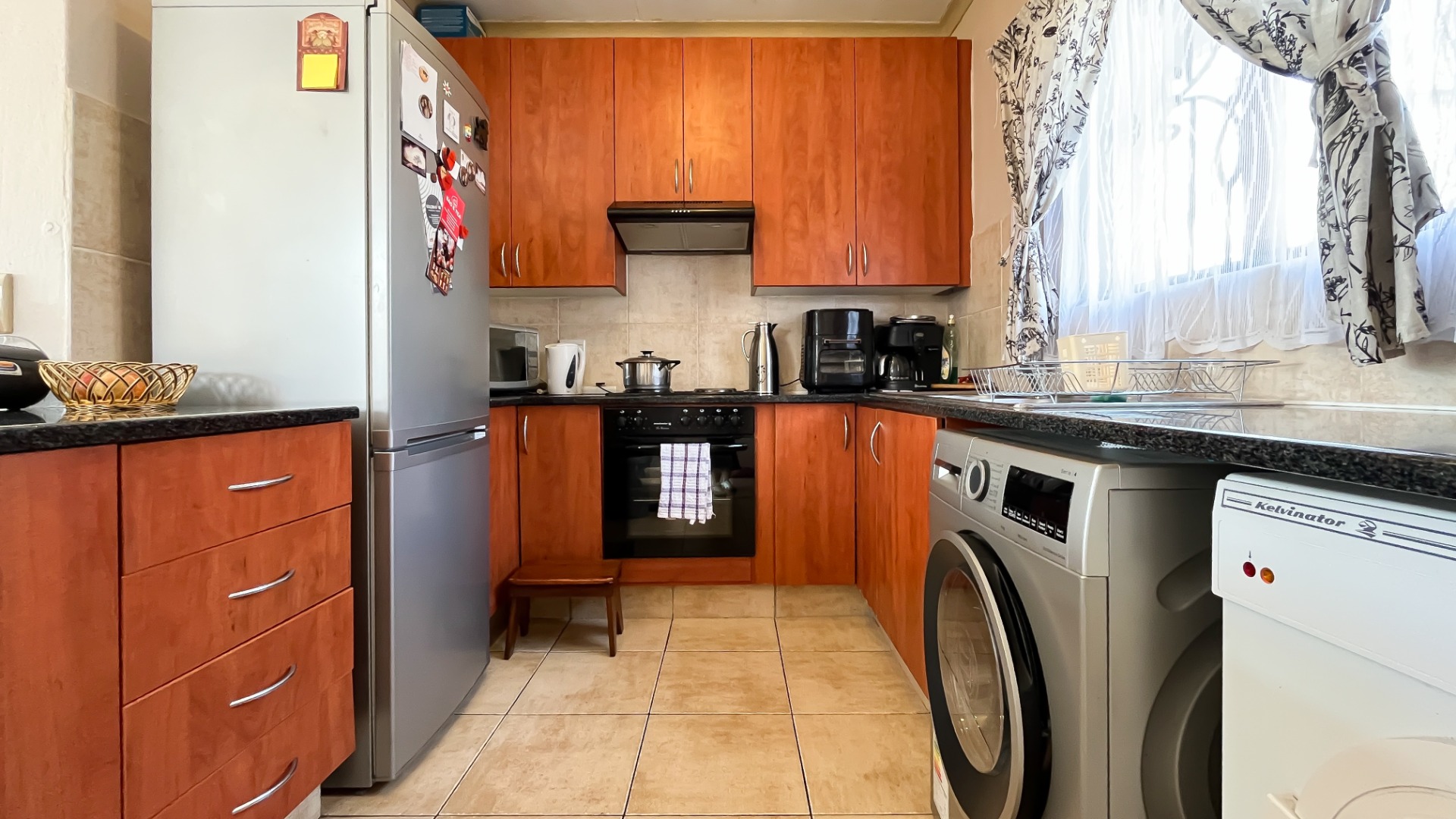The interior features a thoughtfully arranged layout, comprising two comfortable bedrooms and a single, well-appointed bathroom. The living spaces include a dedicated lounge, providing a relaxed setting for daily activities, alongside a separate dining room ideal for entertaining or family meals. A functional kitchen is equipped to meet everyday culinary needs, ensuring a seamless living experience. Enhancing the lifestyle offering, residents benefit from access to a communal swimming pool, perfect for unwinding during warm South African days.