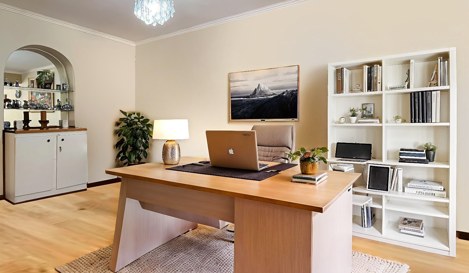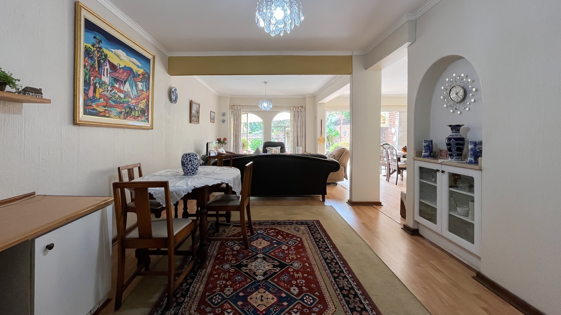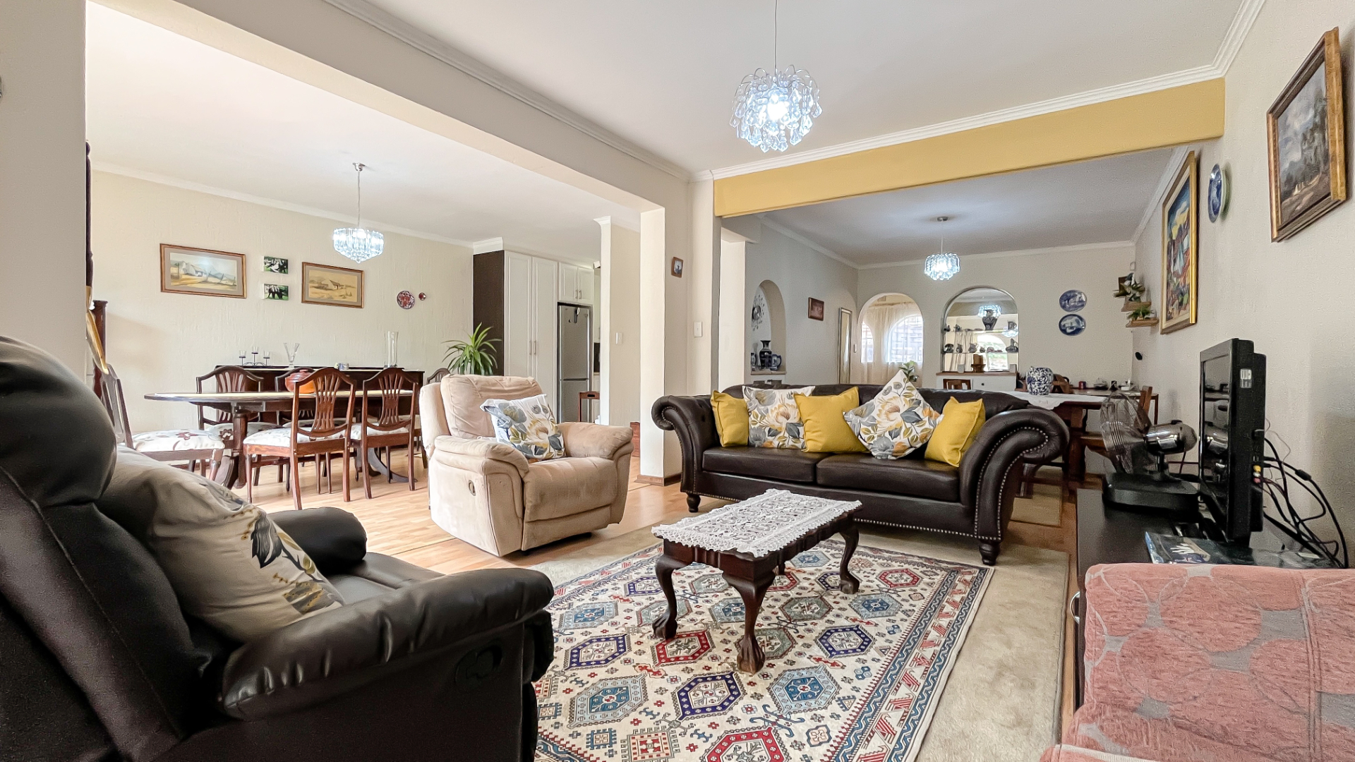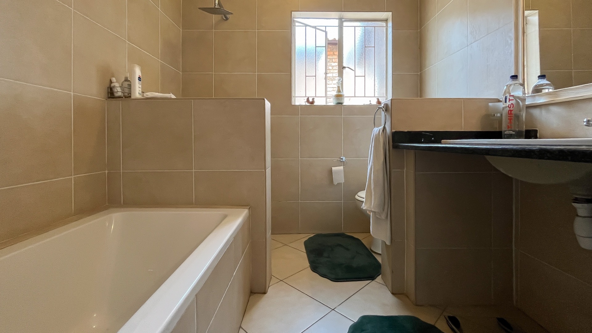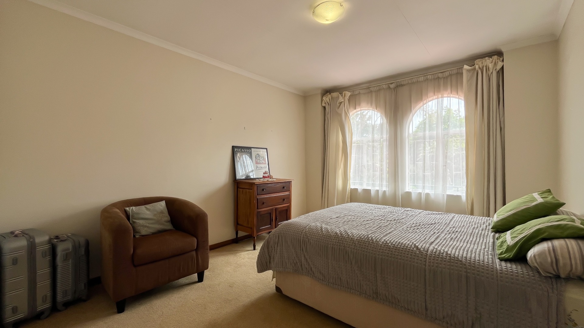 Downstairs features a bright open-plan layout, including a well-appointed kitchen with pantry, generous dining area, lounge, and a dedicated work-from-home corner. Step outside to a covered patio and built-in braai area, leading onto a fully paved, low-maintenance garden with your very own private swimming pool—perfect for relaxed weekends and easy entertaining.