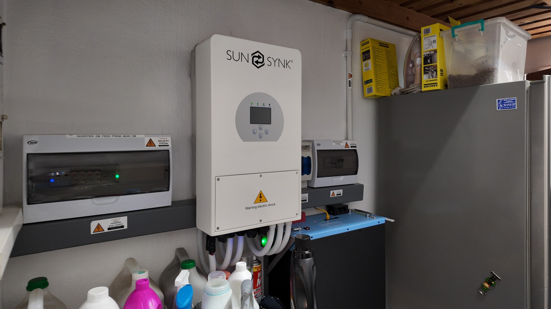 The first of two garages has a sun sync an inverter, db feed from main db and a Photovoltaic system.