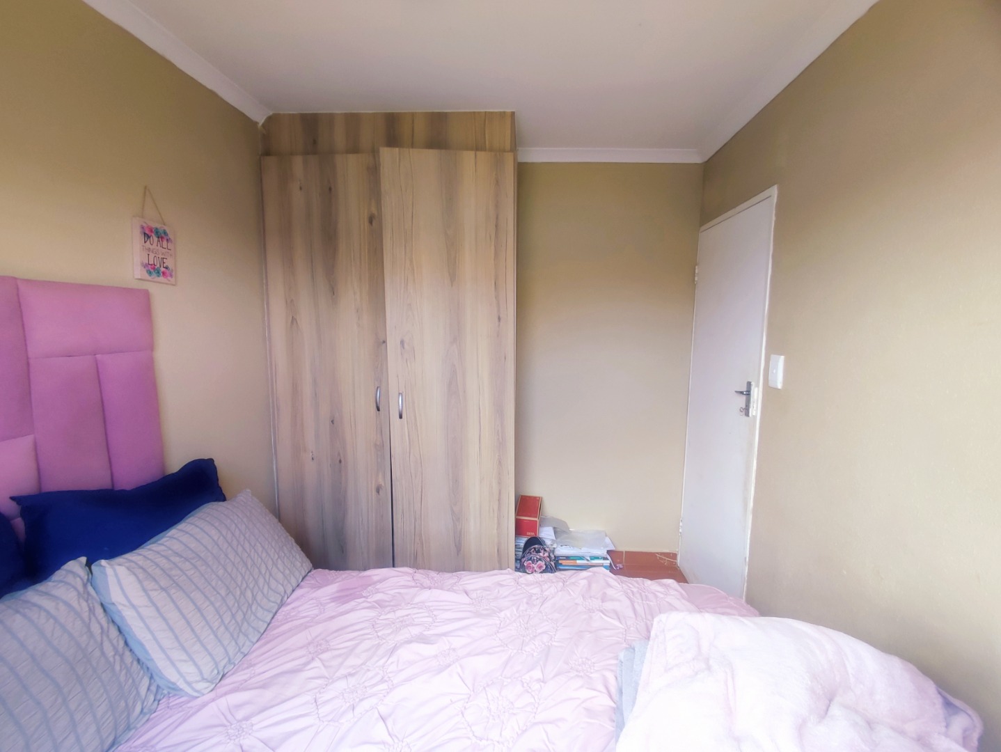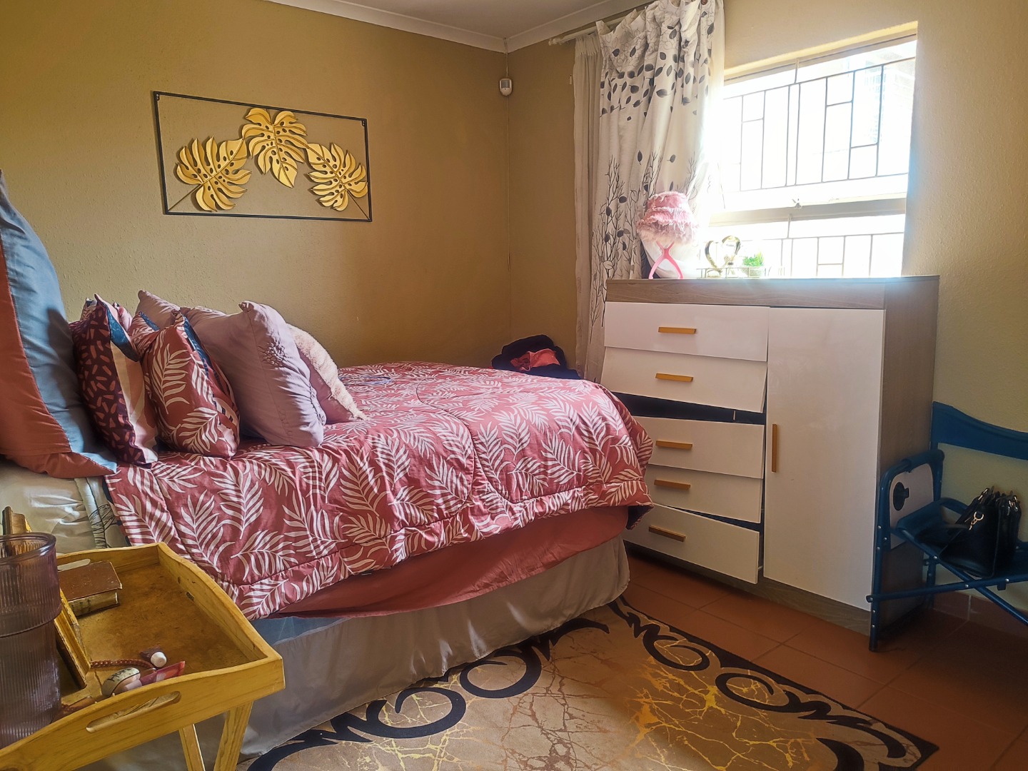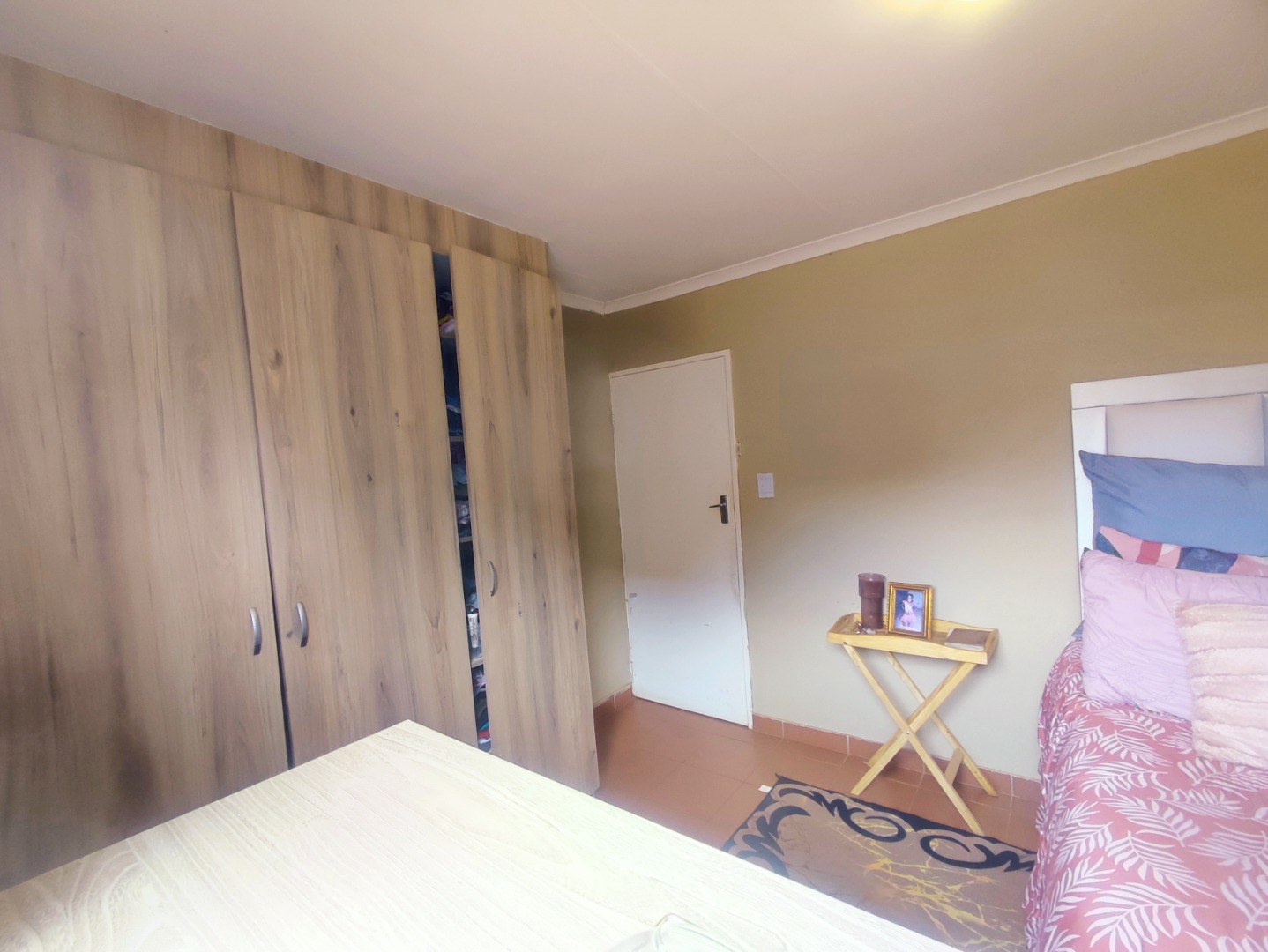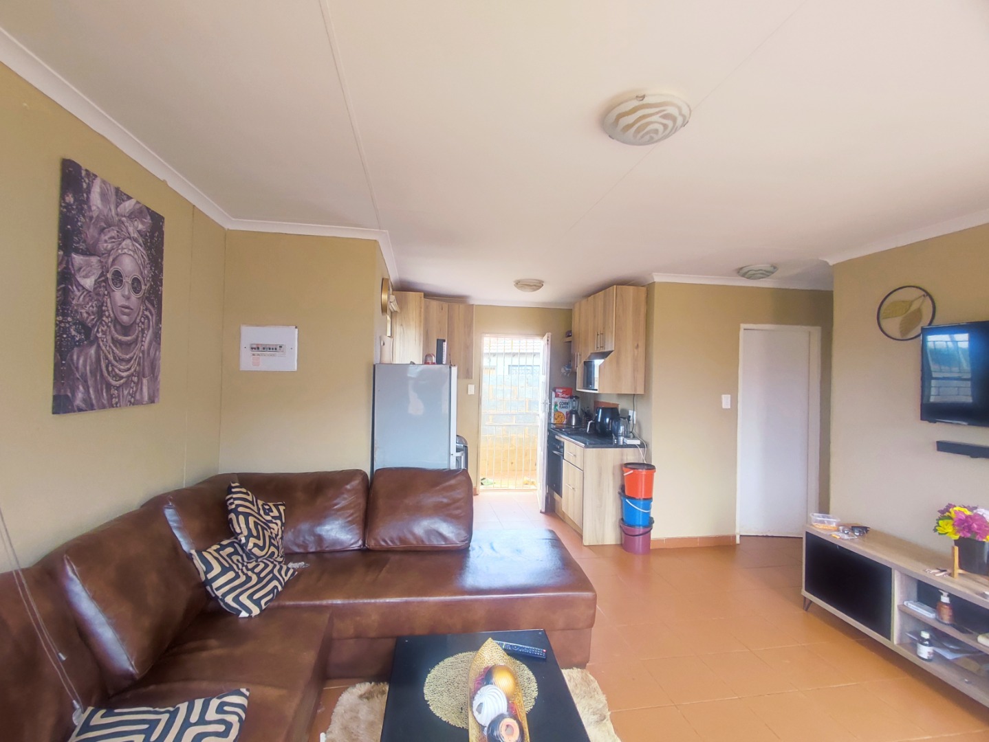This charming detached home in Lufhereng, Soweto, presents a welcoming facade with light grey walls and a terracotta-tiled roof, set on a generous 400 sqm erf. The property is secured by a perimeter wall, security bars on windows, and a security gate on the front door, ensuring peace of mind. Its single-story design and practical layout make it an ideal choice for comfortable suburban living. Step inside to discover an inviting open-plan living and kitchen area, designed for modern convenience and seamless interaction. This space features durable tiled flooring throughout, complemented by good natural light. The kitchen is equipped with wood-look cabinetry and dark countertops, offering a functional area for meal preparation. The lounge area provides ample space for relaxation. The residence comprises two well-proportioned bedrooms, each offering a comfortable retreat. Both bedrooms benefit from neutral wall tones and practical tiled flooring. Integrated built-in wardrobes provide essential storage solutions, maintaining a tidy and organised living environment. The home includes one full bathroom, featuring a bathtub and wall tiles for easy maintenance. The property boasts a private garden area, offering potential for landscaping or outdoor activities, and includes a convenient driveway. Security is enhanced with an access gate, contributing to a secure environment within this suburban setting. The wheelchair-friendly design adds to the home's accessibility. Situated in the vibrant suburban community of Lufhereng, Soweto, this home offers a convenient location within a well-established South African neighbourhood. Key Features: * Detached 2-bedroom, 1-bathroom home * Open-plan living and kitchen * 400 sqm erf with private garden * Tiled flooring throughout * Built-in wardrobes in bedrooms * Security bars and access gate * Wheelchair friendly design * Suburban Lufhereng, Soweto location