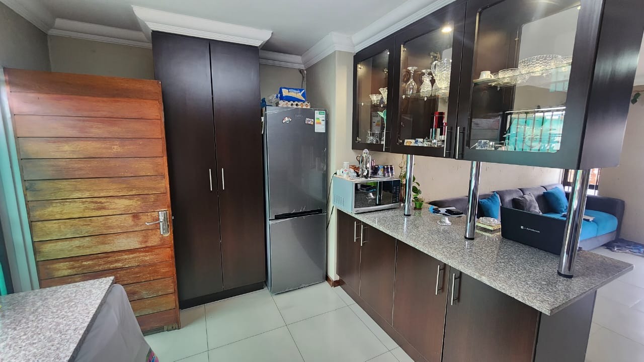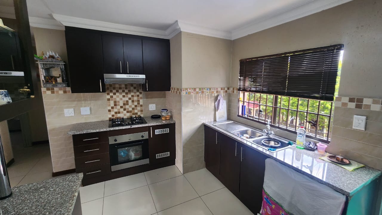 This inviting 74 sqm apartment offers a contemporary open-plan layout, seamlessly connecting the living and kitchen areas. The modern kitchen is a highlight, featuring sleek dark cabinetry, durable granite countertops, an integrated gas hob and oven, and a stylish tiled backsplash. Ample storage is provided, including display cabinets with internal lighting. The spacious lounge area benefits from natural light, creating a comfortable environment for relaxation and entertaining. Tiled flooring extends throughout this main living space, ensuring easy maintenance. The residence comprises two well-proportioned bedrooms, each fitted with practical tiled flooring and built-in wardrobes for convenient storage. Large windows in the bedrooms allow for good natural light. A single, well-appointed bathroom serves both bedrooms, offering essential amenities. Situated within a secure complex, this apartment provides peace of mind with an access gate and security bars on windows. Residents benefit from one dedicated parking bay. The property also includes a garden area, adding a touch of greenery. This pet-friendly unit is ideal for individuals, couples, or small families seeking a convenient and secure lock-up-and-go lifestyle. Located in Brackendowns, Alberton, this property offers access to local amenities and transport routes, making it a practical choice for urban living. Key Features: * Two Bedrooms, One Bathroom * 74 sqm Floor Size * Open-Plan Living & Kitchen * Modern Kitchen with Gas Hob & Granite Countertops * Tiled Flooring Throughout * Built-in Wardrobes * Secure Complex with Access Gate * One Dedicated Parking Bay * Pet-Friendly