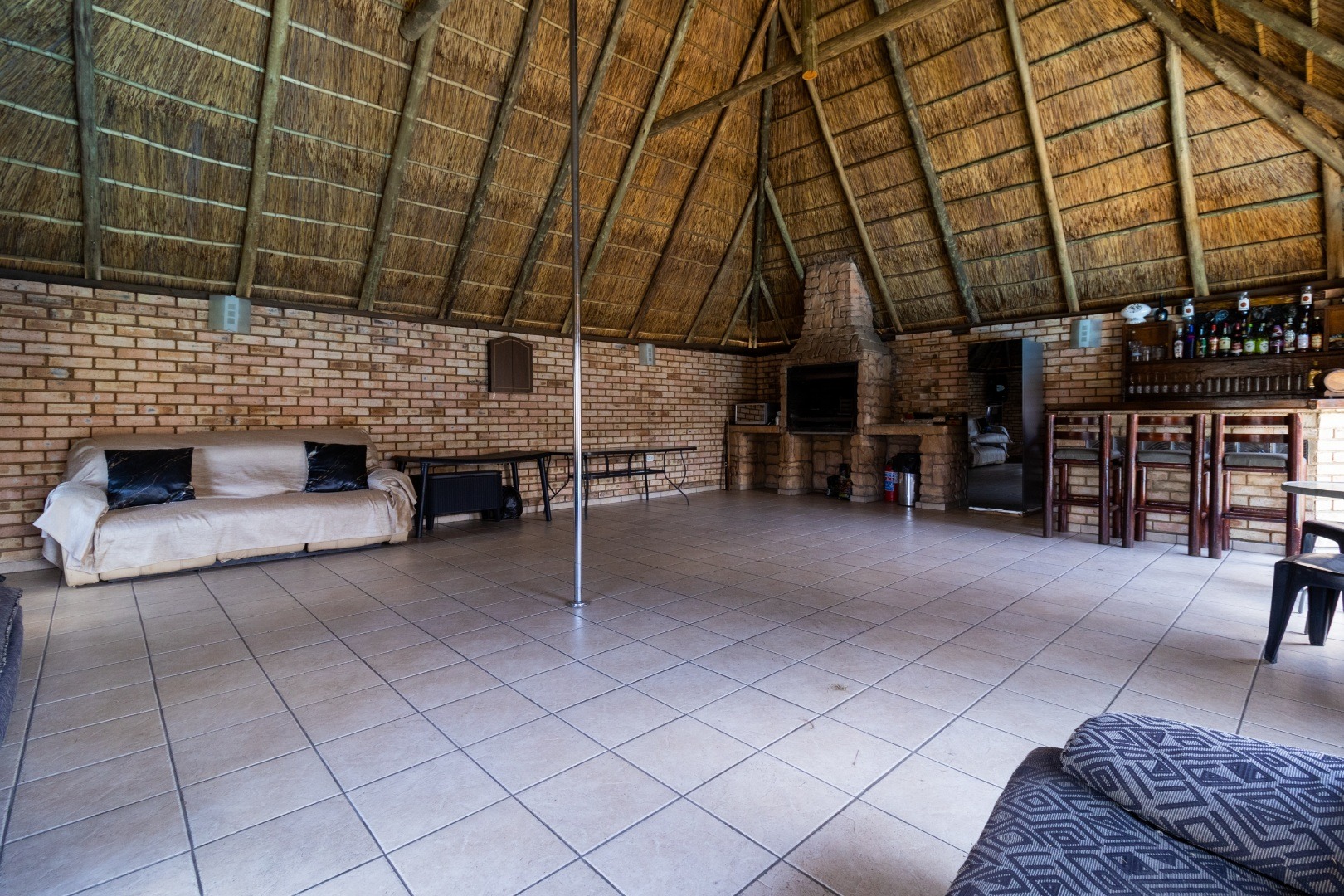 Step outside to a private pool, perfect for warm summer days, along with a charming outdoor entertainment area featuring a boma, private patio, and ample space for relaxing or hosting guests.