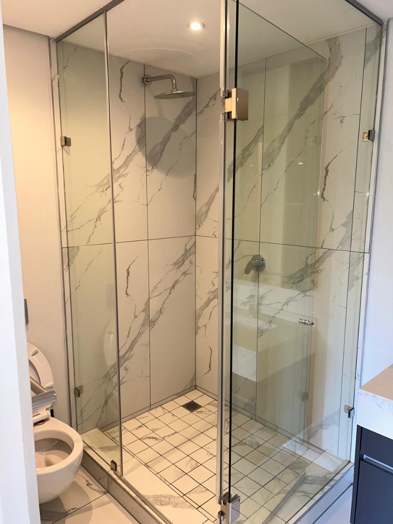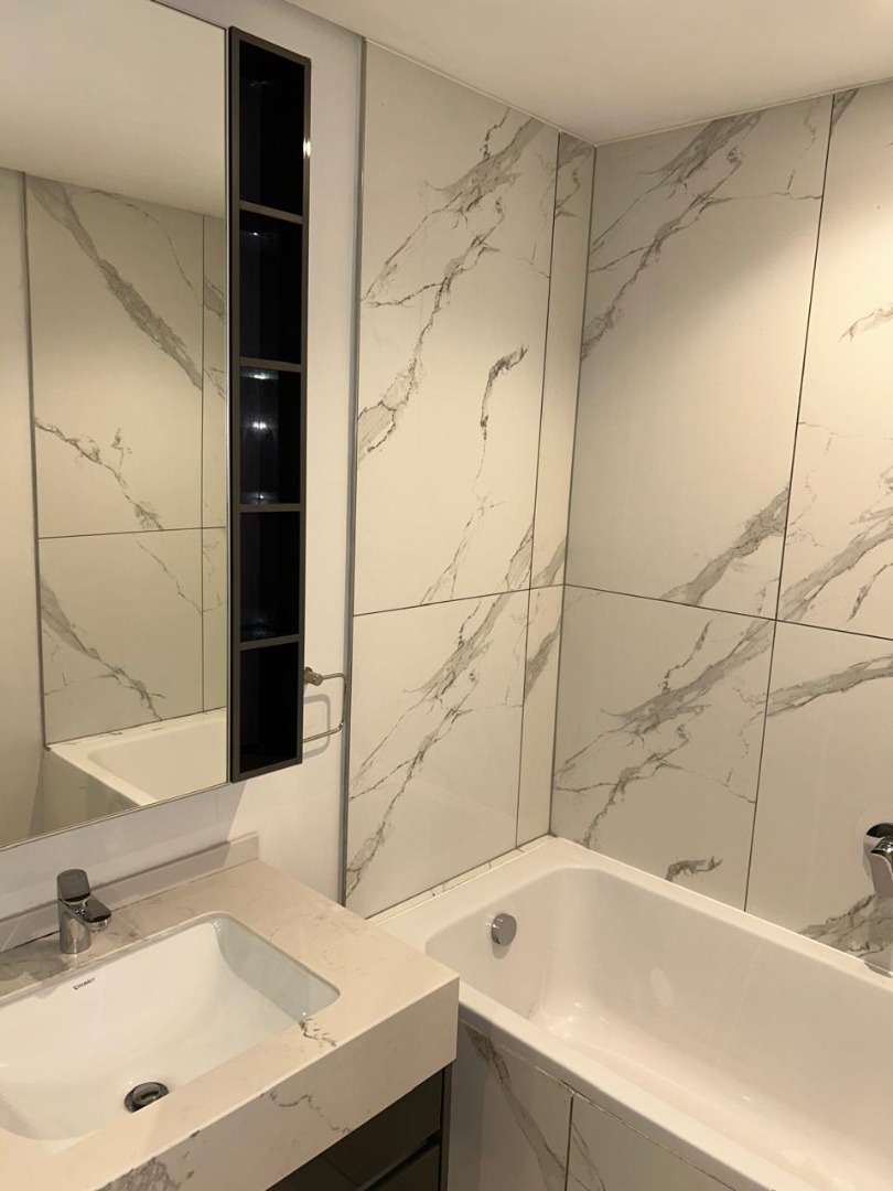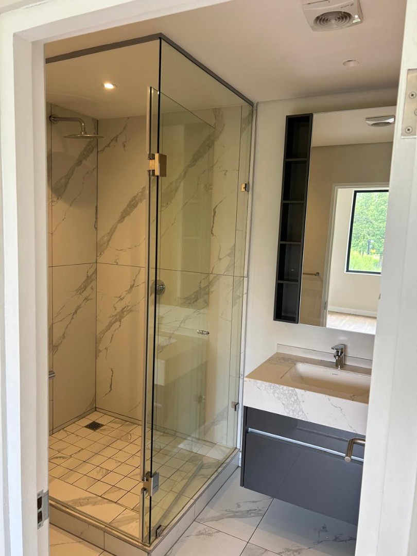 Main ensuite has a full bathroom with bath plus a exquisitely tiled shower. Very upmarket and modern with medium sized shower head and downlight.