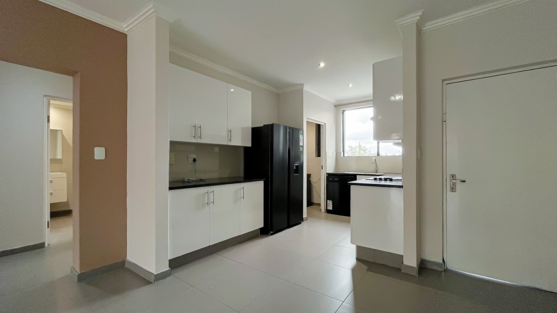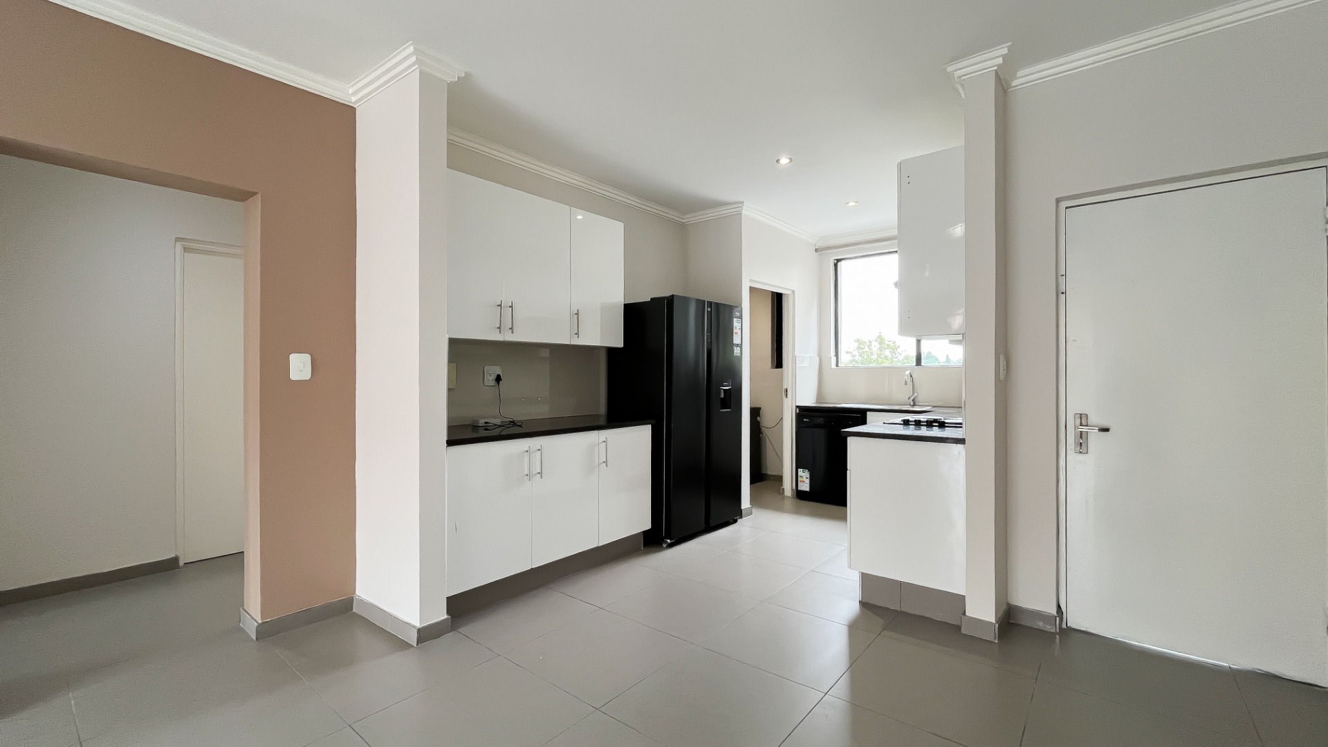 Discover this contemporary 2-bedroom, 2-bathroom apartment available for rent in the sought-after Morningside area of Sandton. Spanning 91 square metres, this unfurnished residence offers a modern open-plan layout, seamlessly connecting the living, dining, and kitchen areas. The space is bathed in natural light, enhanced by large double doors and windows, creating an inviting and airy atmosphere. The sleek, modern kitchen is a highlight, featuring pristine white cabinetry, dark granite-style countertops, and durable tiled flooring. It comes equipped with integrated appliances, including a large Hisense fridge with a water dispenser, a built-in hob, and a convenient built-in Hisense dishwasher. A dedicated laundry alcove houses a Hisense washing machine, ensuring all your essential needs are met. The apartment comprises two well-proportioned bedrooms, with one offering the privacy of an en-suite bathroom. Both bathrooms are finished to a high standard, complementing the overall modern aesthetic. Throughout the apartment, you'll find easy-to-maintain tiled flooring, neutral-toned walls, and elegant crown molding, providing a clean canvas ready for your personal touch. Further enhancing convenience, the property includes two dedicated parking bays. Situated within a desirable complex in Morningside, this location offers excellent access to Sandton's vibrant business district, premier shopping centres, and a variety of dining options, making it ideal for professionals or small families seeking a sophisticated urban lifestyle. Key Features: * 2 Bedrooms, 2 Bathrooms (1 En-suite) * 91 sqm Floor Size * Modern Open-Plan Living * Sleek Kitchen with Integrated Appliances * Hisense Fridge, Dishwasher, and Washing Machine Included * Durable Tiled Flooring Throughout * Ample Natural Light * Two Dedicated Parking Bays * Located in a Desirable Complex