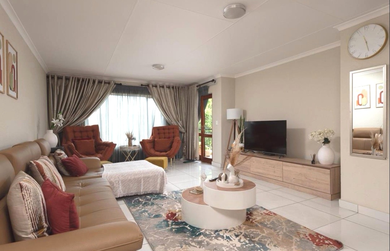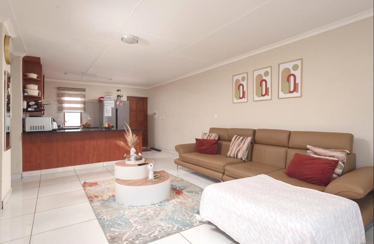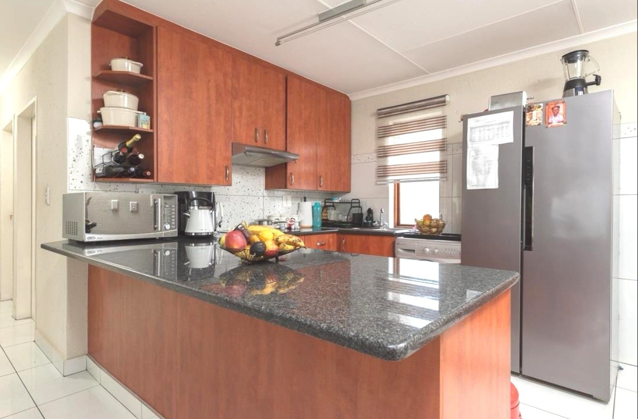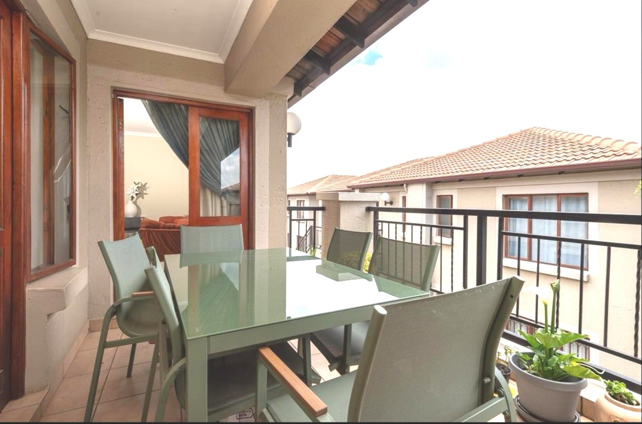 Nestled in the vibrant metropolitan area of Meyersdal, Alberton, this modern 3-bedroom, 2-bathroom apartment offers a comfortable and secure lifestyle. Meyersdal is a sought-after suburb known for its convenient access to amenities and a tranquil residential atmosphere. Upon entering this 110 sqm unit, you are greeted by an open-plan living and kitchen area, designed for contemporary living. The interior features clean, light-colored tiled flooring throughout, complemented by modern furnishings and coordinated decor. The functional kitchen boasts ample cherry-wood cabinetry, dark granite countertops, and a practical breakfast bar, making it ideal for both everyday meals and entertaining. This residence provides three well-proportioned bedrooms and two bathrooms, ensuring comfort and privacy for residents. Each unit benefits from a private balcony, offering a scenic view and an ideal spot for relaxation. Residents of this secure estate enjoy access to well-maintained communal green spaces, including a sparkling swimming pool and a communal braai area, perfect for outdoor enjoyment. The property also includes two dedicated parking spaces and features paving and a garden area. The modern, uniform architecture contributes to the estate's appealing kerb appeal. Security is paramount within this gated community, featuring 24-hour security, electric fencing, an access gate, and security gates, ensuring peace of mind. The property is also fibre-ready, providing high-speed internet connectivity. Key Features: * 3 Bedrooms, 2 Bathrooms * 110 sqm Floor Size * Open-plan Living & Kitchen * Private Balcony with Scenic View * Communal Swimming Pool & Braai Area * Two Parking Spaces * 24-Hour Security & Electric Fencing * Fibre Connectivity * Gated Community Living
