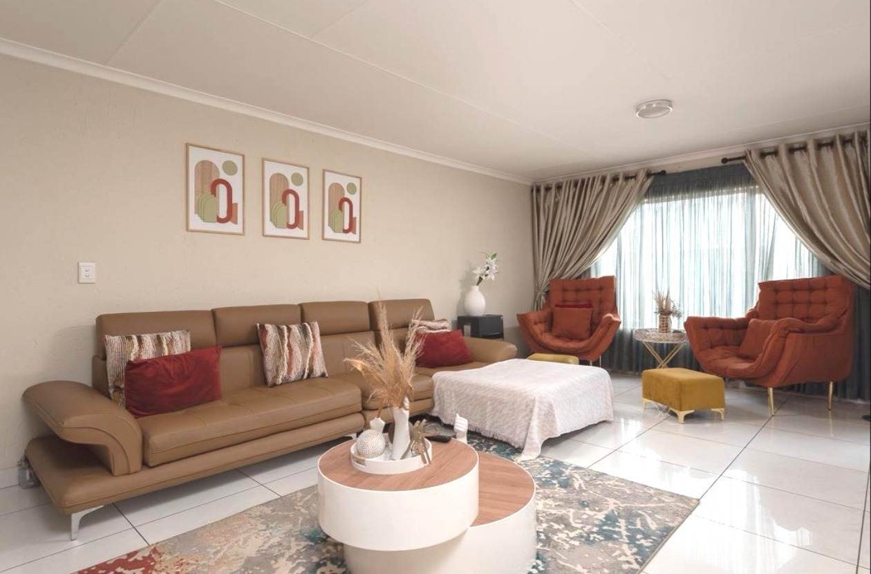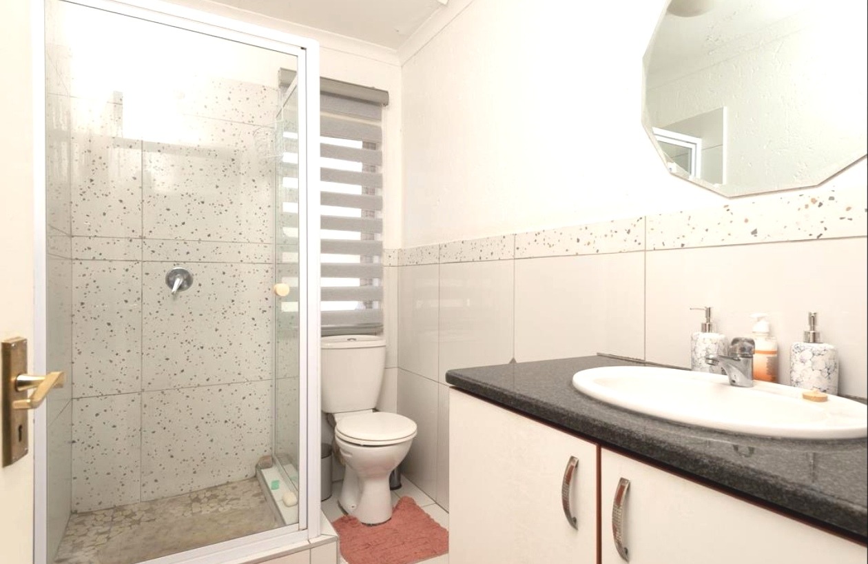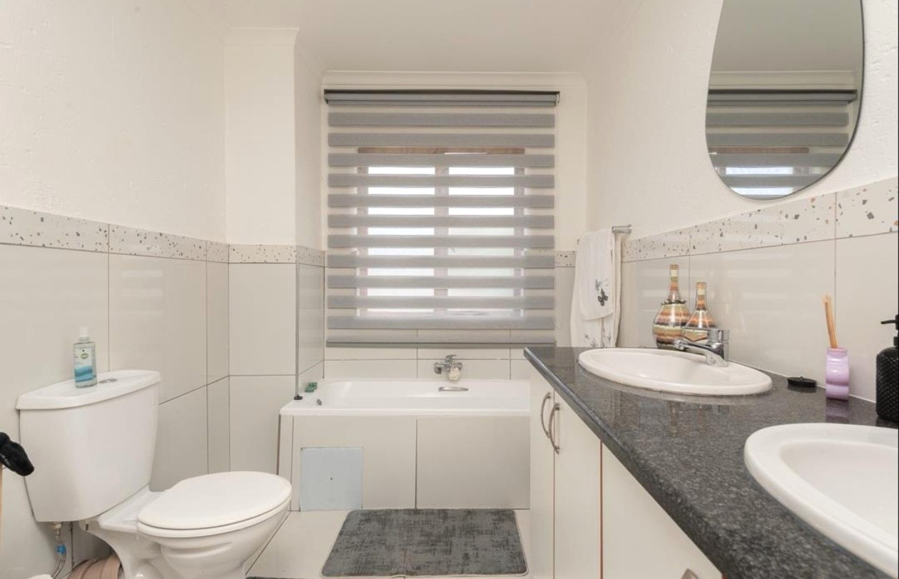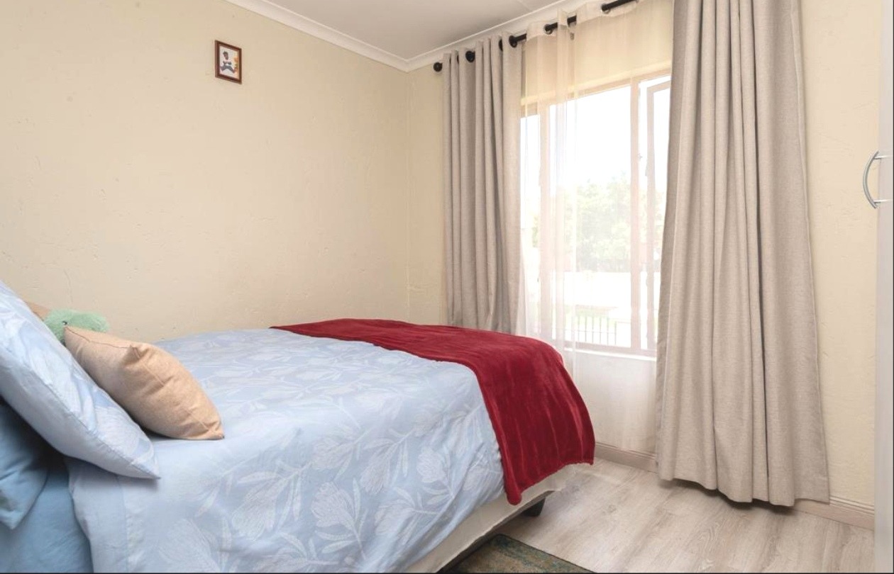 Nestled in the vibrant metropolitan area of Meyersdal, Alberton, this modern 3-bedroom, 2-bathroom apartment offers a comfortable and secure lifestyle. Meyersdal is a sought-after suburb known for its convenient access to amenities and a tranquil residential atmosphere. Upon entering this 110 sqm unit, you are greeted by an open-plan living and kitchen area, designed for contemporary living. The interior features clean, light-colored tiled flooring throughout, complemented by modern furnishings and coordinated decor. The functional kitchen boasts ample cherry-wood cabinetry, dark granite countertops, and a practical breakfast bar, making it ideal for both everyday meals and entertaining. This residence provides three well-proportioned bedrooms and two bathrooms, ensuring comfort and privacy for residents. Each unit benefits from a private balcony, offering a scenic view and an ideal spot for relaxation. Residents of this secure estate enjoy access to well-maintained communal green spaces, including a sparkling swimming pool and a communal braai area, perfect for outdoor enjoyment. The property also includes two dedicated parking spaces and features paving and a garden area. The modern, uniform architecture contributes to the estate's appealing kerb appeal. Security is paramount within this gated community, featuring 24-hour security, electric fencing, an access gate, and security gates, ensuring peace of mind. The property is also fibre-ready, providing high-speed internet connectivity. Key Features: * 3 Bedrooms, 2 Bathrooms * 110 sqm Floor Size * Open-plan Living & Kitchen * Private Balcony with Scenic View * Communal Swimming Pool & Braai Area * Two Parking Spaces * 24-Hour Security & Electric Fencing * Fibre Connectivity * Gated Community Living