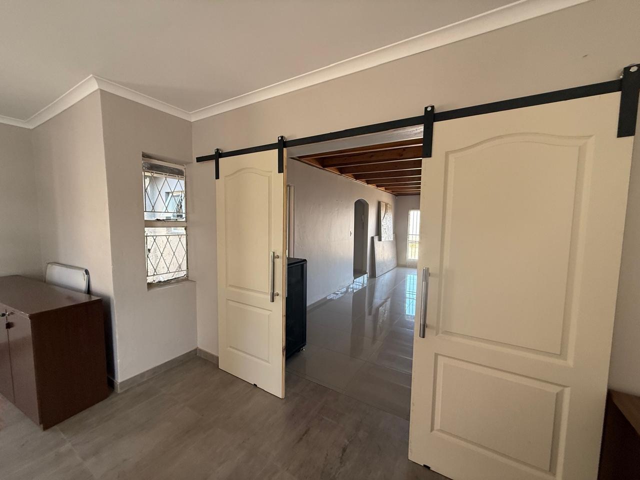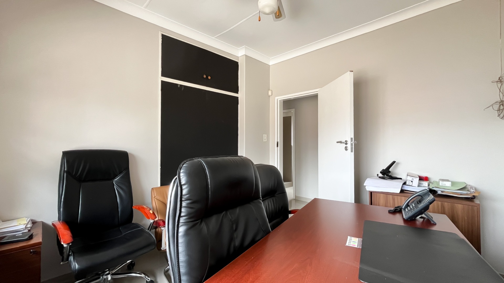 Step inside to an interior designed for a stylish exhibit, featuring glossy tiled flooring and freshly painted light-colored walls throughout. The living spaces are bright and inviting, highlighted by distinctive exposed wooden beam ceilings and modern recessed lighting. An open-plan layout enhances the flow between the spacious area, including a dedicated reception, pause area and 3 boardroom areas, creating a versatile environment for both relaxation and entertaining your clients with the laid foundations for additional offices, boardroom or entertainment area. The large windows and glass doors flood the offices with natural light, with some areas opening to an enclosed outdoor patio.