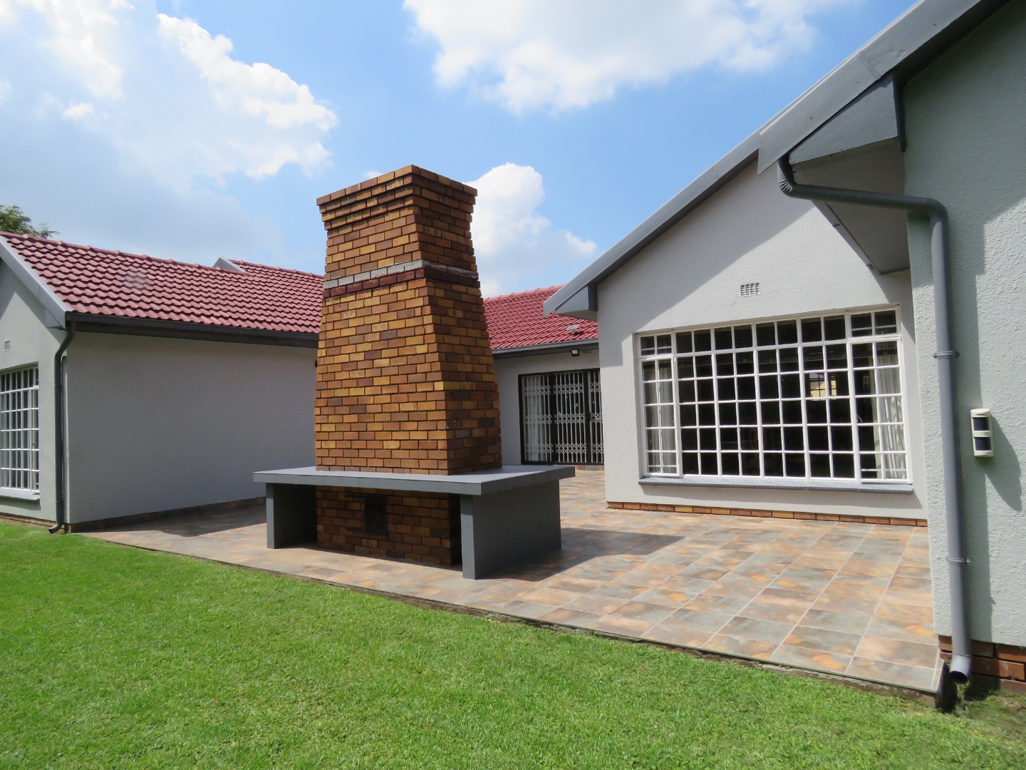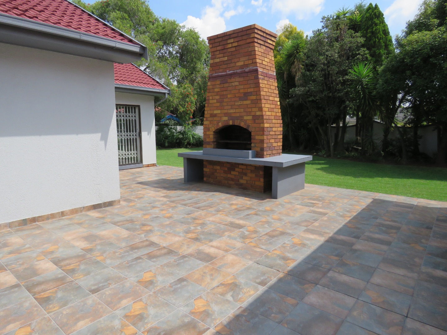 Step outside to a delightful patio area, complete with a built-in braai, overlooking a well-maintained garden and paved areas, perfect for outdoor dining and leisure. The property benefits from excellent security features, including an alarm system, electric fencing, an access gate, burglar bars, and a security gate, ensuring peace of mind. Parking is abundant with two garages and six additional open parking spaces.