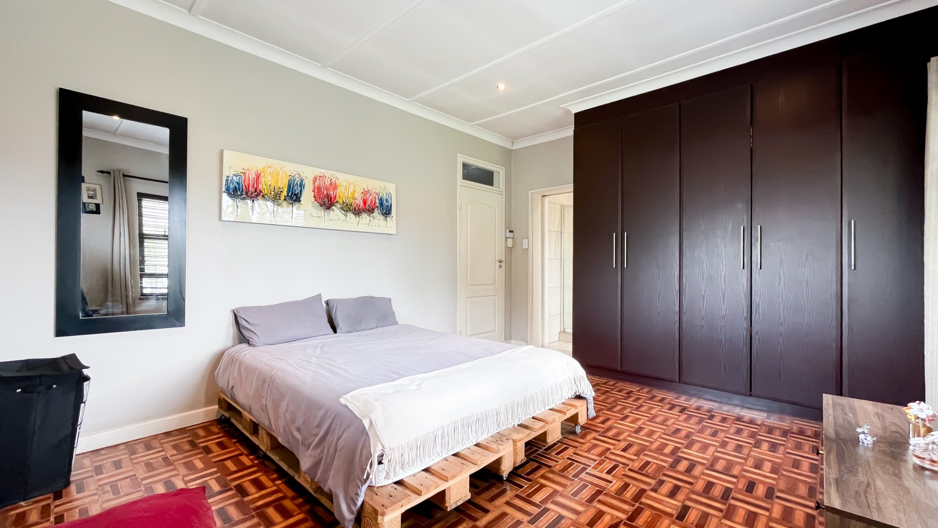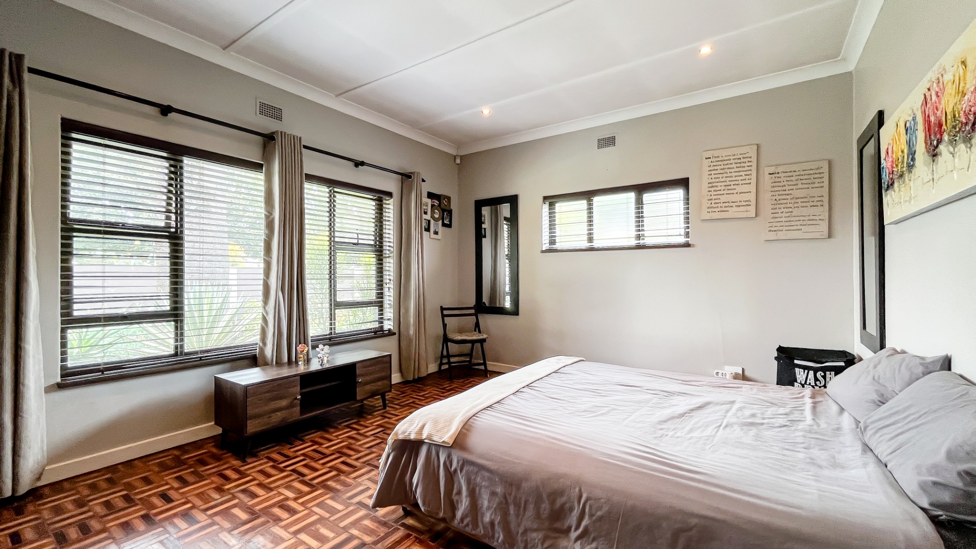 3 bedrooms with parquet flooring and blinds