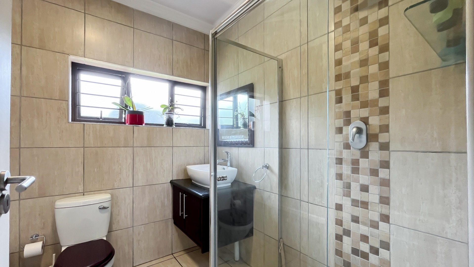 Staff quarters with tiled flooring and en-suite (shower, toilet, basin), ideal for work from home office