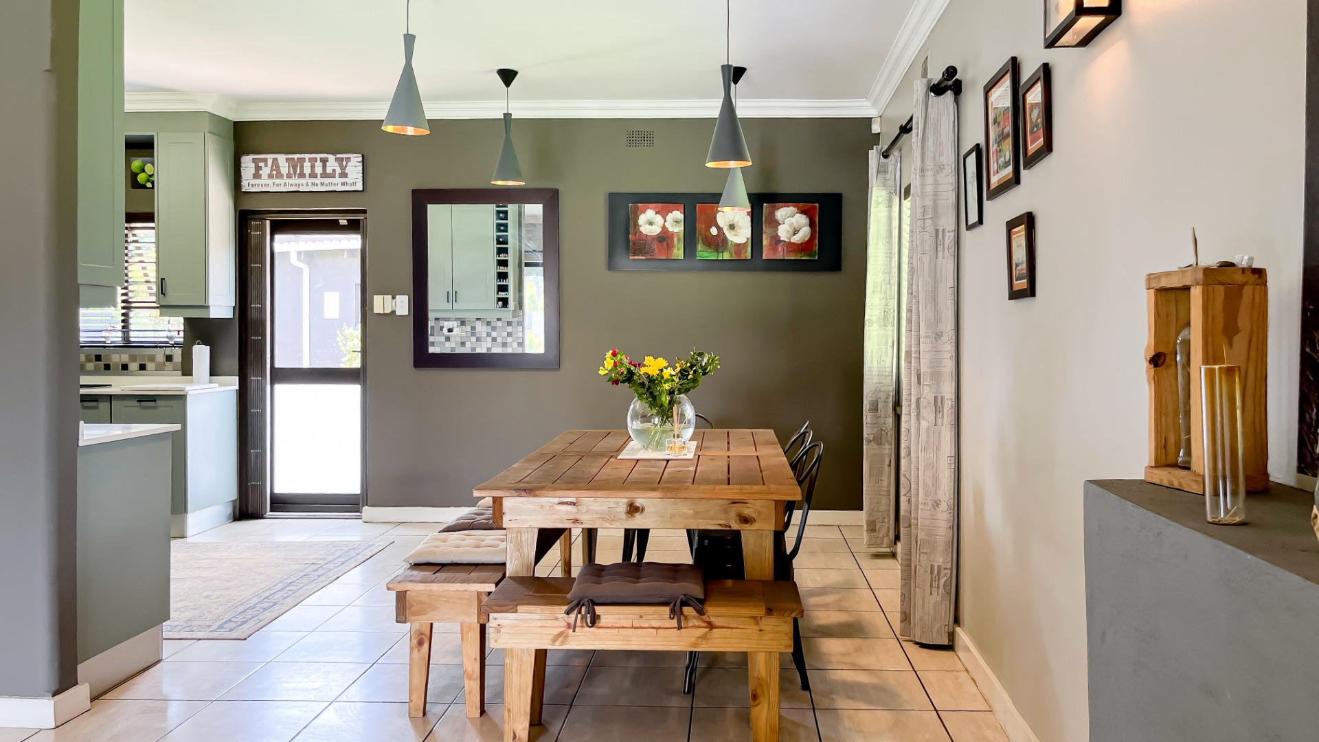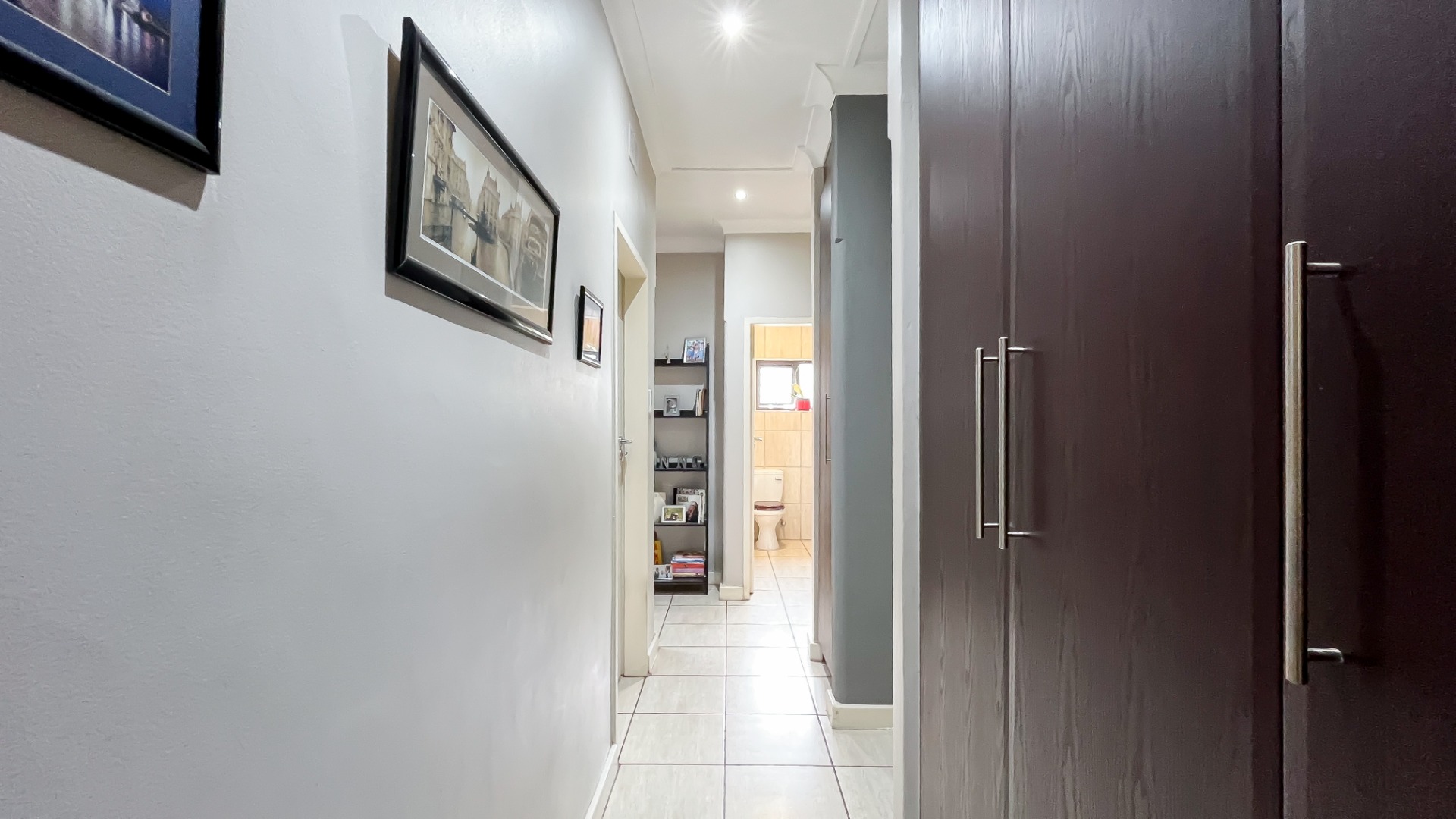 Combination of tiled and parquet flooring for easy maintenance