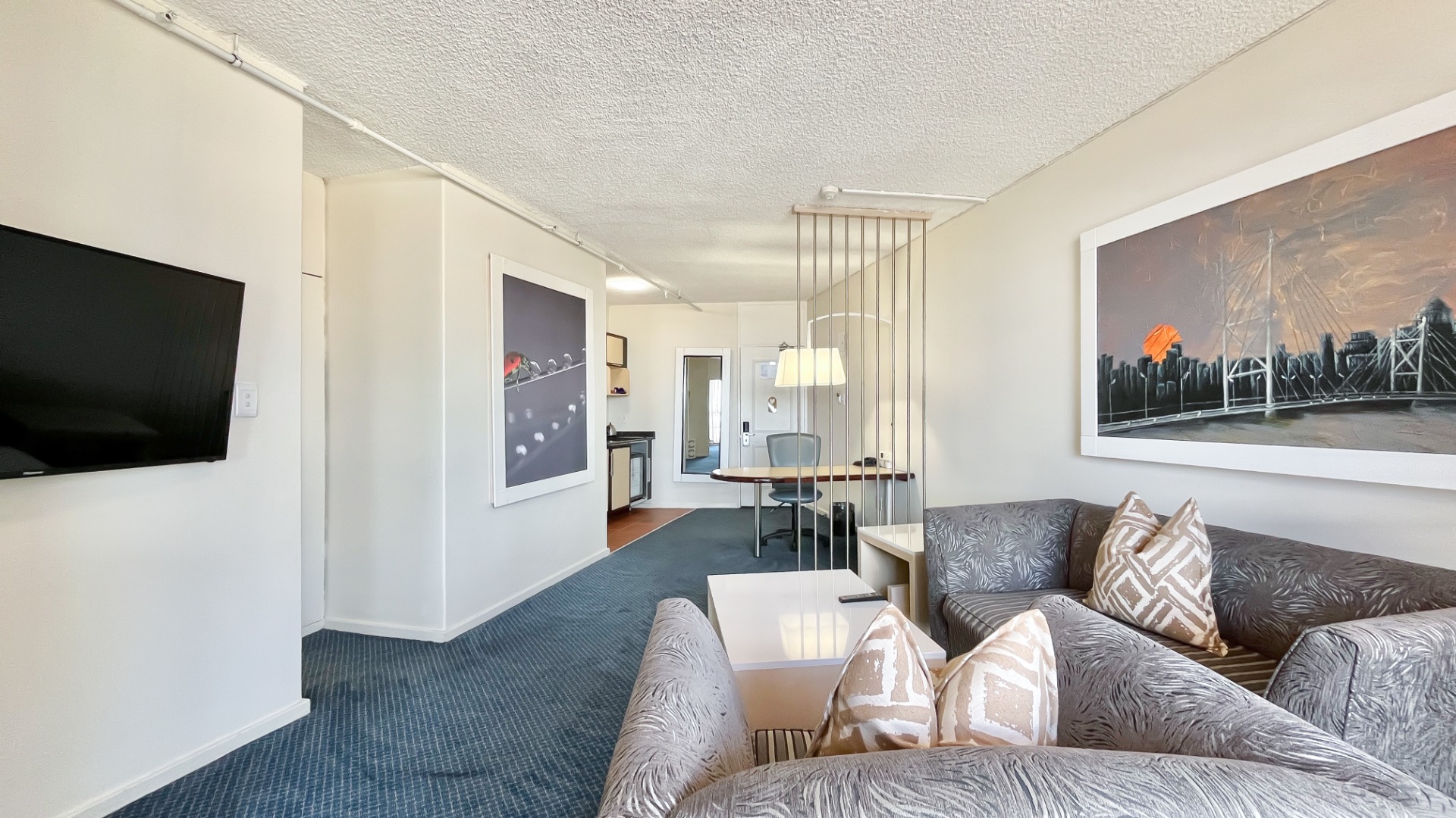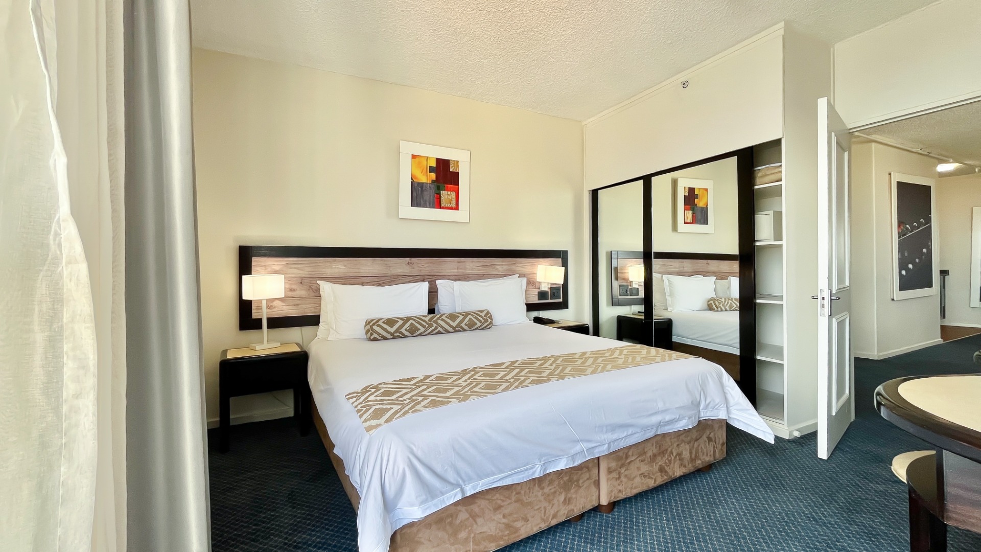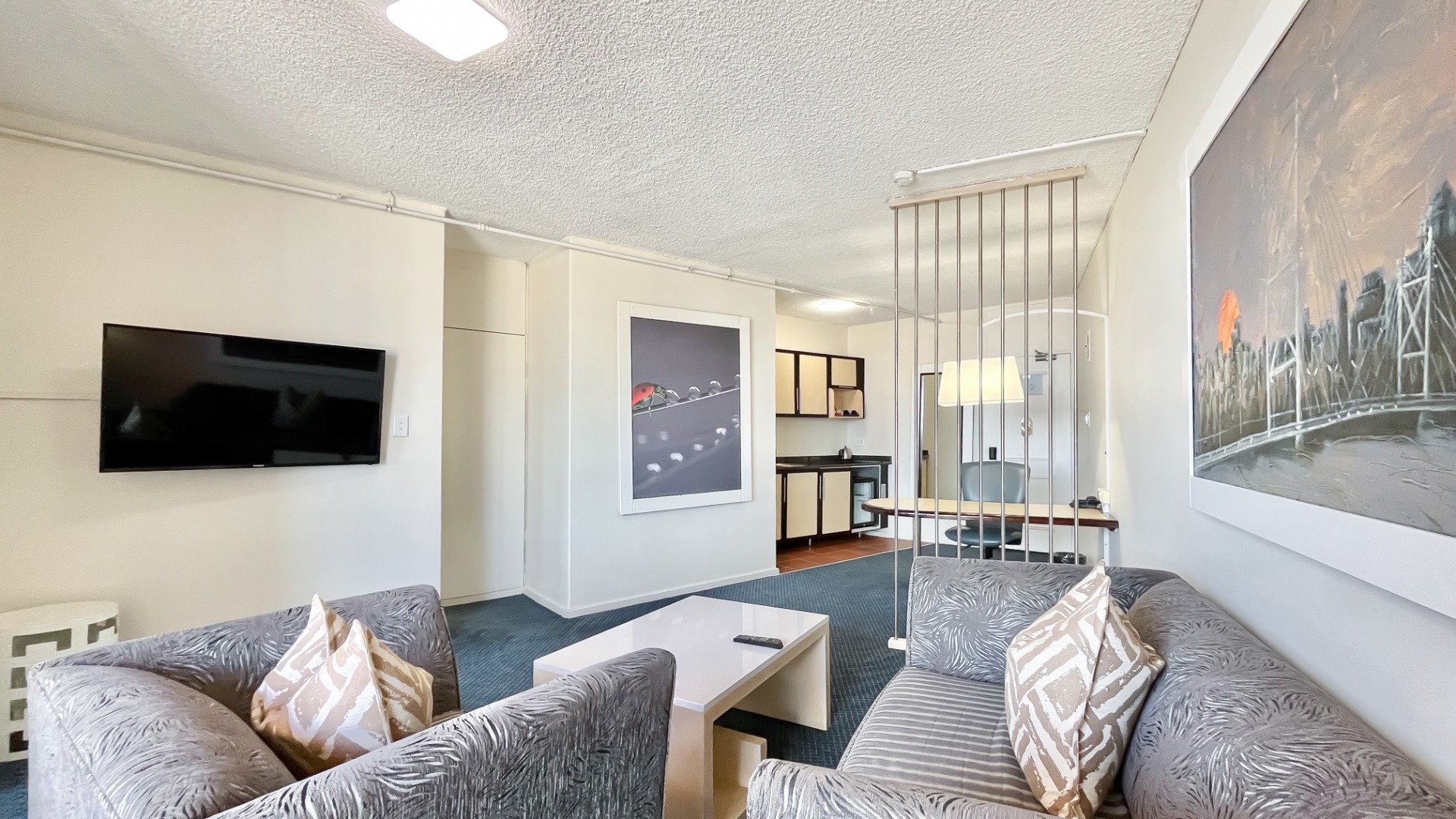 Discover a premium investment opportunity in the heart of Johannesburg—a contemporary, fully furnished suite offering luxury and convenience. The stylish suite has a flat-screen TV with satellite channels, a separate seating area with a cozy couch, a tea/coffee maker and a private bathroom with amenities. Floor-to-ceiling windows frame breathtaking skyline views. The unit boasts a spacious lounge, private bedroom with built-in cupboards, carpeted floors, locker, en-suite bathroom, kitchenette, and balcony and have access to a rooftop pool, gym, fine dining, and concierge service.