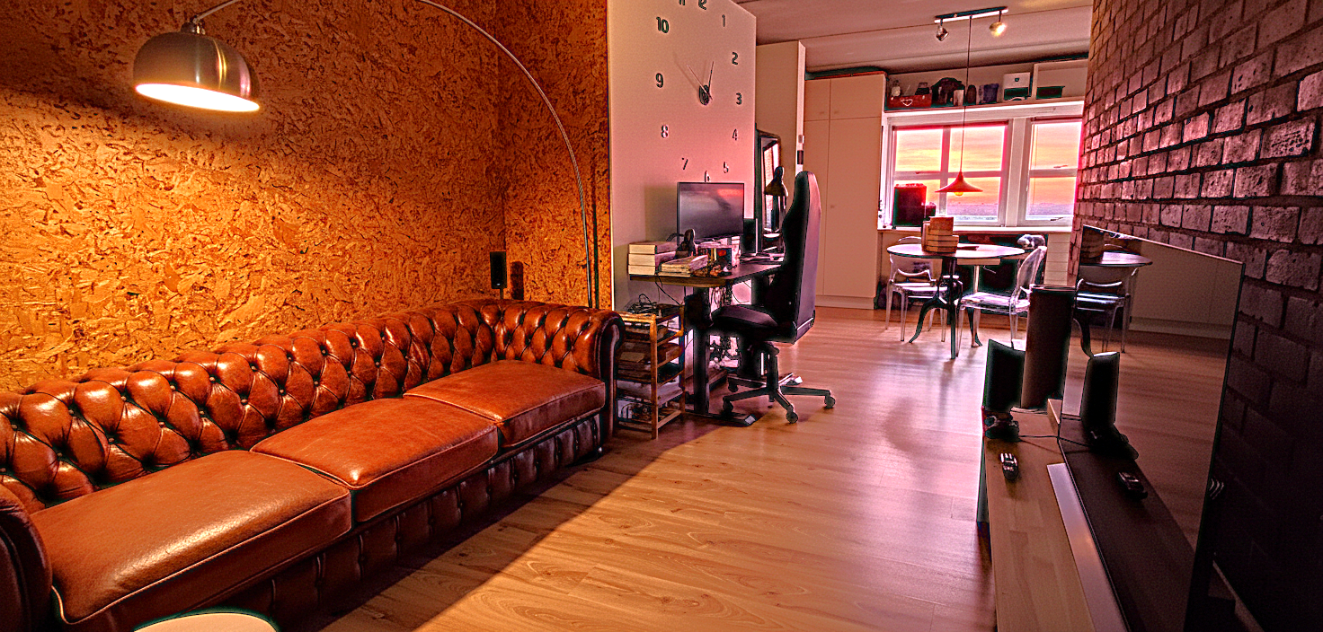 Lounge: Laminated wooden flooring. Stylish feature wall. Sliding doors leading to an enclosed entertainment patio.