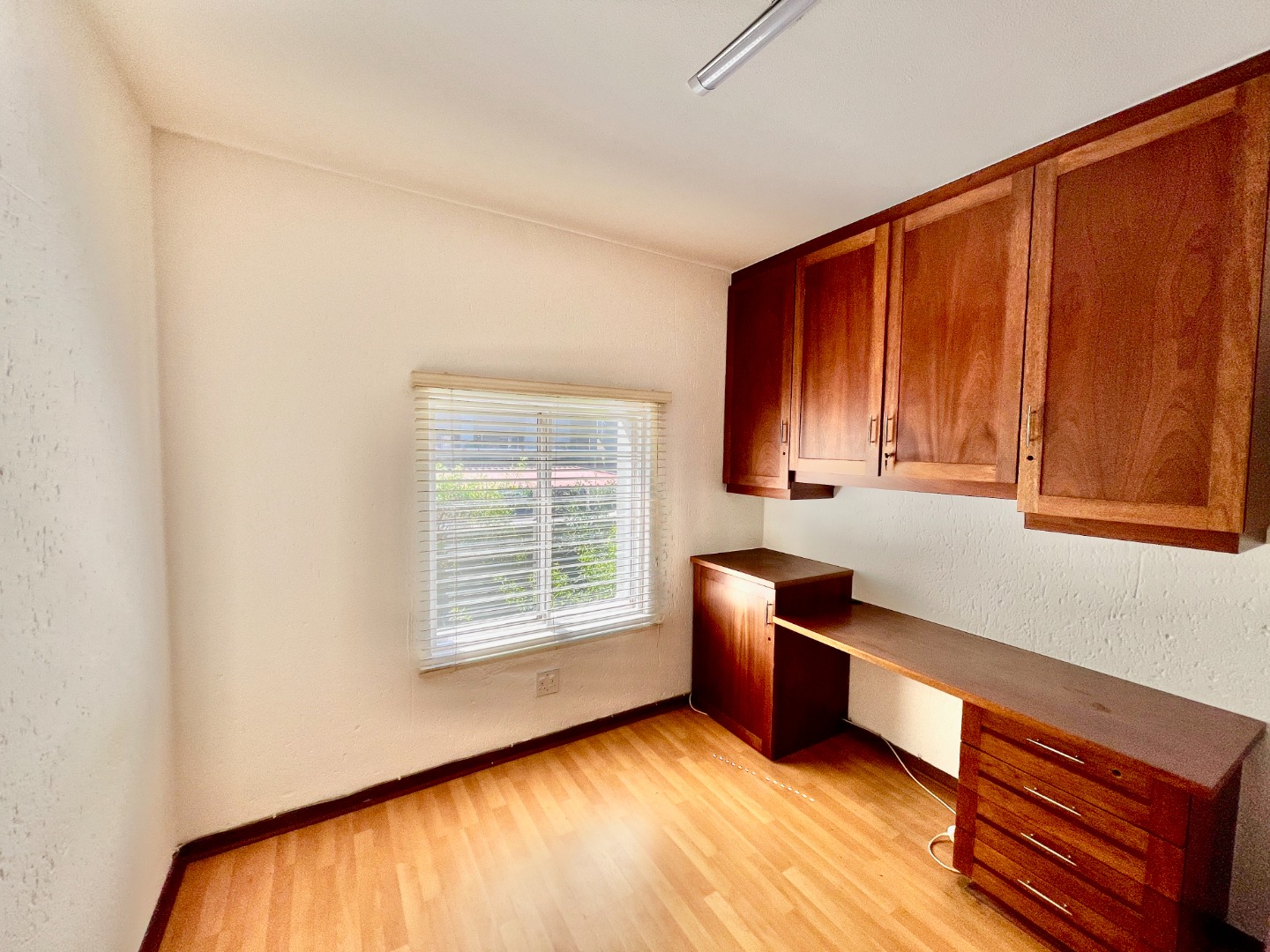 The 2nd bedroom is fitted with cabinets and can be used as a work from home office or study as well as a bedroom.