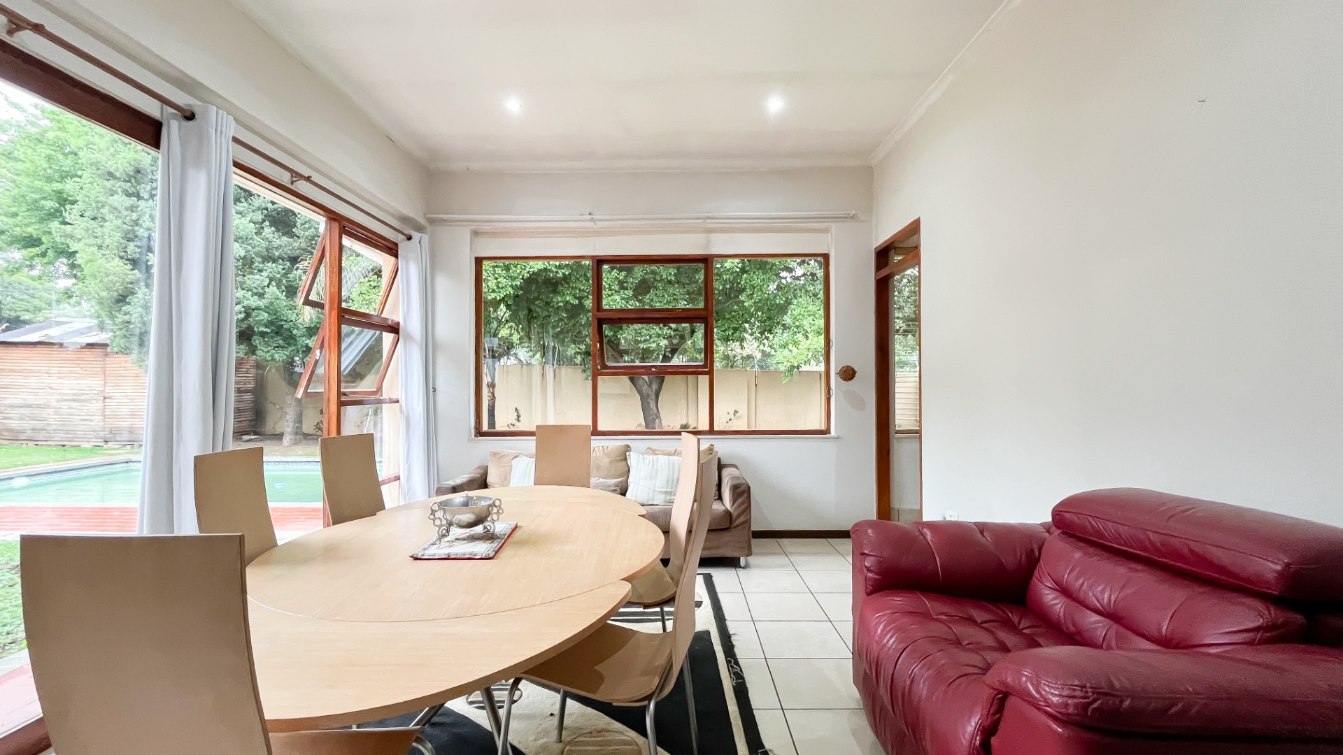 Discover this expansive family home nestled in the desirable suburban enclave of Highlands North, Johannesburg. This property offers a generous 980 sqm erf, providing ample space for comfortable living and entertaining in a well-established South African neighbourhood. The interior boasts a thoughtful layout designed for modern family life. Enjoy two spacious lounges, a dedicated dining room, and a separate family TV room, ensuring diverse areas for relaxation and social gatherings. The residence features two well-appointed kitchens, complemented by a convenient pantry, catering to all culinary needs. An elegant entrance hall welcomes guests, while a dedicated study provides an ideal space for work or quiet contemplation. Comfort is assured year-round with both central heating and air conditioning throughout the home. Accommodation comprises four comfortable bedrooms and three bathrooms, including a private en-suite for added luxury. A guest toilet further enhances convenience for residents and visitors alike. The property also includes a versatile flatlet, offering excellent potential for extended family living, guest accommodation, or a supplementary rental income opportunity. Step outside to a private oasis featuring a sparkling swimming pool, perfect for warm Johannesburg days. The outdoor area is further enhanced by a lapa, a patio, and a built-in braai, creating an ideal setting for outdoor entertaining. The well-maintained garden provides a tranquil backdrop, and a charming wendy house offers additional utility. Parking is abundant with a single garage and eight additional parking spaces. Staff quarters, complete with domestic rooms and outside toilets, are also present. Pets are welcome. Security features include electric fencing, an access gate, and an intercom system, providing peace of mind. The property is also fibre-ready, ensuring high-speed internet connectivity. Key Features: * 4 Bedrooms, 3 Bathrooms (1 En-suite) * 2 Lounges, Dining Room, Family TV Room * 2 Kitchens with Pantry * Dedicated Study and Entrance Hall * Swimming Pool, Lapa, Patio with Built-in Braai * Single Garage plus 8 Parking Spaces * Separate Flatlet * Staff Quarters with Domestic Rooms * Electric Fencing, Access Gate, Intercom, Fibre Ready * Central Heating and Air Conditioning