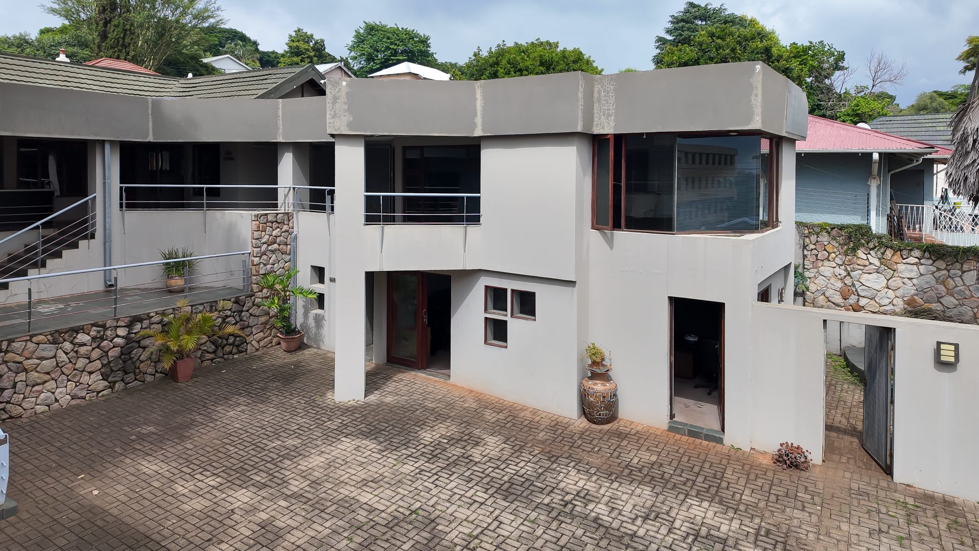 The interiors feature multiple private offices, a kitchen, and both men's and ladies' facilities — ensuring comfort and efficiency for your entire team. A green room provides an ideal setting for filming, photography, and other visual projects, offering a natural and dynamic backdrop that enhances every production.