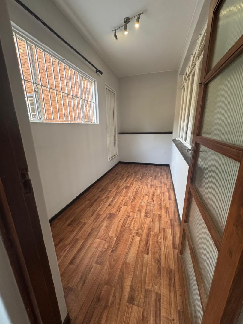 Step into this inviting 85 sqm apartment, ideally situated within a secure complex in the vibrant suburban hub of Rosebank, Johannesburg. The property immediately impresses with its facade, featuring large glass windows and warm wooden double doors. This residence offers a blend of contemporary style and comfortable living, perfect for individuals or couples seeking a prime location.