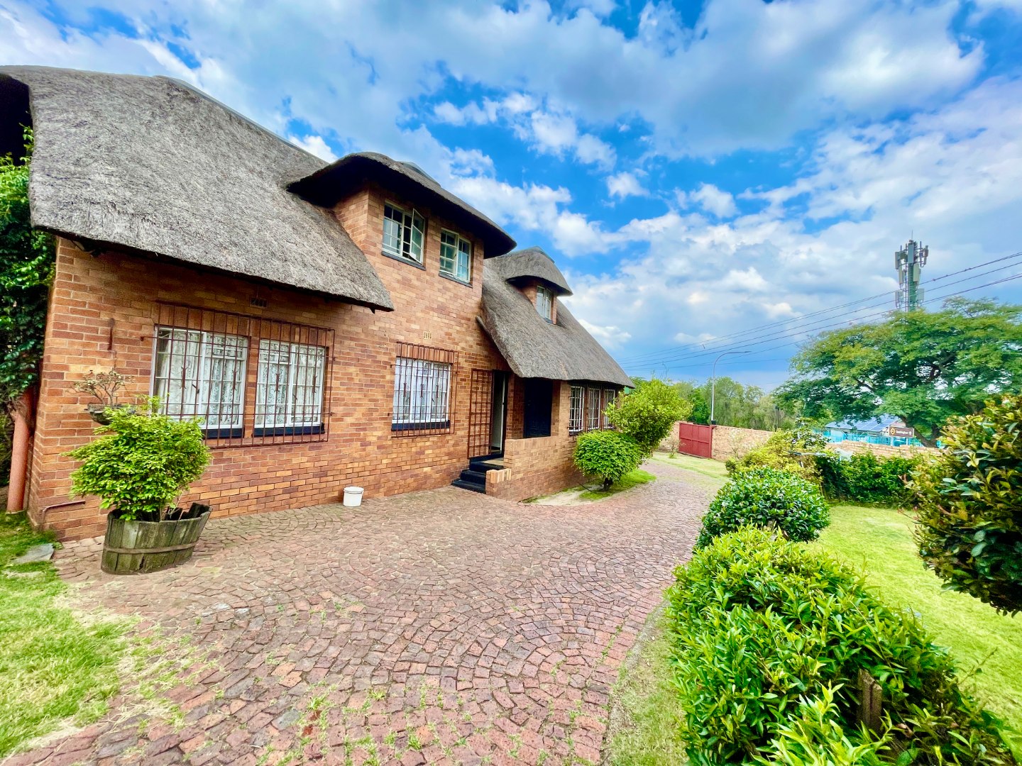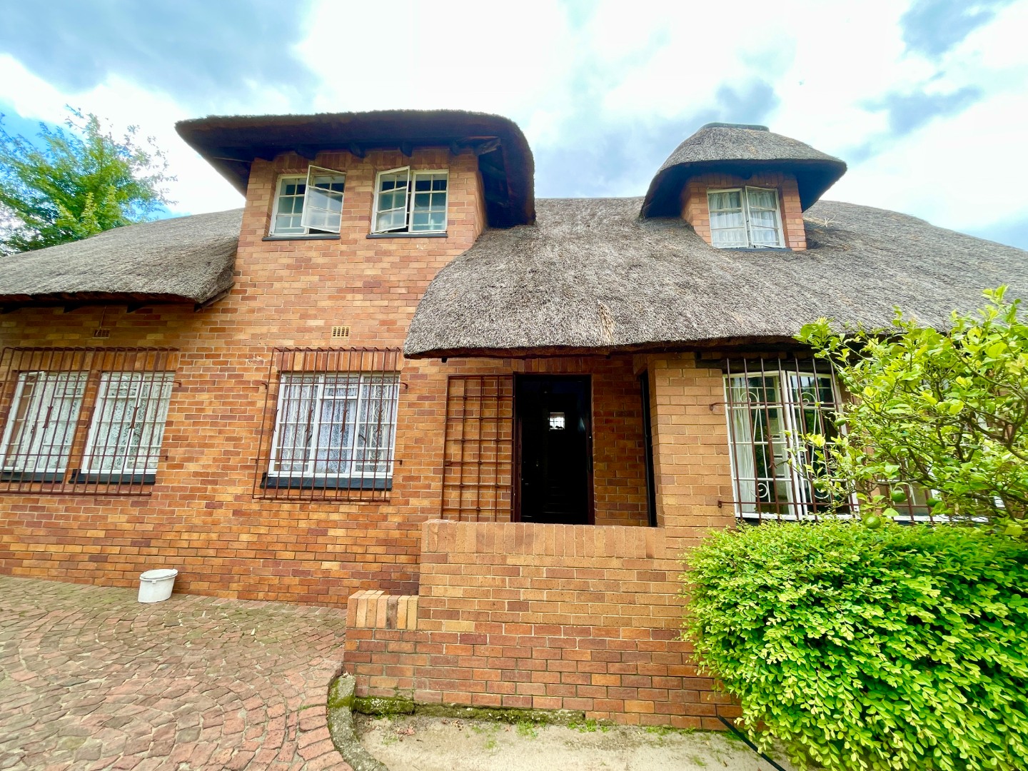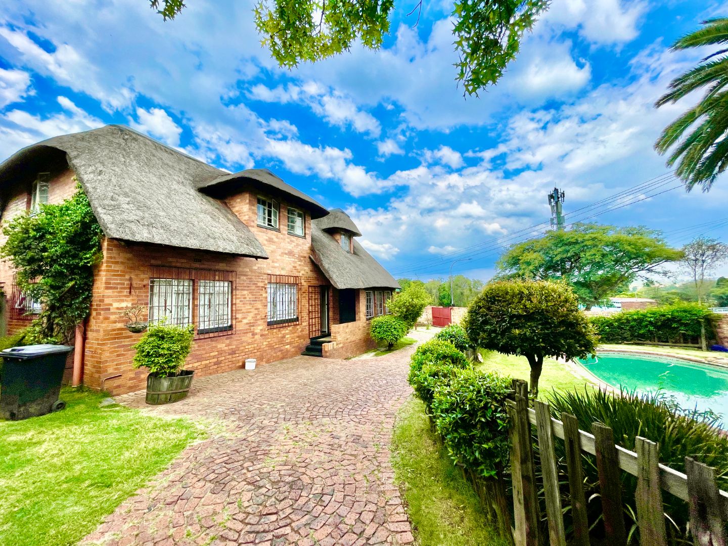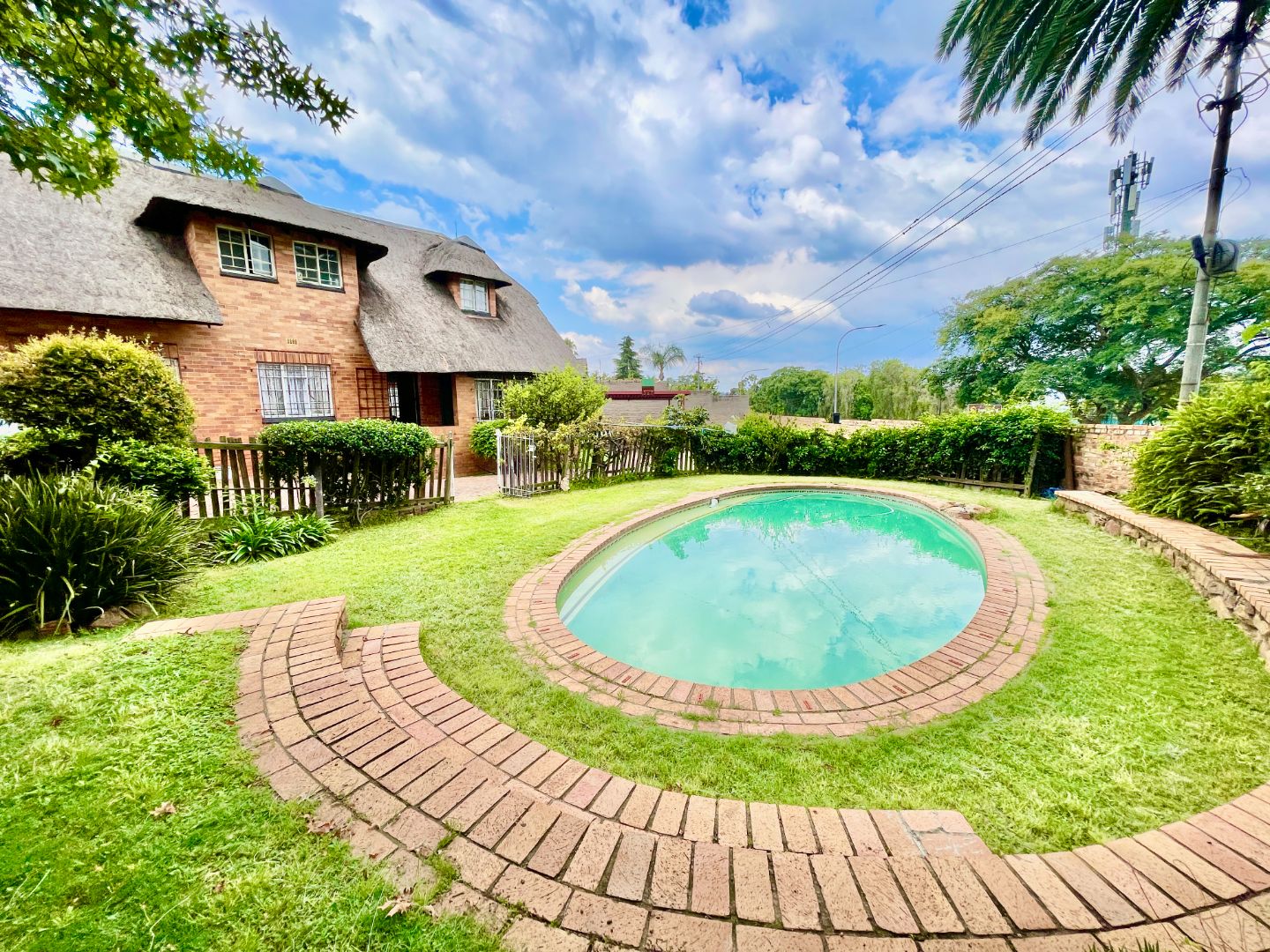 This face-brick house immediately captivates with its unique thatched roof, offering exceptional kerb appeal and a rustic yet elegant aesthetic. Set on a generous 1004 sqm erf, the property boasts a well-maintained garden.