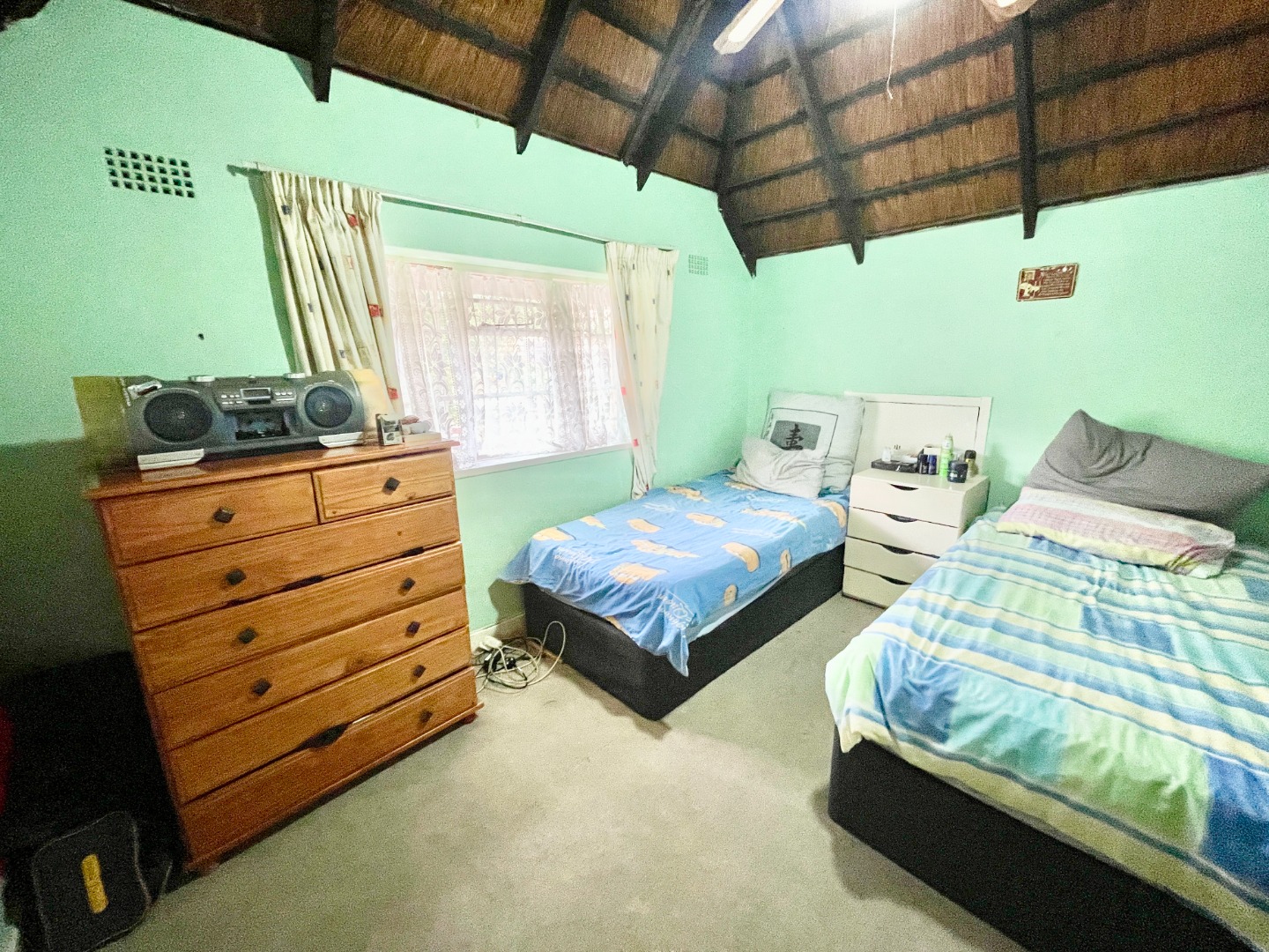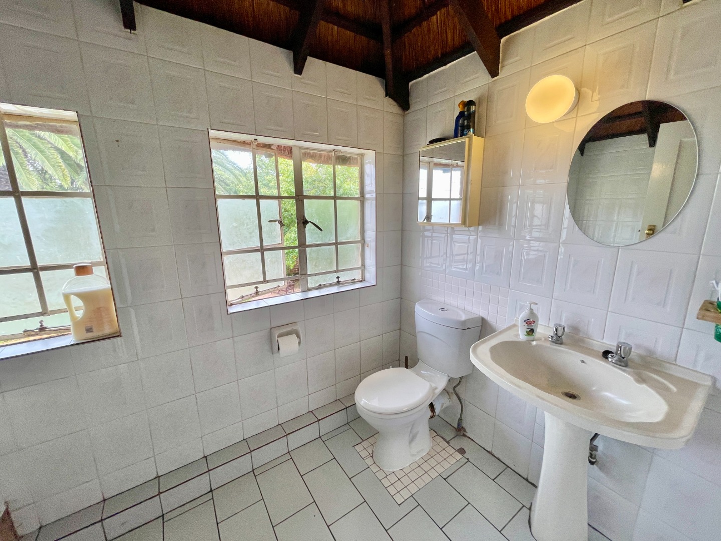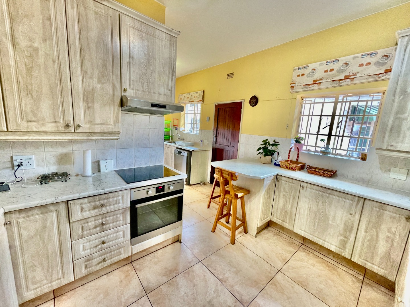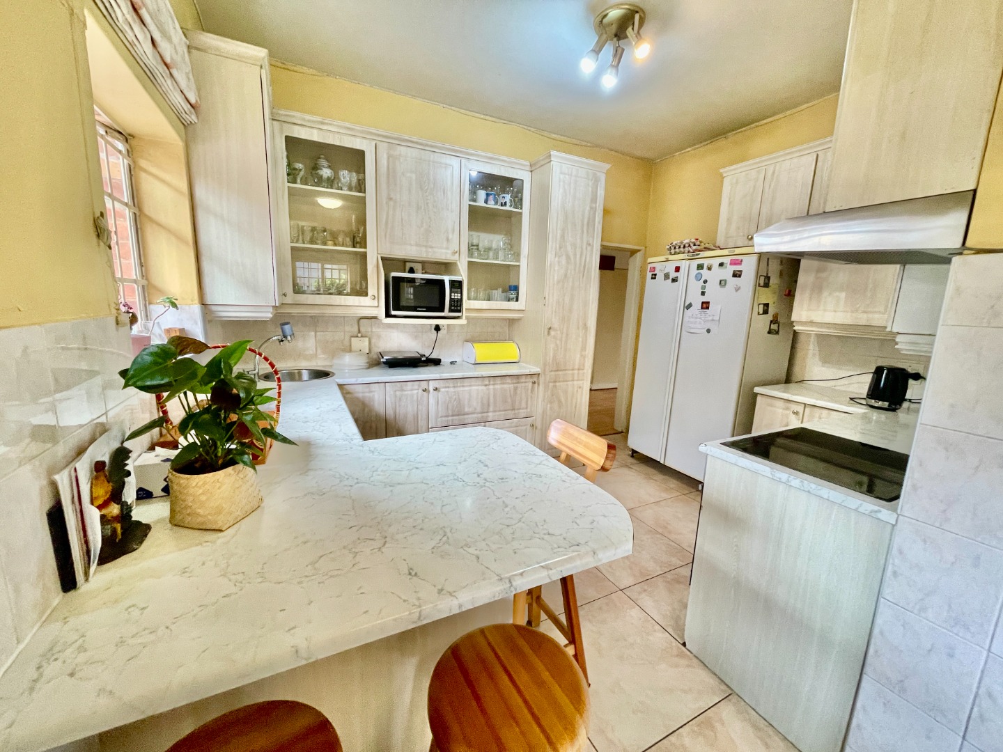 This face-brick house immediately captivates with its unique thatched roof, offering exceptional kerb appeal and a rustic yet elegant aesthetic. Set on a generous 1004 sqm erf, the property boasts a well-maintained garden.
