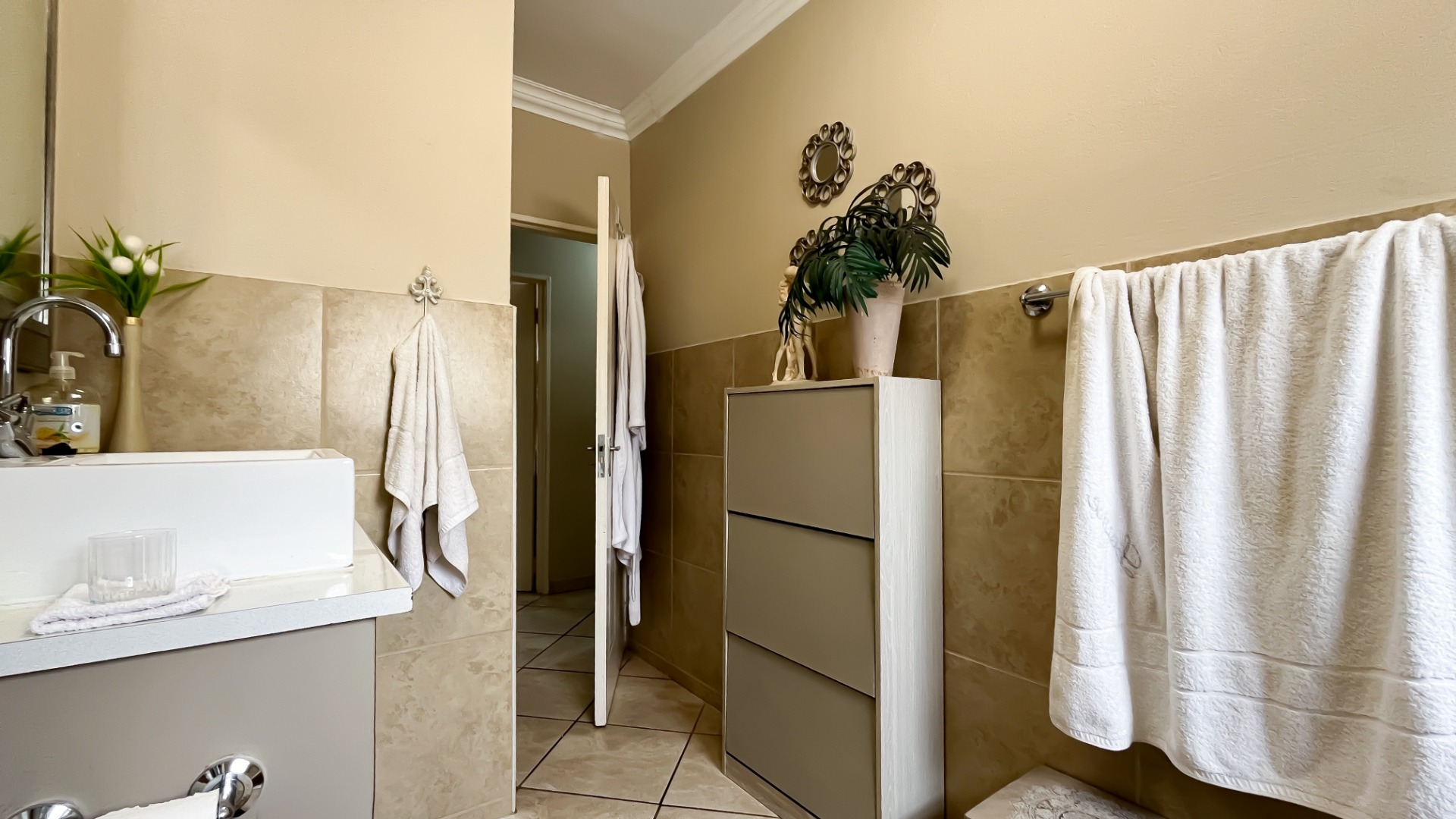 The home offers three well-proportioned bedrooms. Each bedroom is thoughtfully designed with built-in cupboards to ensure both comfort and practicality. Your main bedroom becomes your private retreat, a peaceful space with its own en-suite bathroom, where you can unwind at the end of the day. Both bathrooms are fully equipped with bath, shower, and basin, offering the convenience and flexibility that modern living demands.