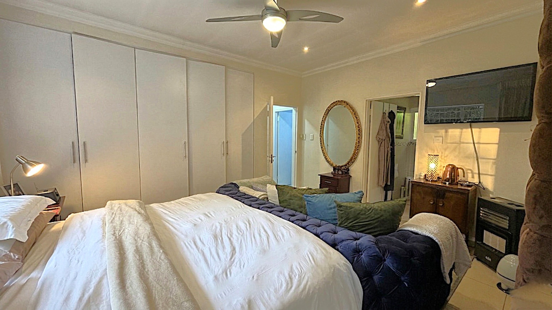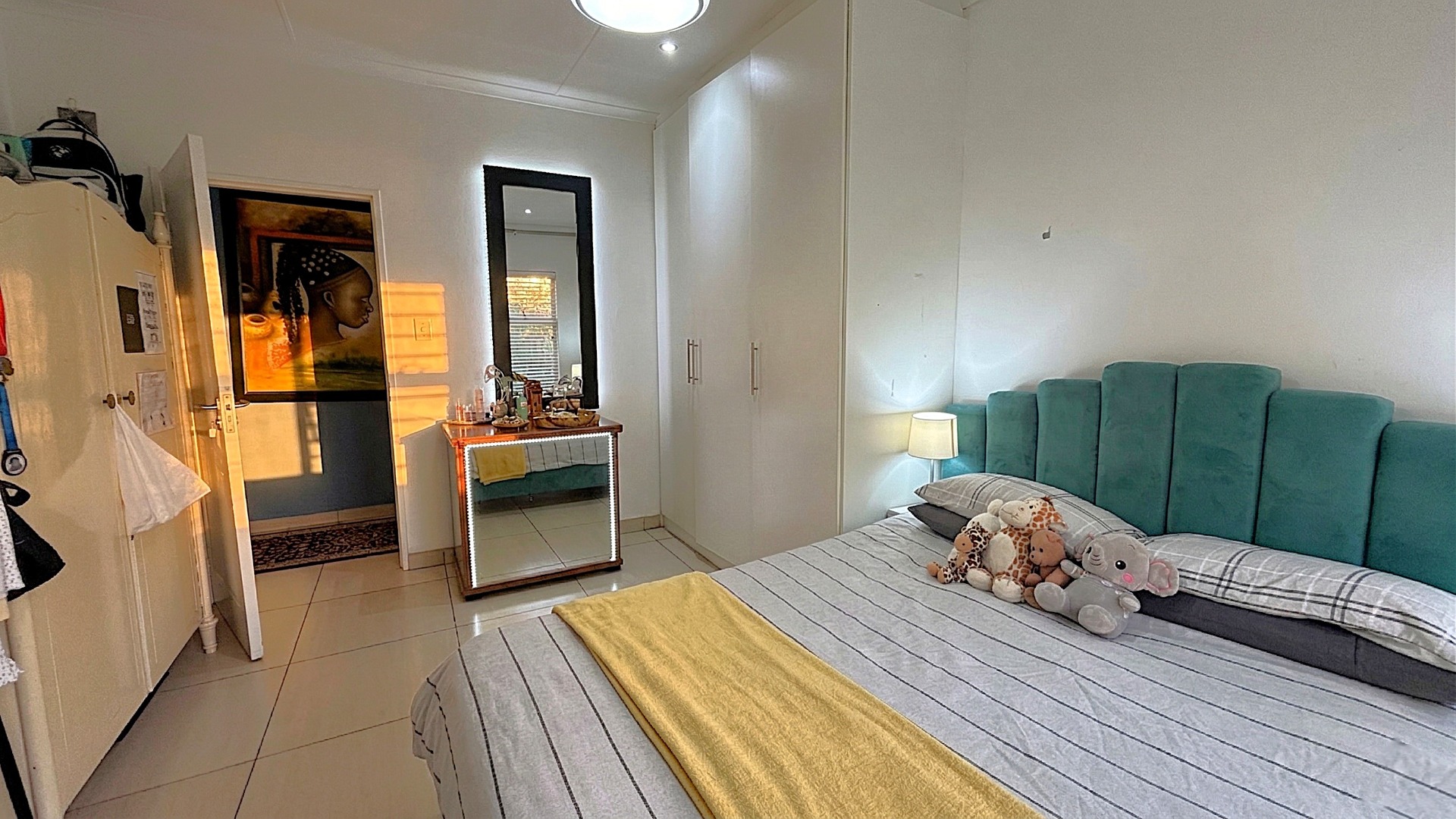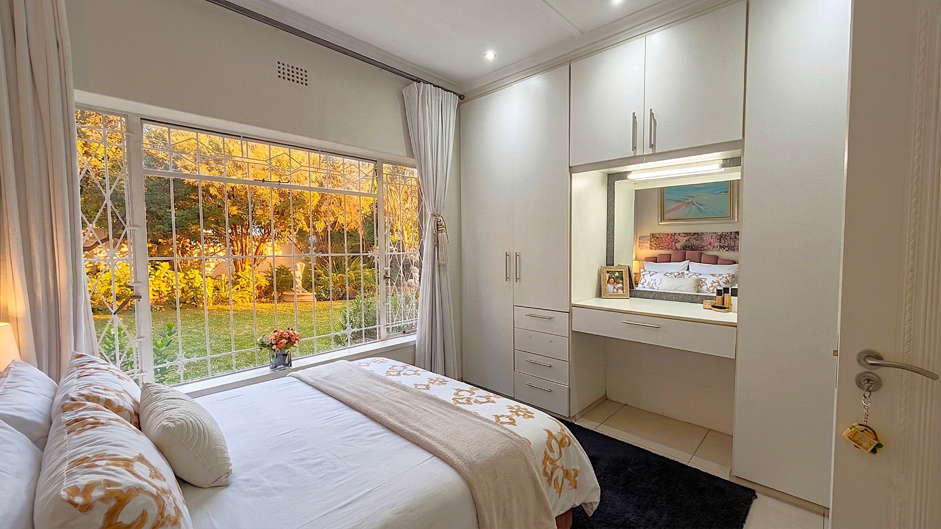 Two Additional Bedrooms: Both featuring built-in cupboards and impressive double-volume ceilings.