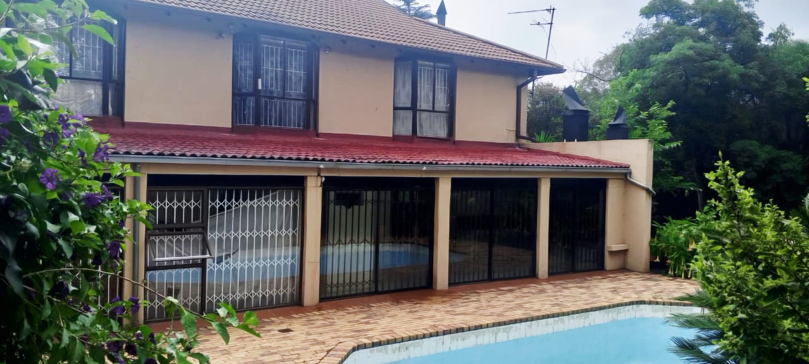 Set on a large 1928 sqm erf, the outdoor area is equally impressive. Residents can enjoy a private swimming pool, a well-maintained garden, and extensive paving. The property also includes a dedicated braai room, perfect for entertaining. With two garages and 5 covered parking spaces, accommodating numerous vehicles is effortless.