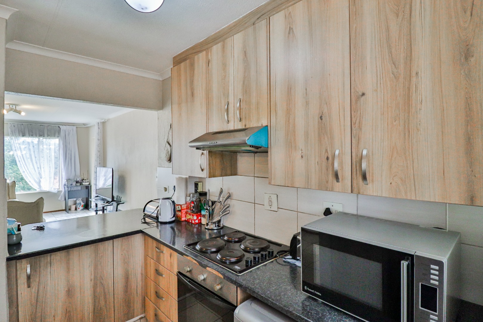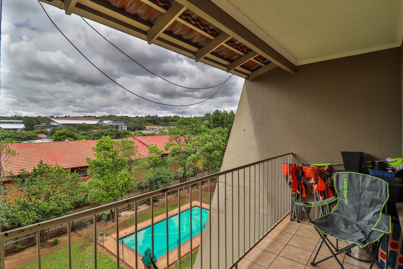 The apartment boasts an open-plan kitchen, lounge, two spacious bedrooms with a full bathroom that includes shower, bath, basin and toilet. The balcony overlooks the communal swimming pool in the complex, and the apartment comes with its own lockup garage.