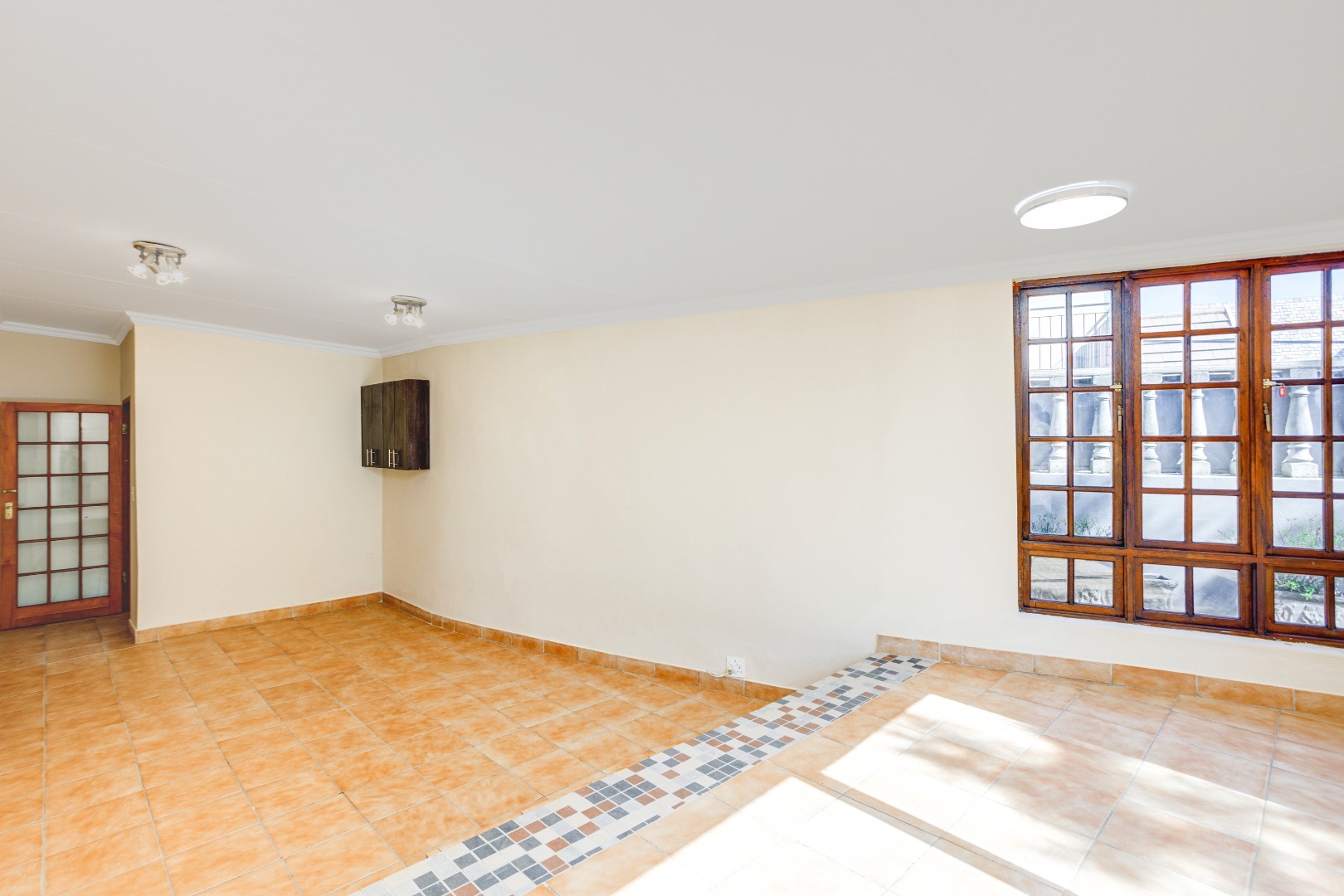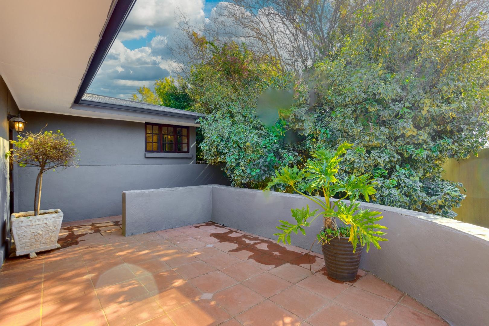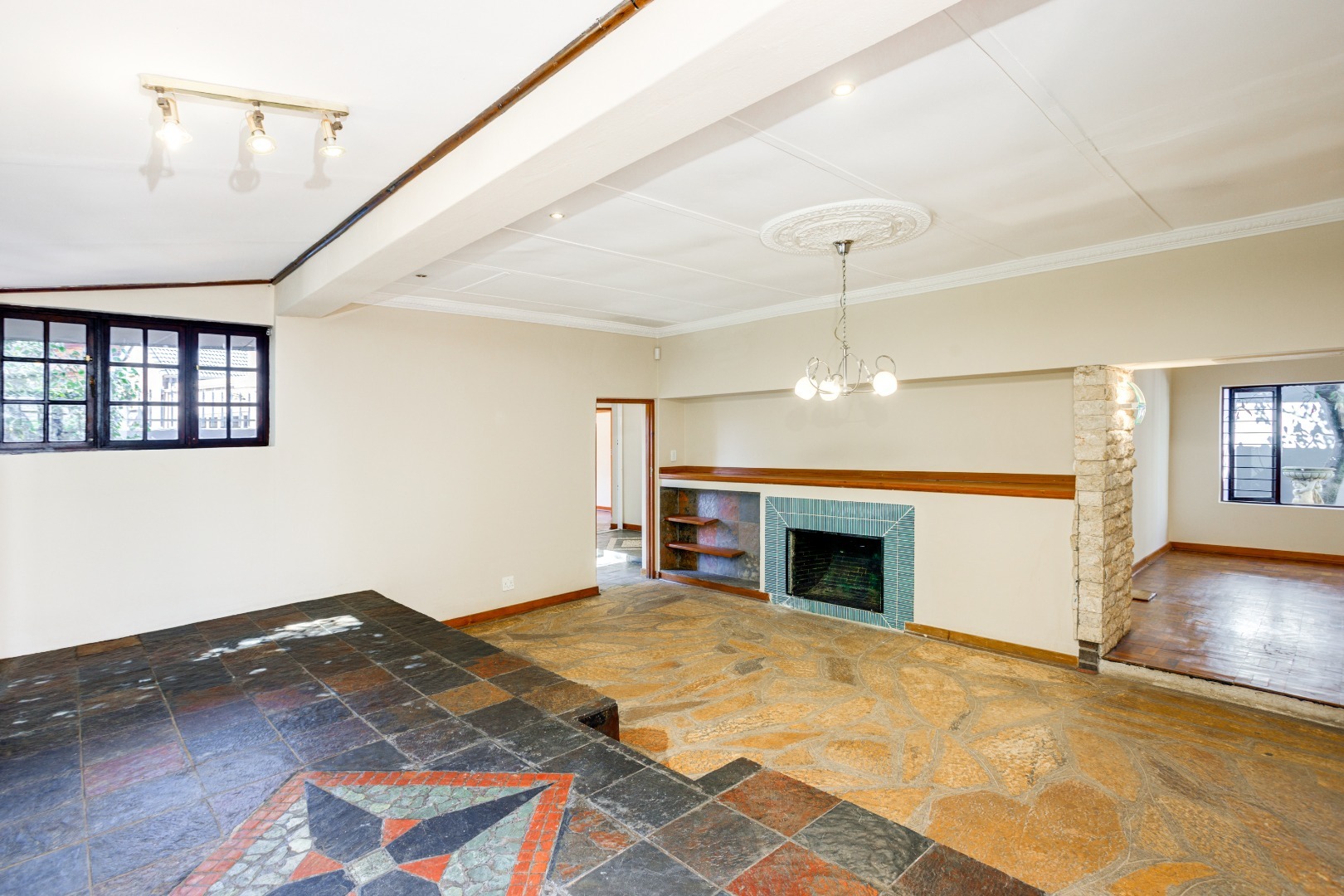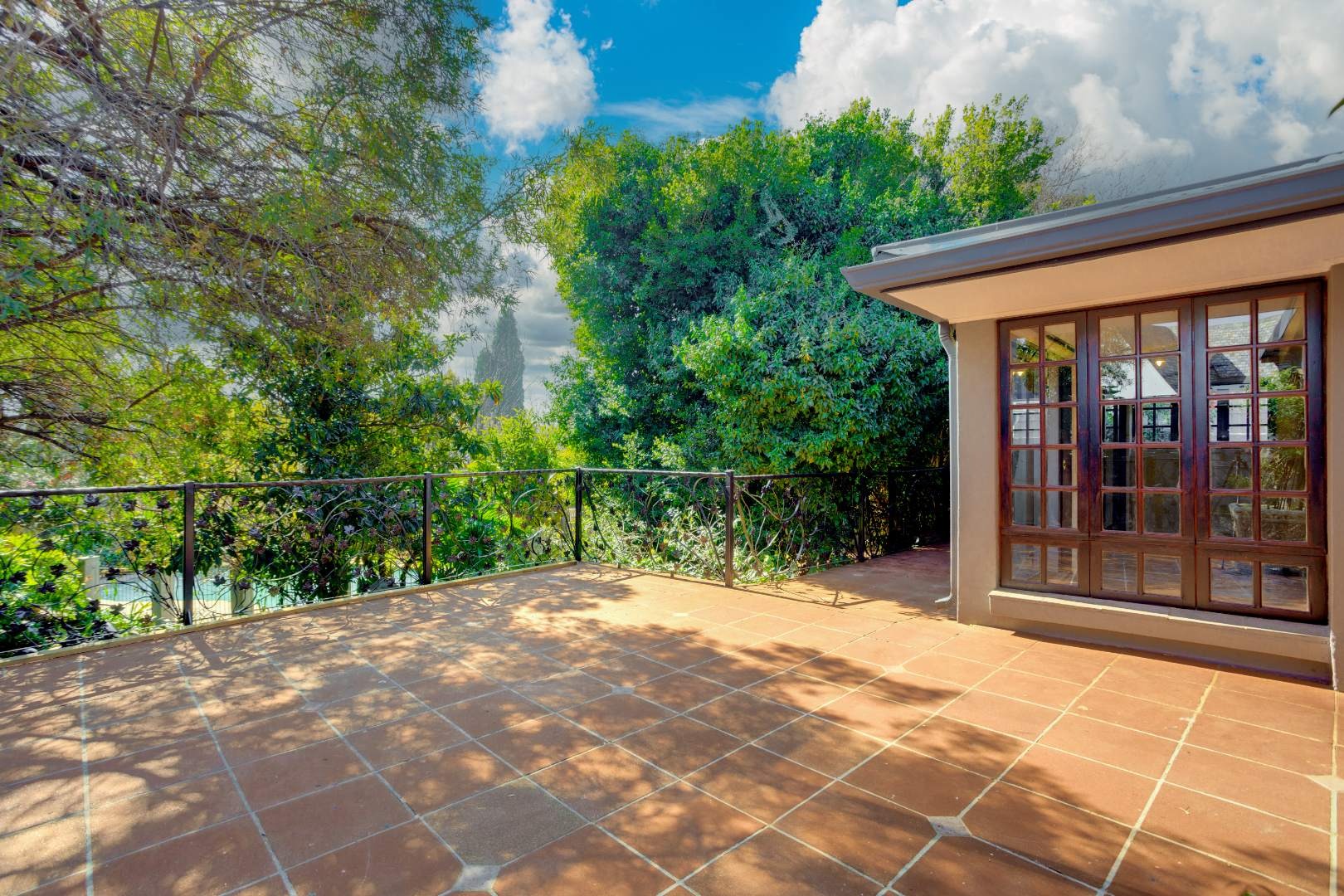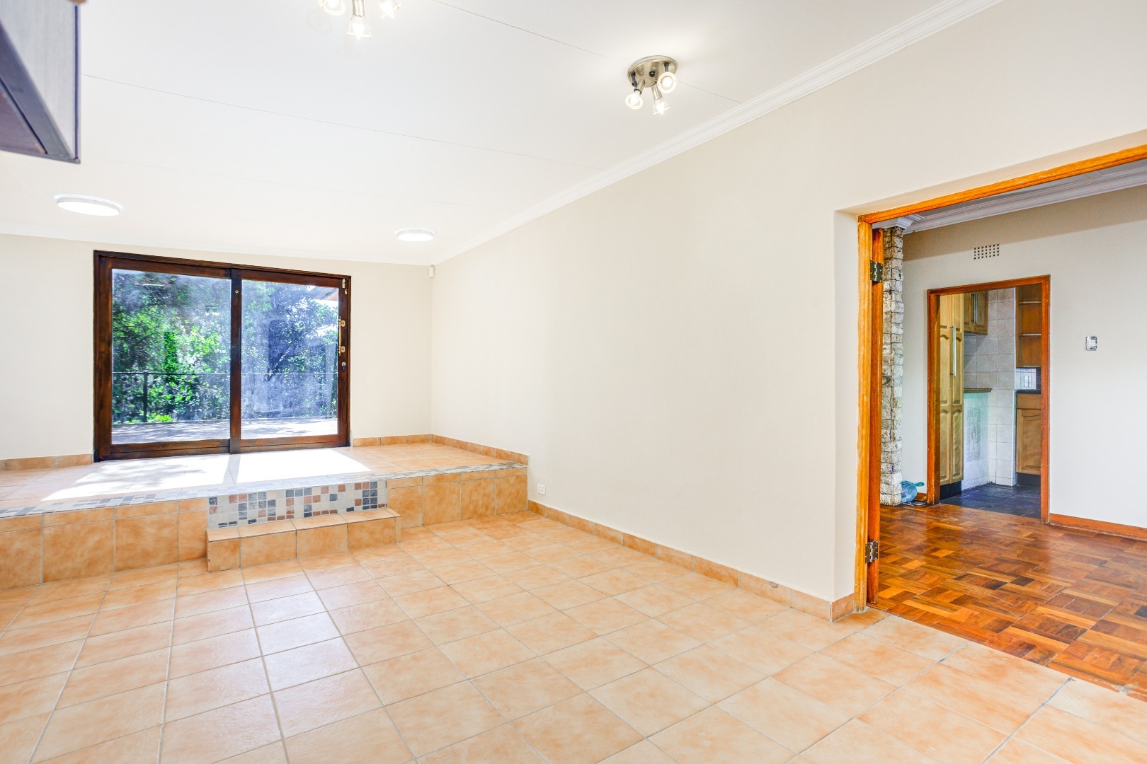 The dining room flows effortlessly into a sun-drenched playroom or entertainment room, which opens onto another patio complete with a built-in braai. This space is perfect for entertaining friends and family on warm summer evenings.
