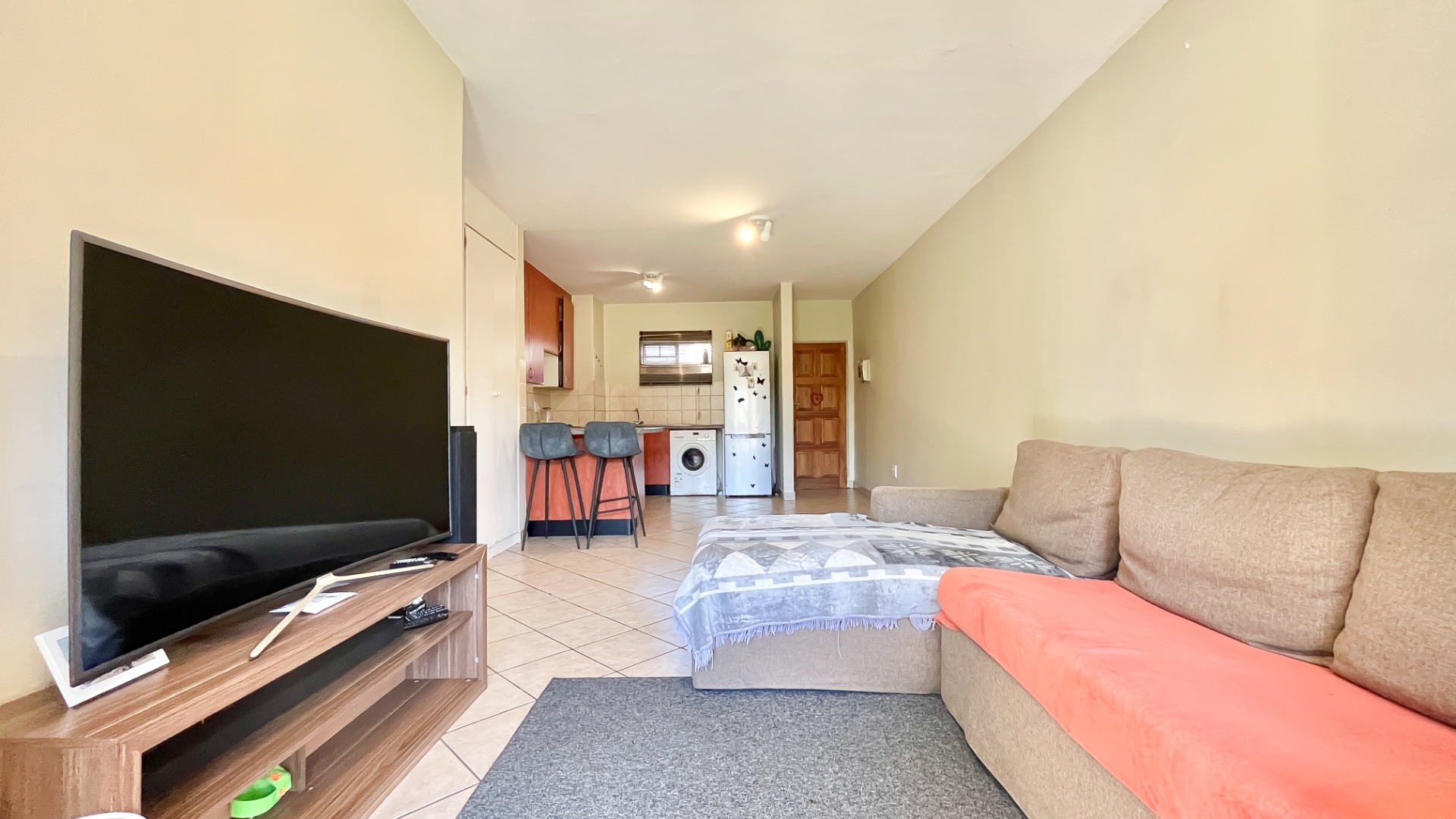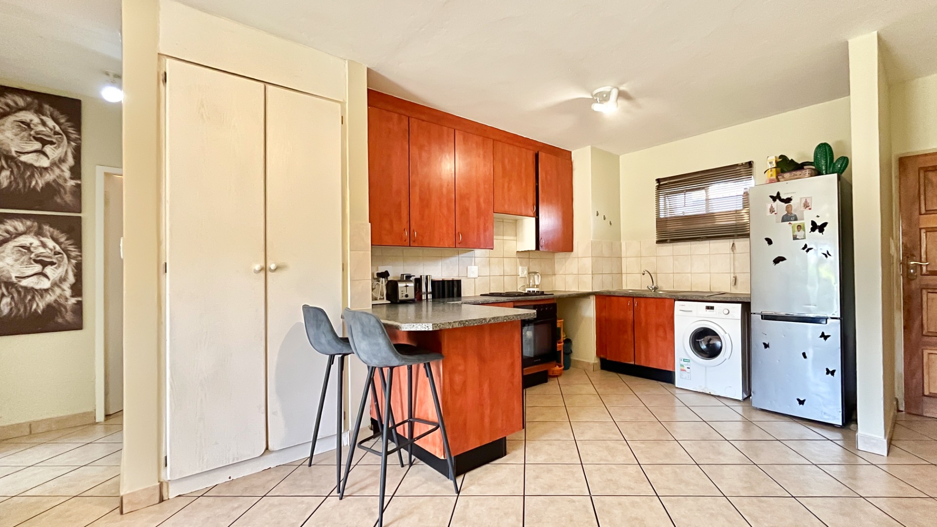 Step inside to discover an open-plan kitchen boasting ample cupboard space – the kind that makes meal prep not only easy but enjoyable. It flows seamlessly into the lounge, where a sliding door opens directly onto your patio, merging indoor comfort with alfresco charm.