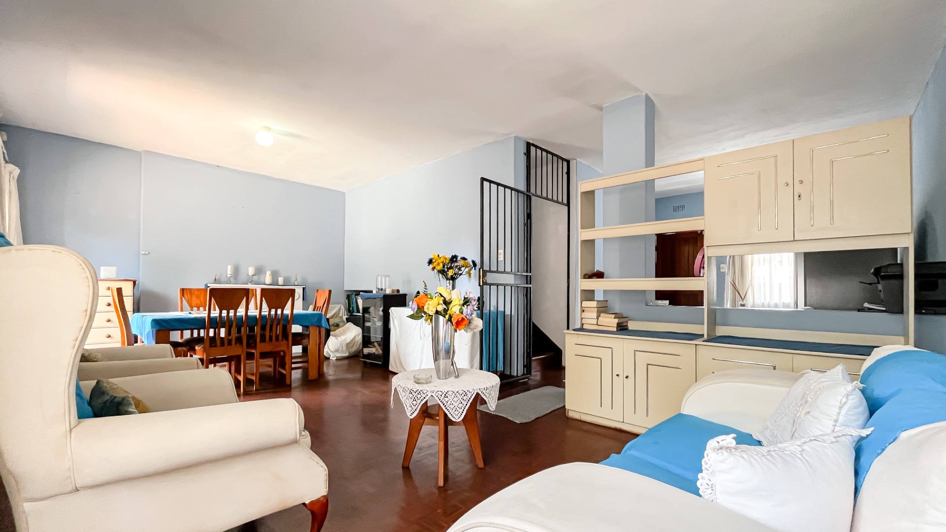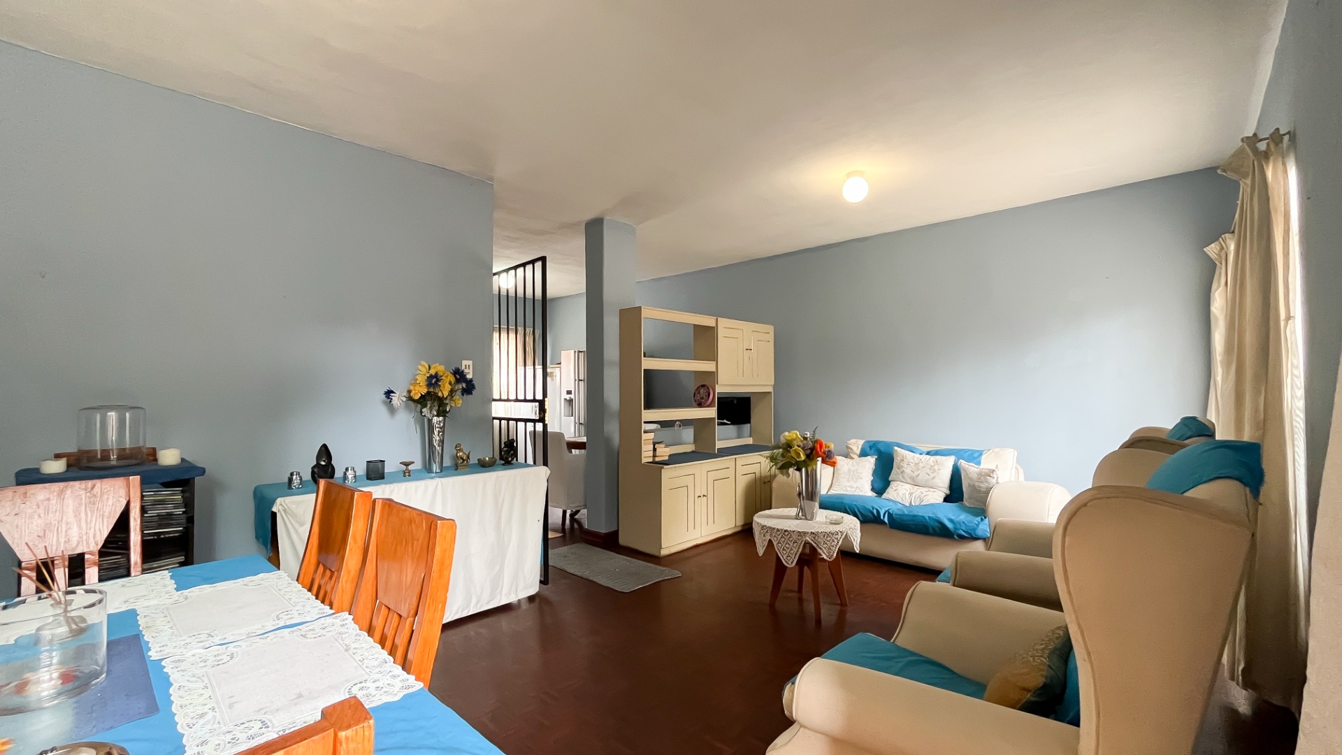 - Open plan lounge/dining room leading to a covered patio next to the pool