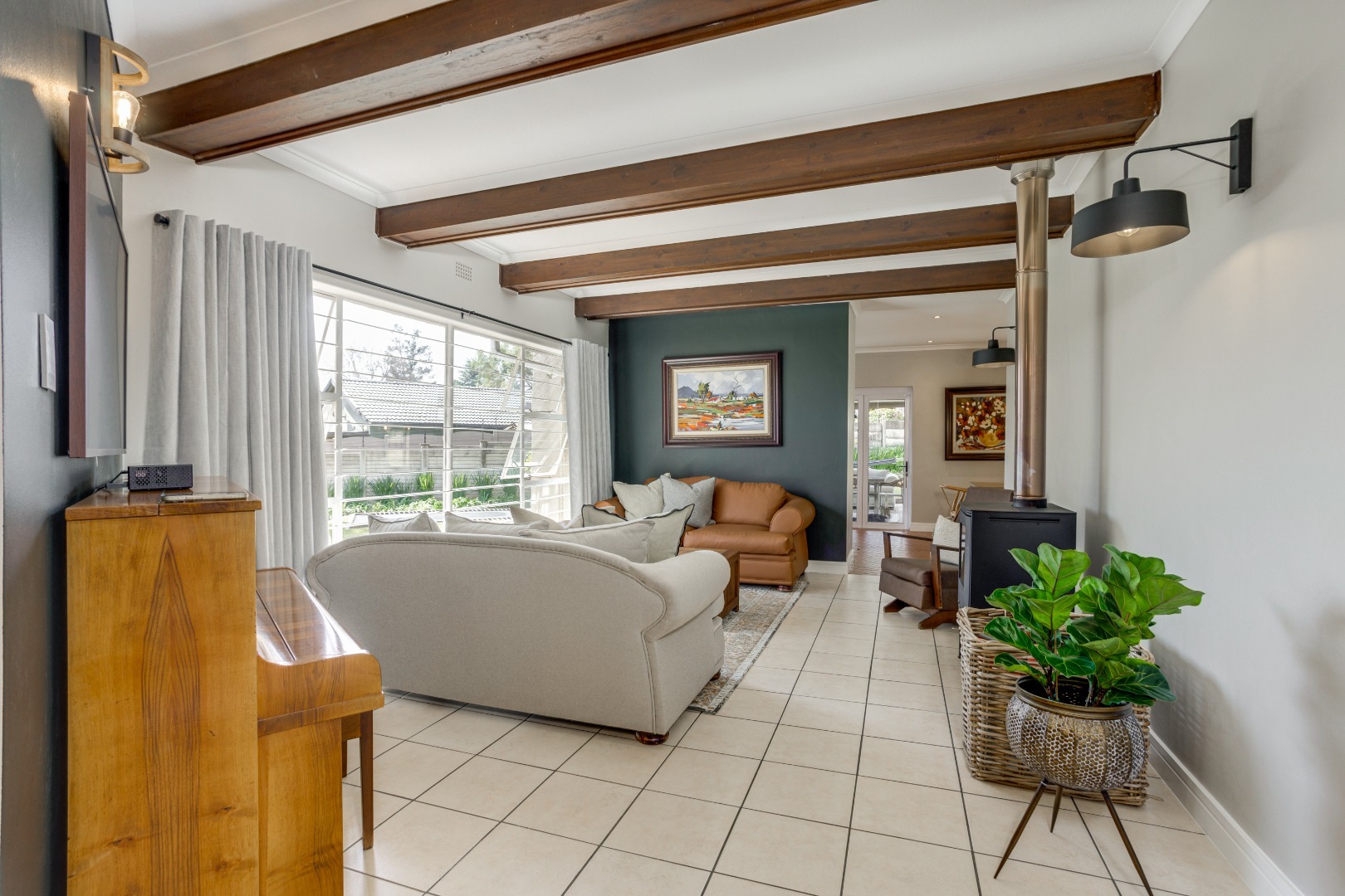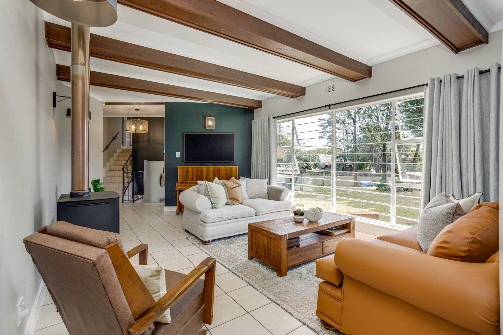 Choose your setting: formal lounge with fireplace for winter evenings, TV room