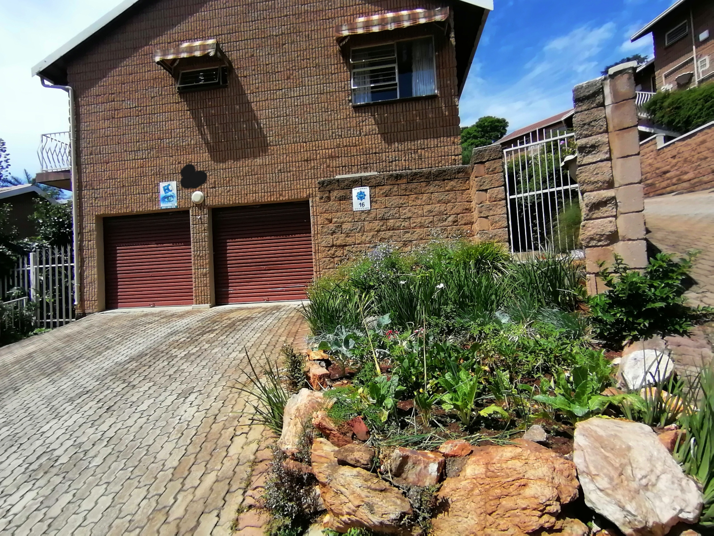 Outside, you'll find a spacious paved patio area, ideal for chilling out or hosting a braai, surrounded by a charming terraced garden, small pets allowed. Imagine enjoying your morning coffee or evening sundowner on the private balcony, soaking in the scenic panoramic views of lush greenery and distant buildings. The property also includes a garden, paving, a driveway, and two garages, making life super convenient. Plus, your furry friends are welcome here!