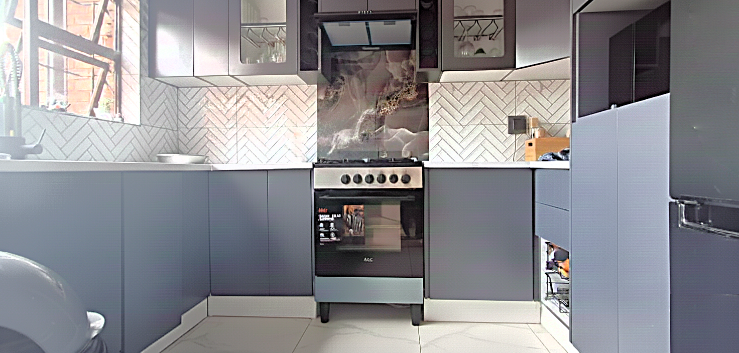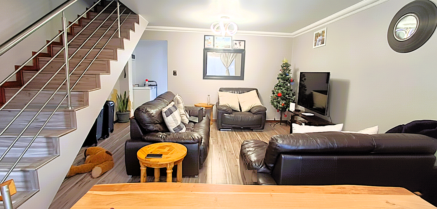 Welcoming entryway leading into the home. Beautiful and well appointed Kitchen: A showstopper! Featuring ample new built-in cupboards, sleek Caesarstone counter-tops, a gas stove and oven, extractor fan, double basin, and designated space for your appliances.