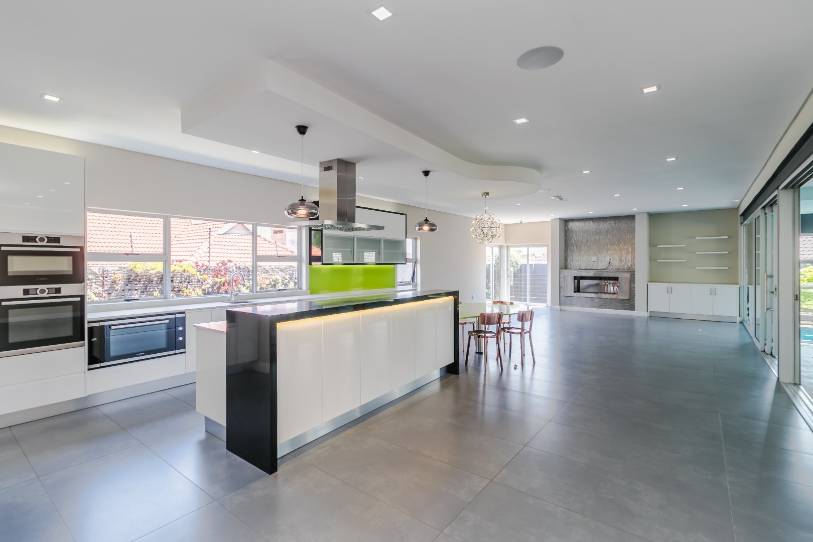 seamlessly connects to an entertainment area with an indoor braai, extractor, and