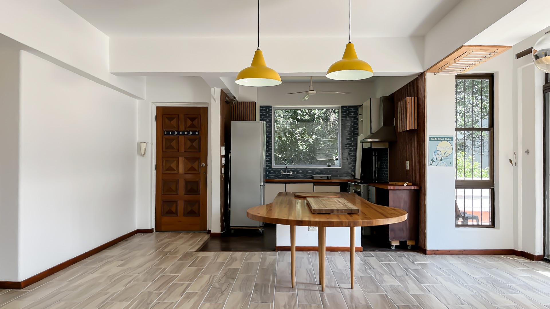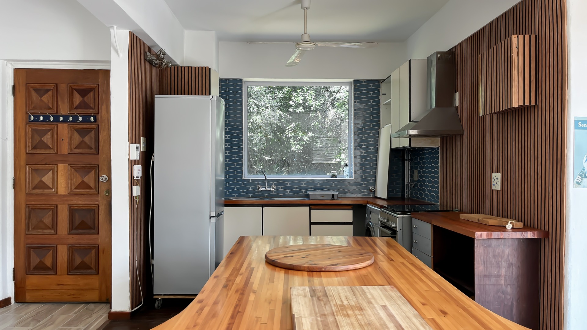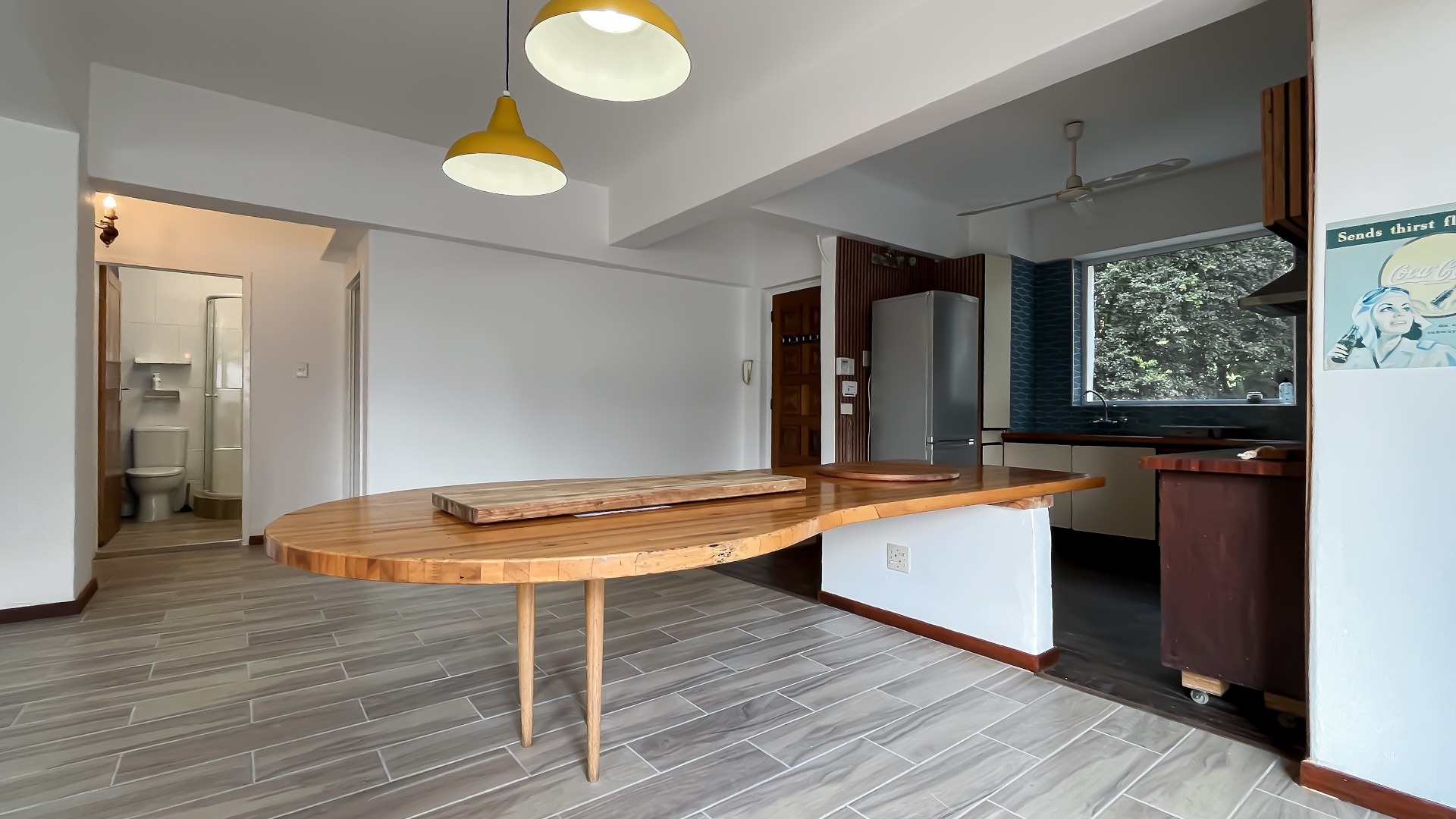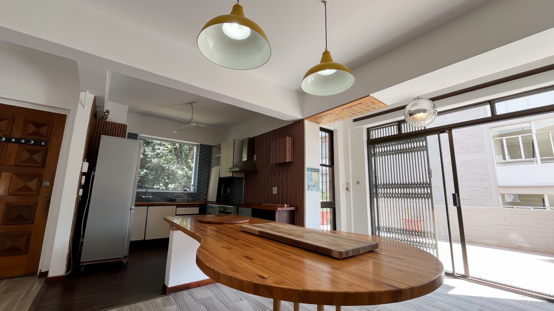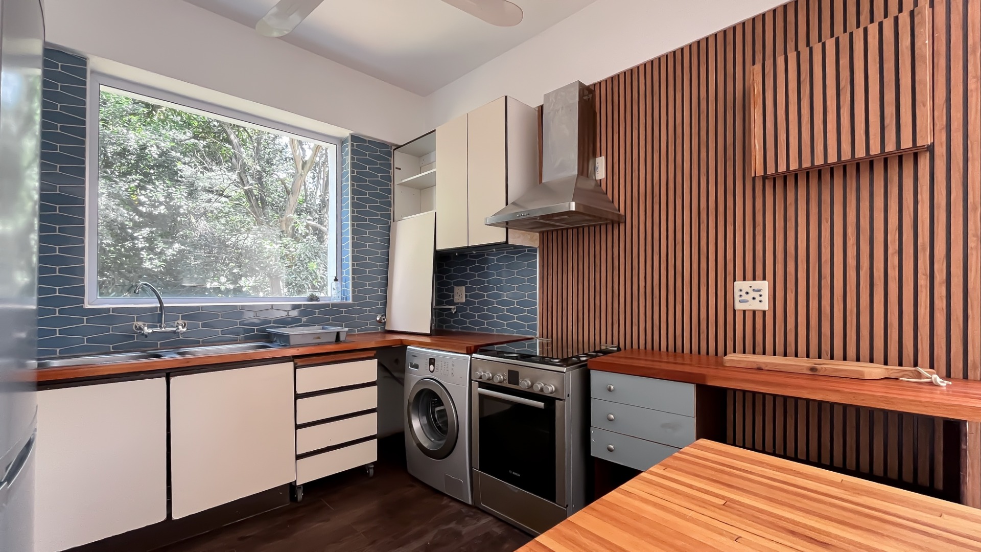 The home features spacious , sun filled living areas with fully tiled floors throughout . The open plan kitchen dining and living room flows seamlessly onto a large sunny open balcony , perfect for “al fresco” entertaining or relaxing outdoors . Flowing from the kitchen a wooden centre island truly enhances the multi -purpose functionality of the dining and living space depending on the specific needs for everyday living or entertaining and hosting guests.