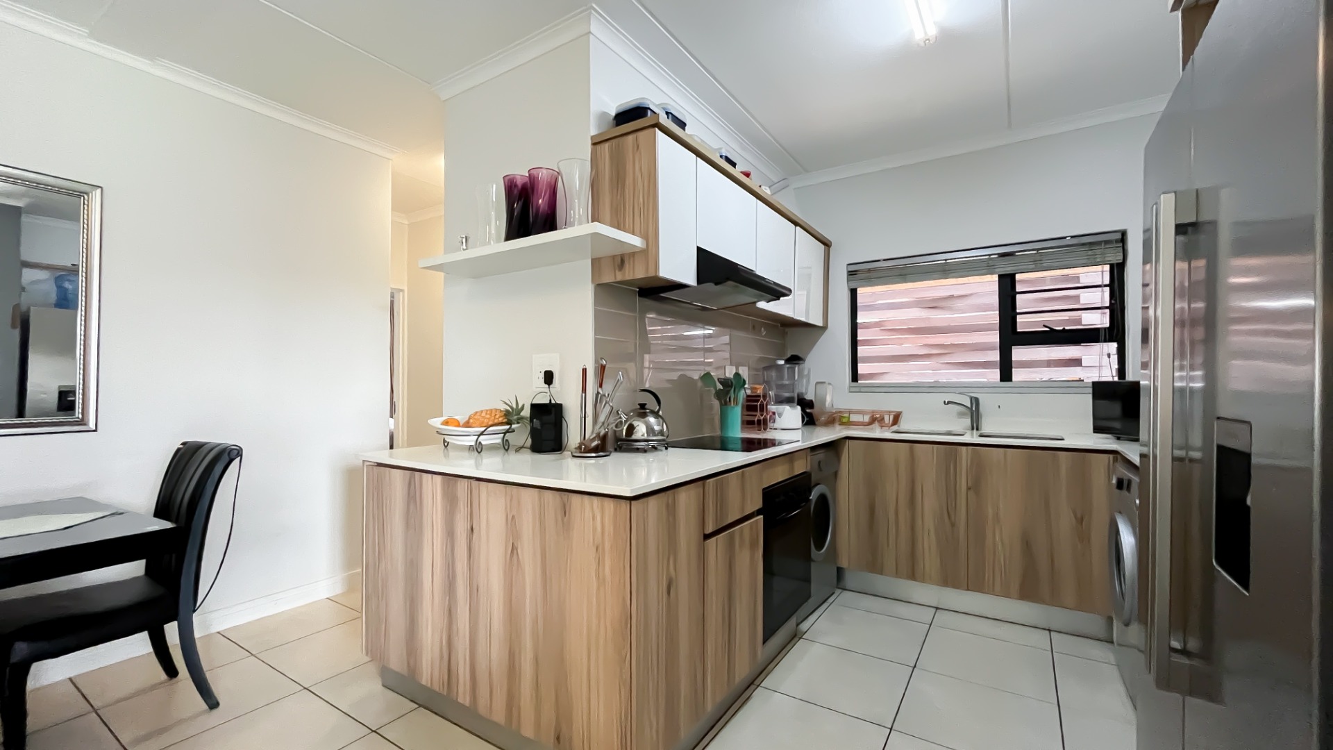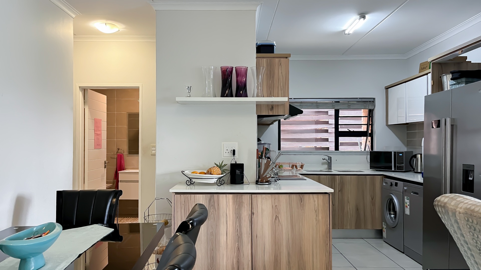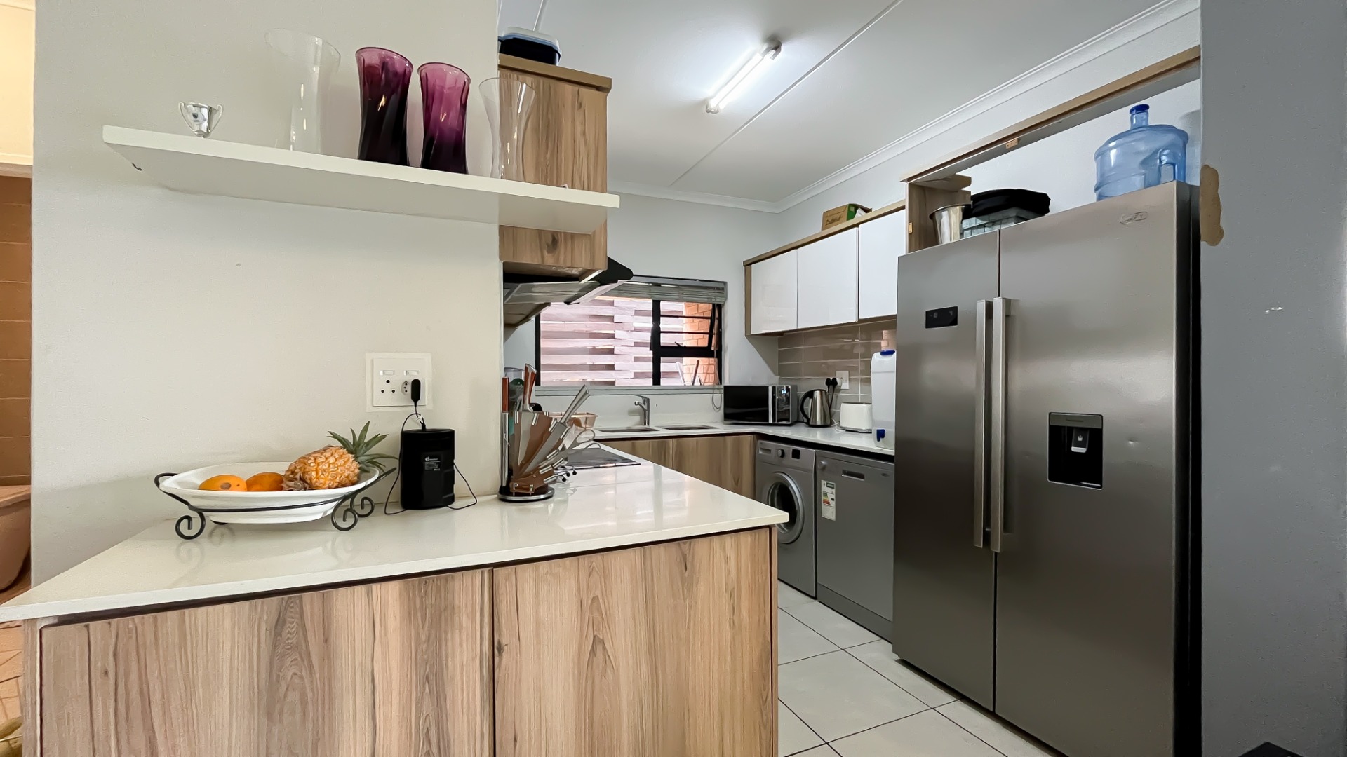 Discover modern living in this inviting 3-bedroom, 2-bathroom residence located within a secure complex in Lindo Park, Pretoria. The home features a thoughtfully designed open-plan layout, seamlessly connecting the lounge, dining area, and a contemporary kitchen. This integrated space is bathed in natural light, creating an airy and welcoming atmosphere perfect for both daily living and entertaining. The modern kitchen is a highlight, boasting stylish wood and white cabinetry, complemented by sleek countertops and integrated stainless steel appliances, including a fridge, washing machine, dishwasher, oven, and hob. Tiled flooring extends throughout the living areas and kitchen, ensuring easy maintenance and a cohesive aesthetic. The neutral wall tones provide a versatile canvas for personal decor. Comfort is paramount in the three well-proportioned bedrooms, with the main bedroom benefiting from a private en-suite bathroom. The additional bathroom serves the remaining bedrooms, offering convenience for residents and guests. Step outside from the living area to a private garden and patio space, ideal for relaxation or outdoor dining, enhancing the indoor-outdoor flow of the home. Two dedicated parking bays are also provided for residents. This property offers peace of mind with its comprehensive security features, including 24-hour security, CCTV surveillance, an access gate, and an intercom system. Residents also benefit from access to a clubhouse and fibre-ready connectivity, ensuring a modern and connected lifestyle. Pets are allowed, making this an ideal home for animal lovers. Lindo Park provides a convenient suburban setting within the vibrant city of Pretoria.