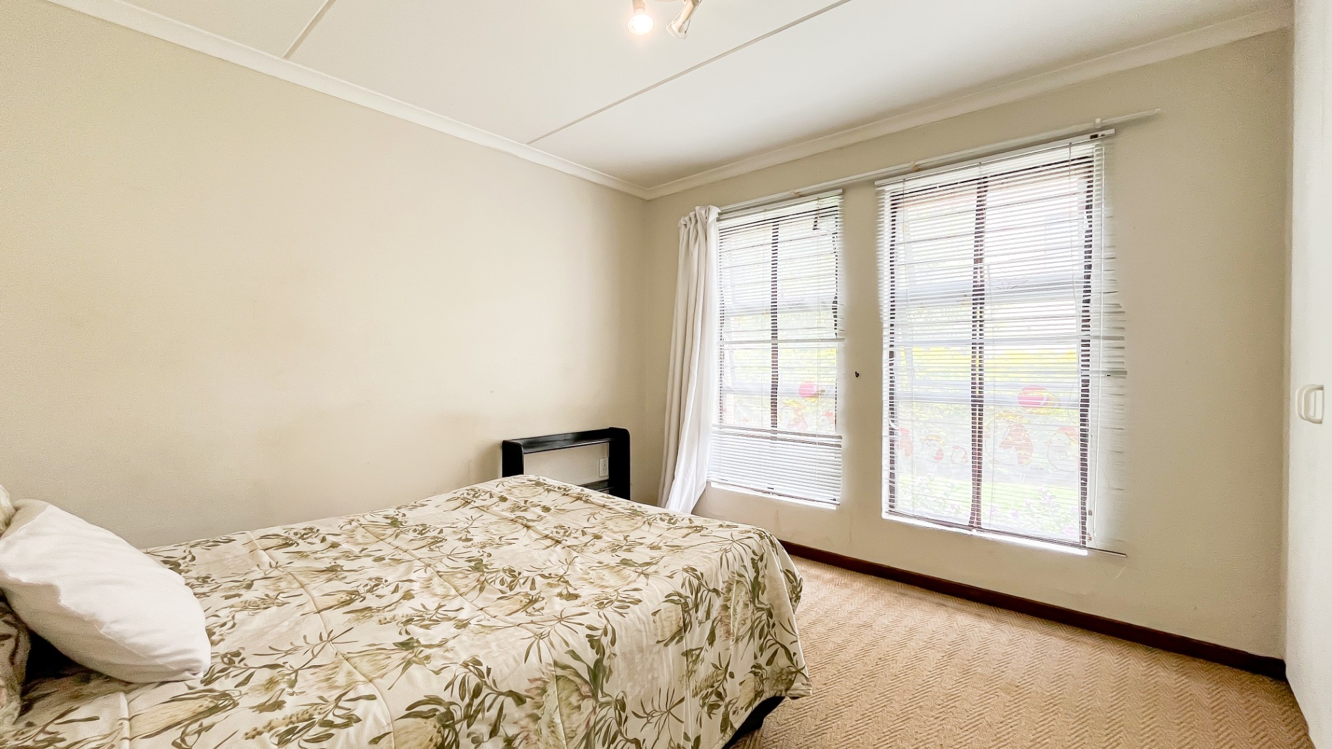 One of the bedrooms opens onto a private balcony, offering a lovely, elevated space to relax and enjoy fresh air. The double garage accommodates two vehicles comfortably, providing secure and convenient parking.