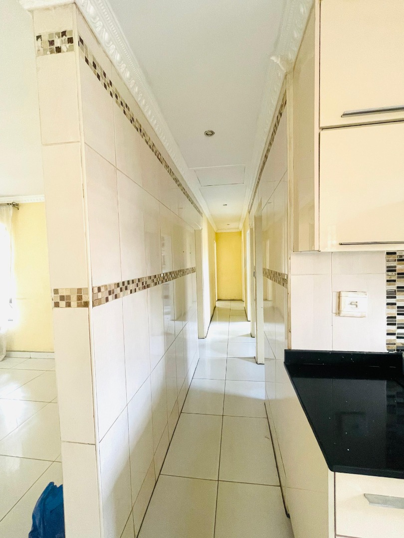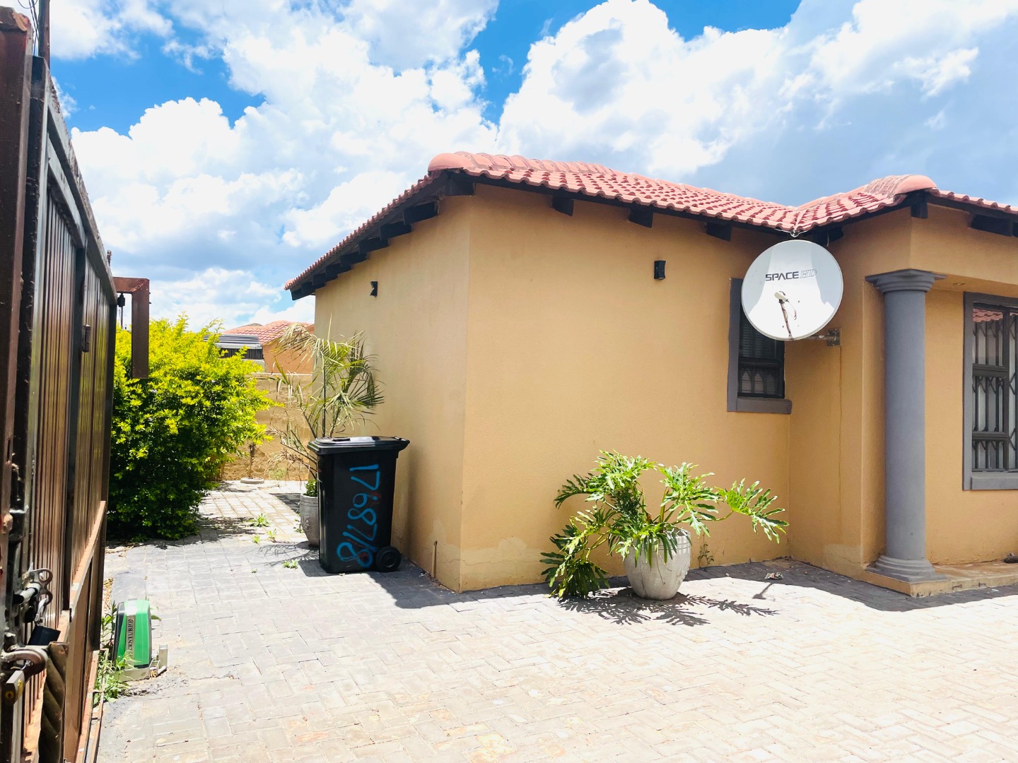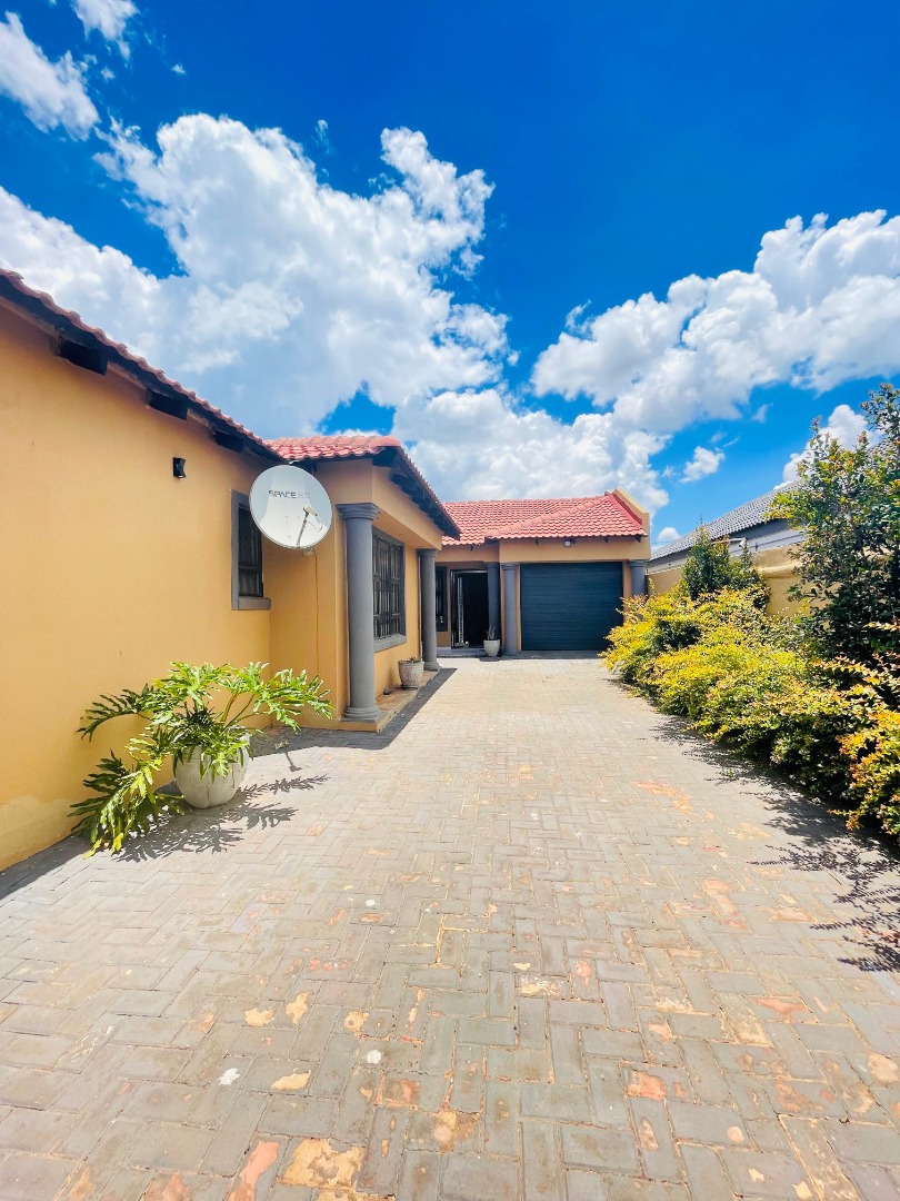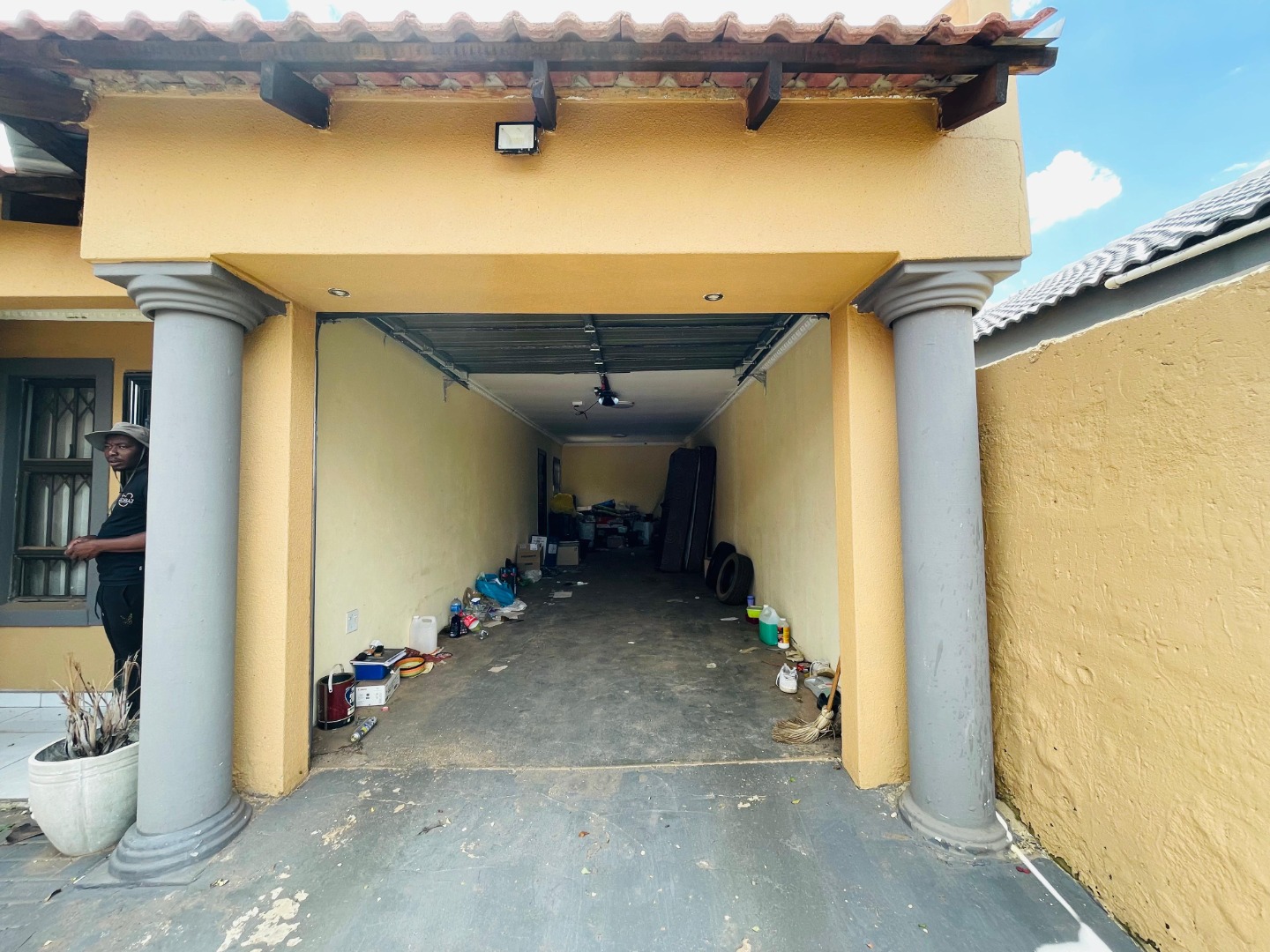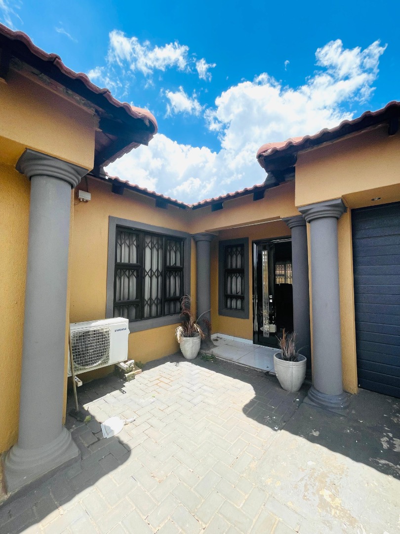 Discover this inviting 3-bedroom residence in Protea Glen, Soweto, offering a blend of comfort and practicality. The property immediately impresses with its well-maintained exterior, featuring a classic terracotta-tiled roof and warm yellow-beige walls. A sturdy, totally walled perimeter with an entrance gate ensures privacy and security, complemented by a brick-paved driveway that provides ample off-street parking and leads to a double garage. Security bars on windows and a security gate further enhance peace of mind.