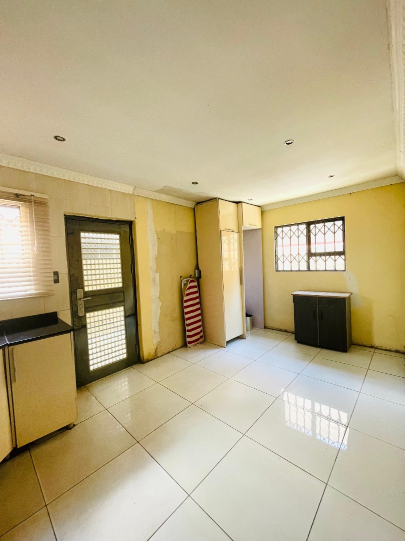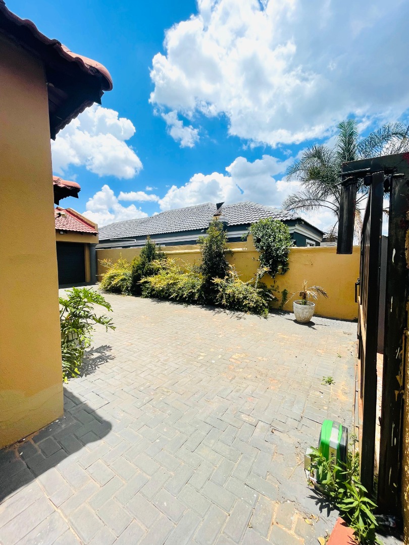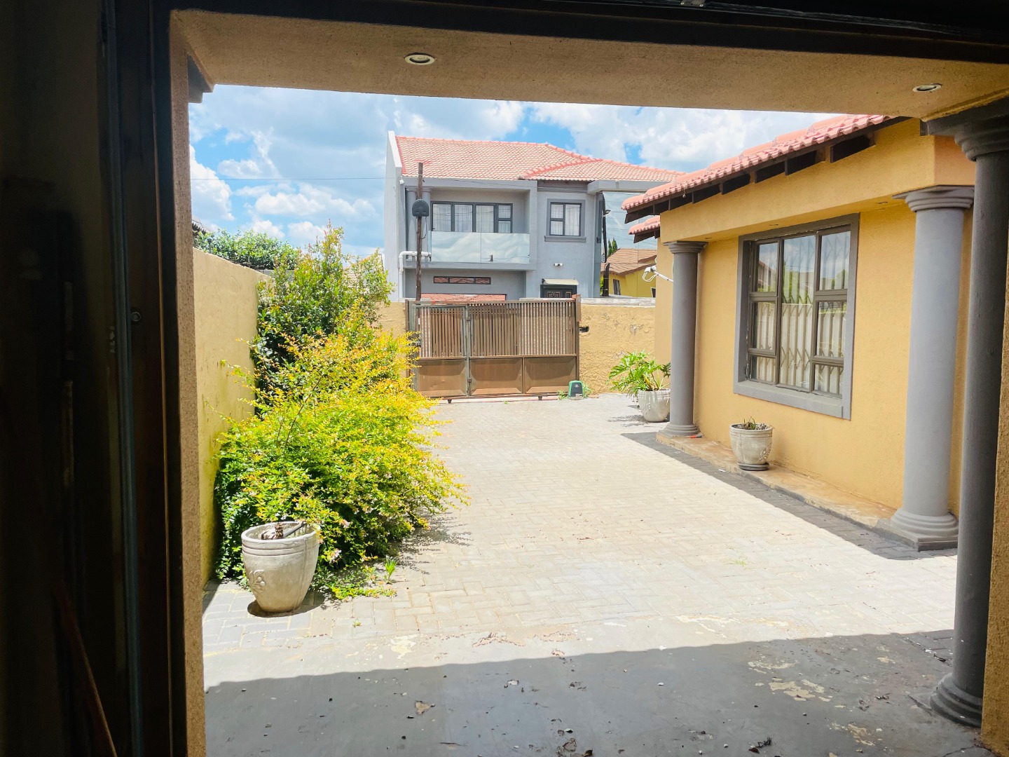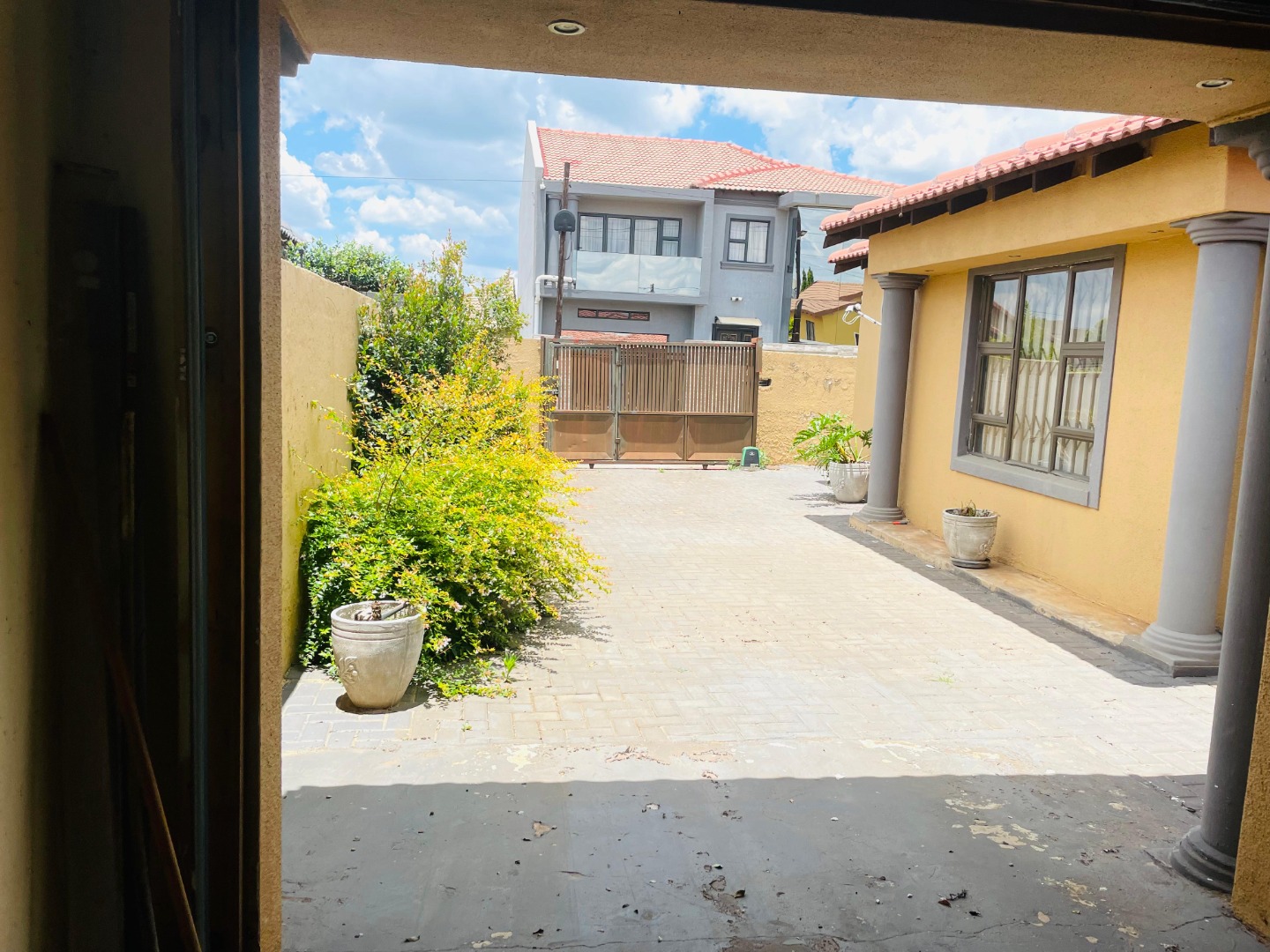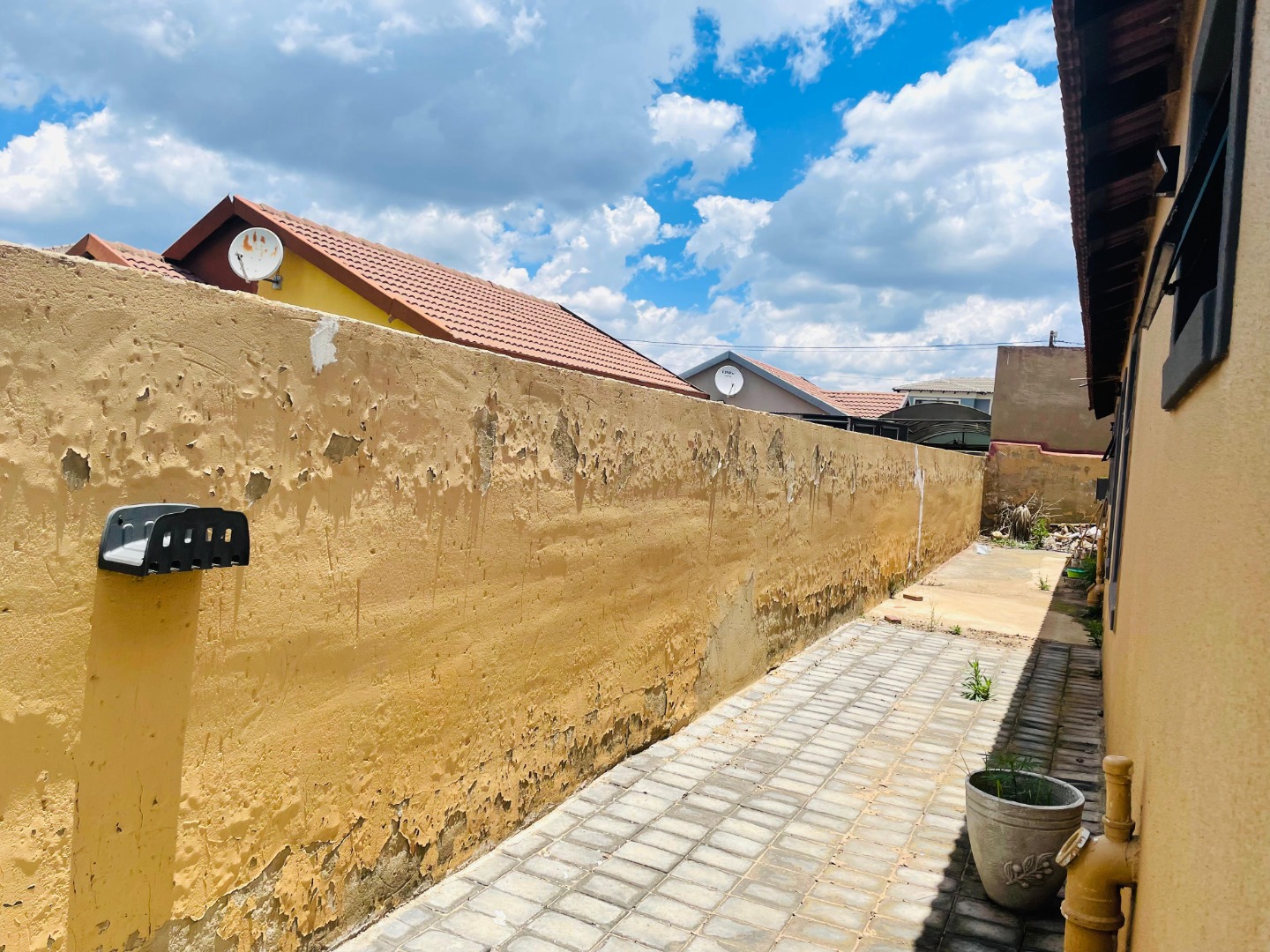 Discover this inviting 3-bedroom residence in Protea Glen, Soweto, offering a blend of comfort and practicality. The property immediately impresses with its well-maintained exterior, featuring a classic terracotta-tiled roof and warm yellow-beige walls. A sturdy, totally walled perimeter with an entrance gate ensures privacy and security, complemented by a brick-paved driveway that provides ample off-street parking and leads to a double garage. Security bars on windows and a security gate further enhance peace of mind.