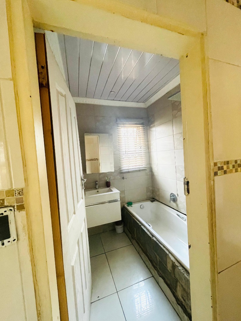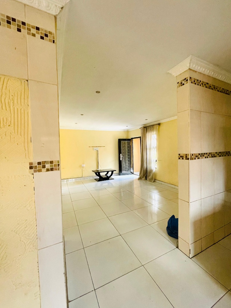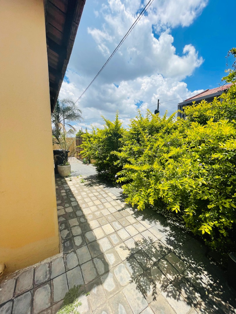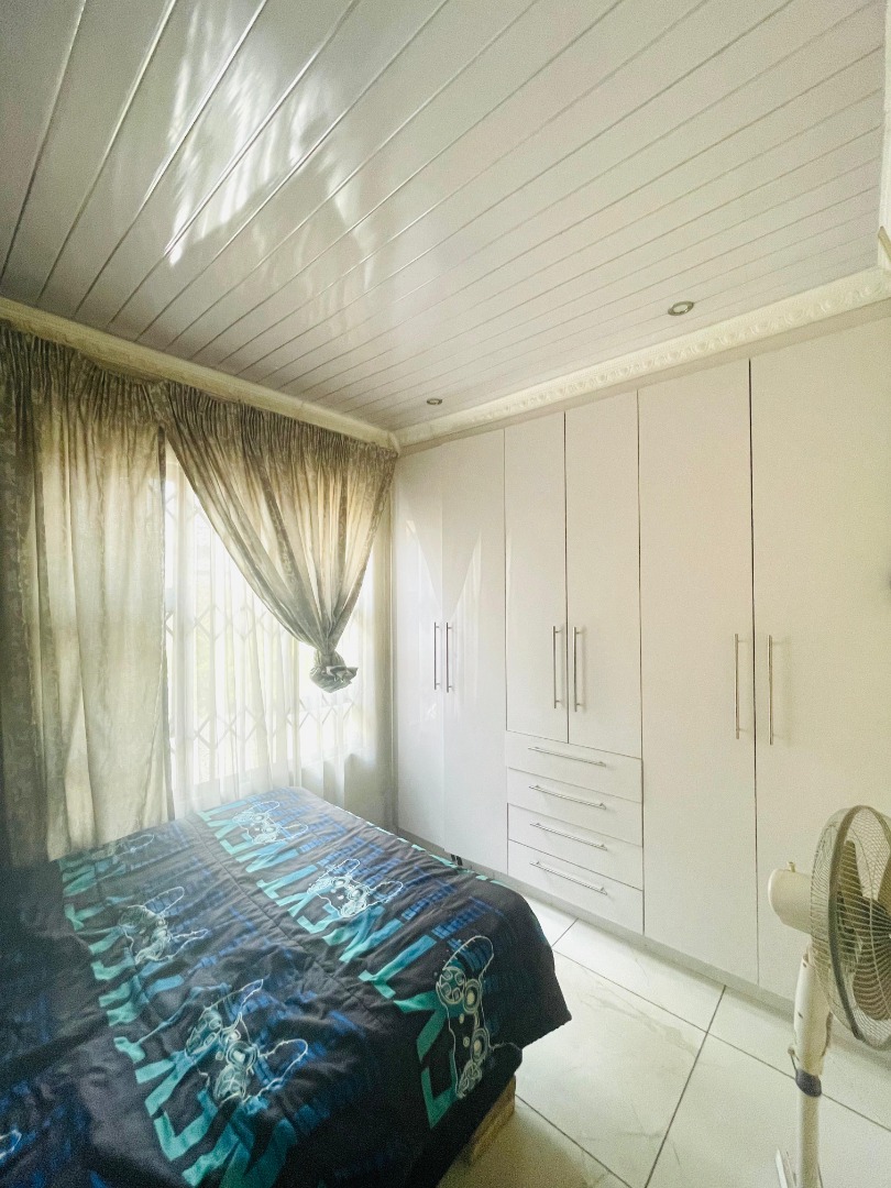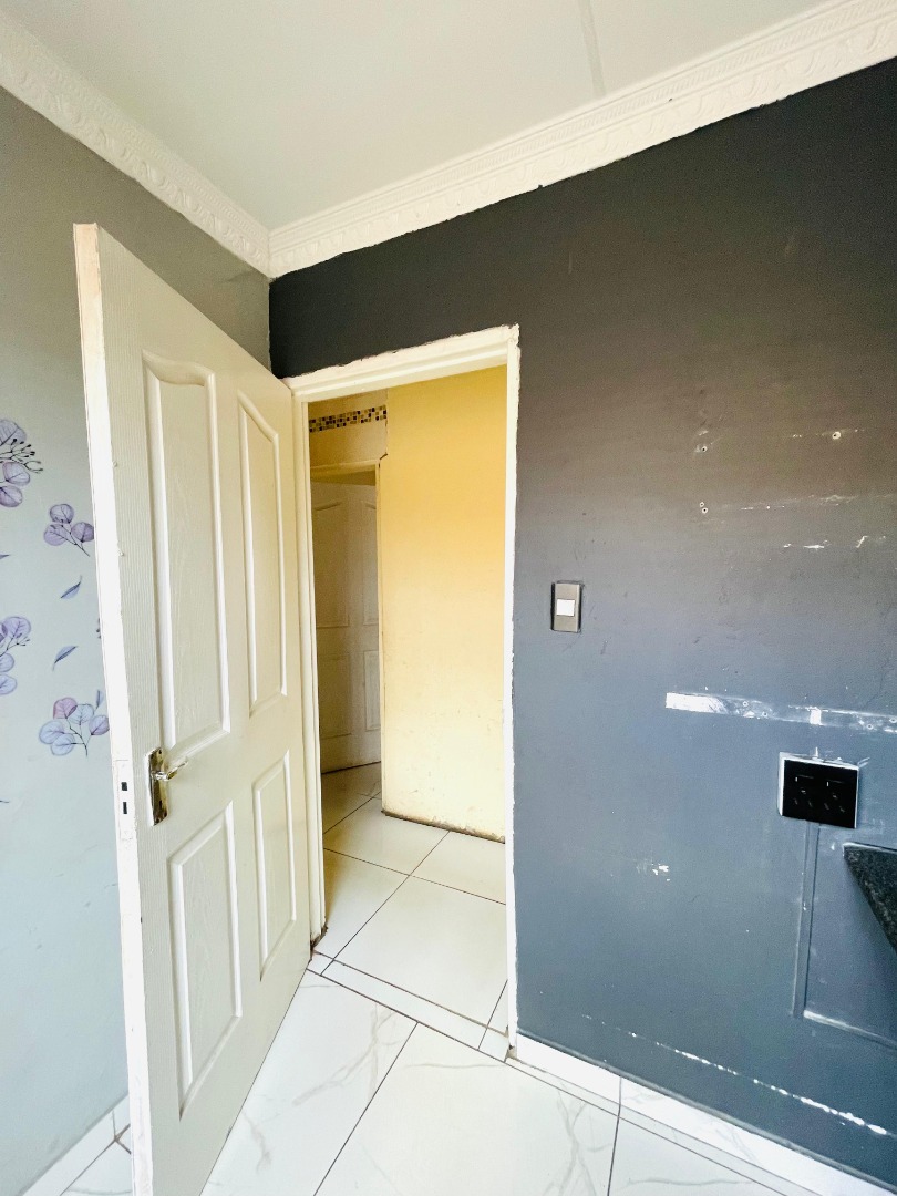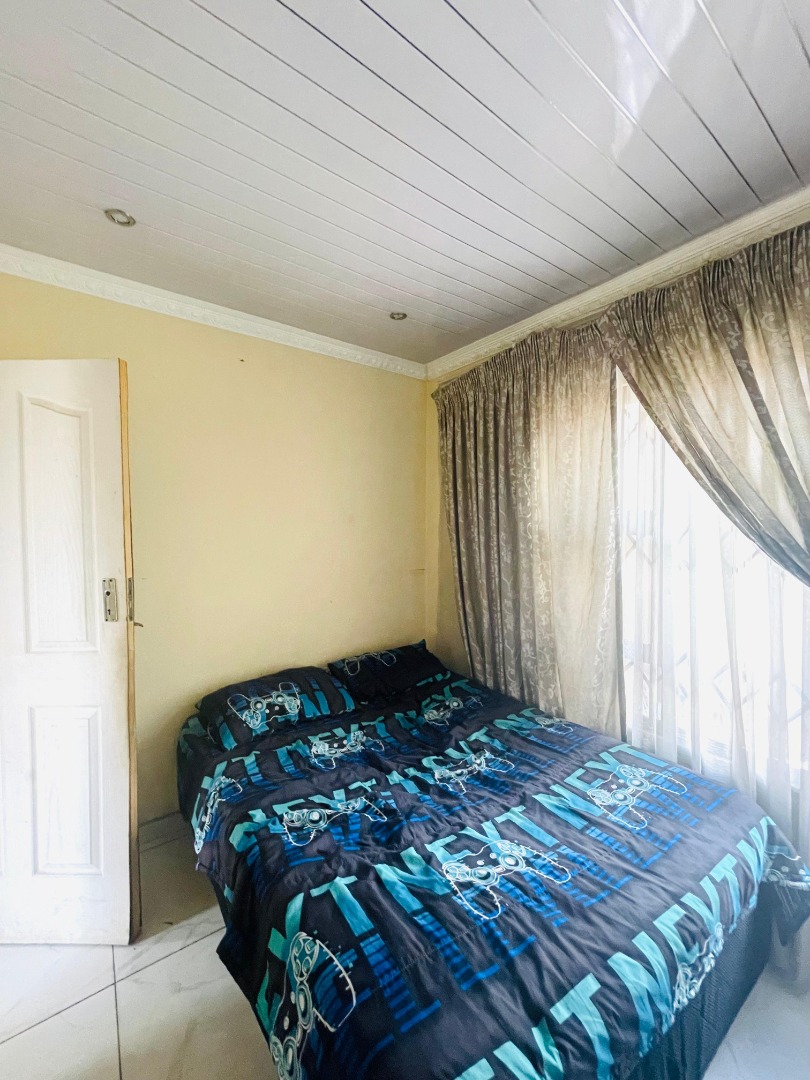Discover this inviting 3-bedroom residence in Protea Glen, Soweto, offering a blend of comfort and practicality. The property immediately impresses with its well-maintained exterior, featuring a classic terracotta-tiled roof and warm yellow-beige walls. A sturdy, totally walled perimeter with an entrance gate ensures privacy and security, complemented by a brick-paved driveway that provides ample off-street parking and leads to a double garage. Security bars on windows and a security gate further enhance peace of mind.
