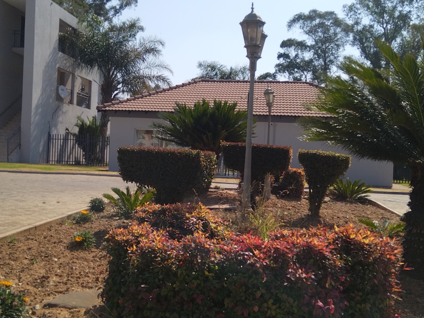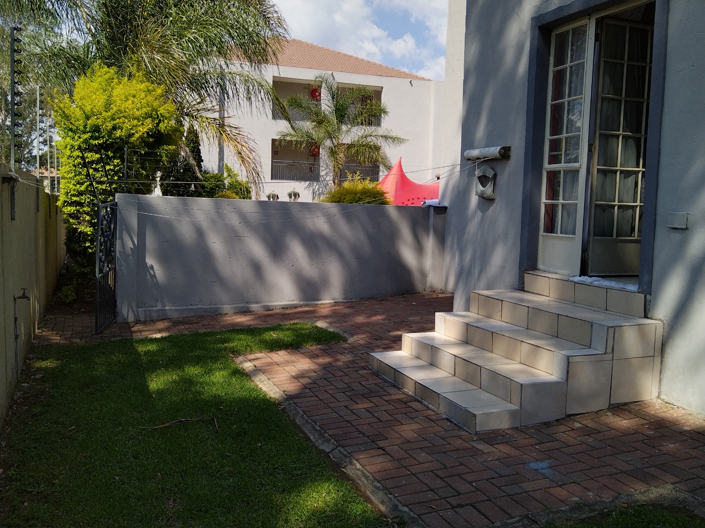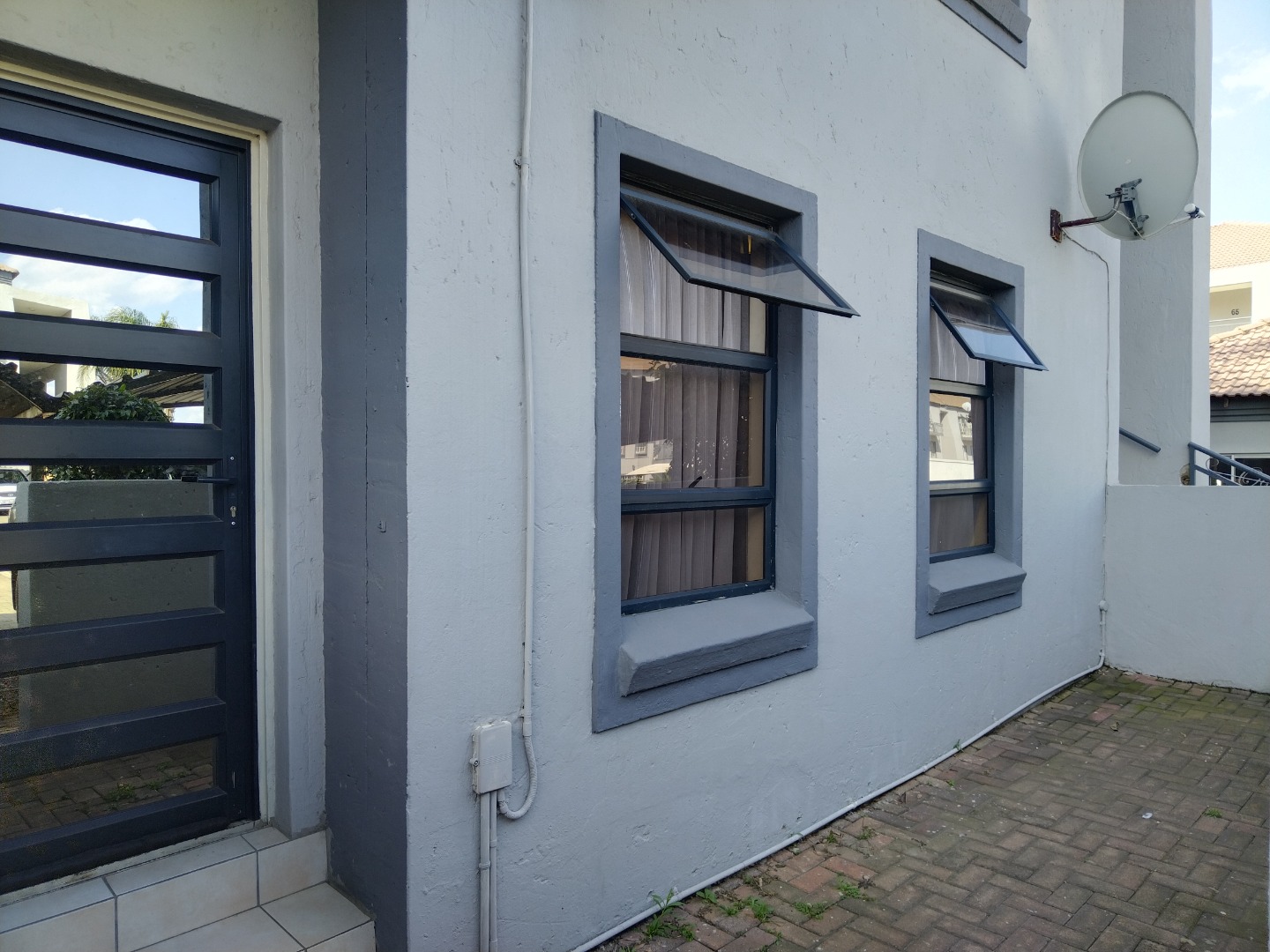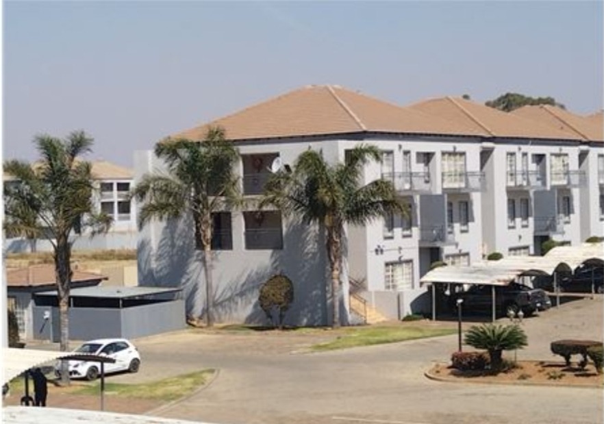 nestled within a secure estate in Brakpan North, To Let. this meticulously designed 95 sqm residence offers an exceptional opportunity for discerning buyers seeking country living with modern conveniences. The property forms part of a well-maintained complex, characterised by its contemporary architectural style, light grey facades, and tropical landscaping, providing a serene and aesthetically pleasing environment.