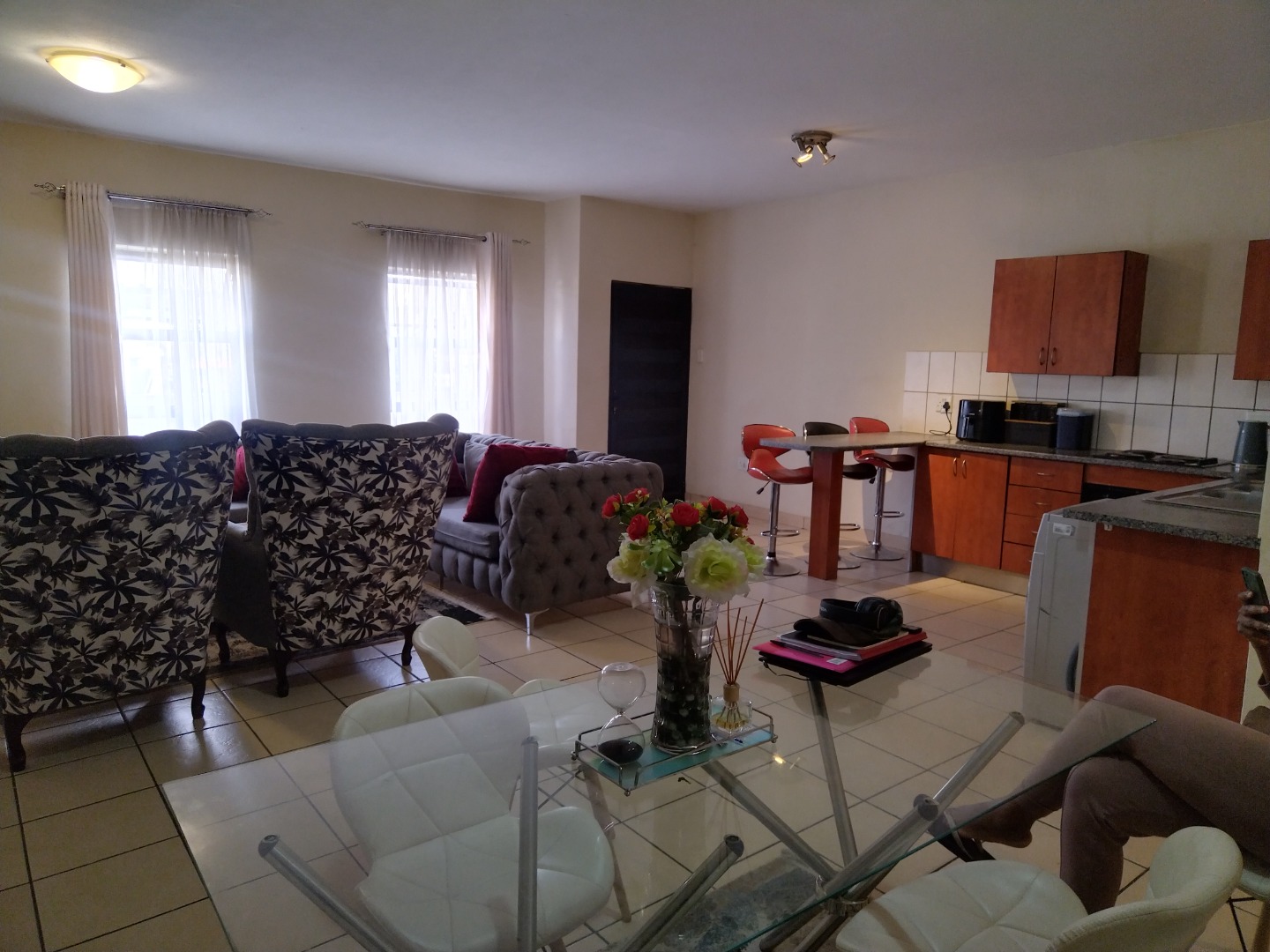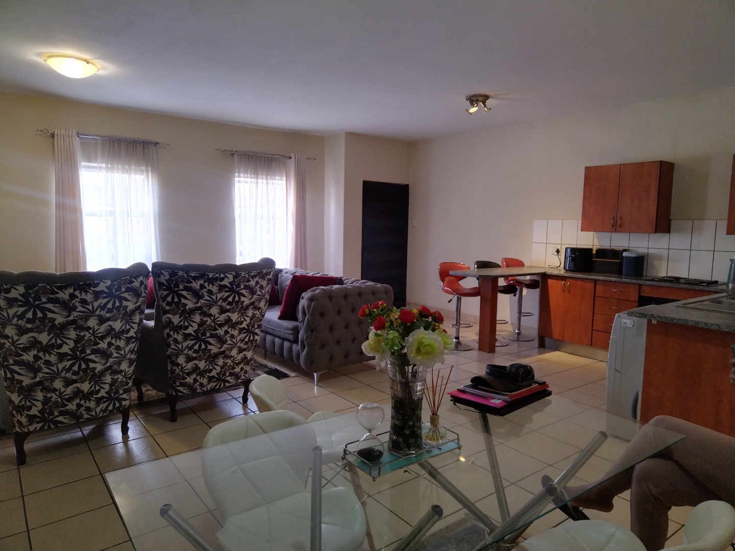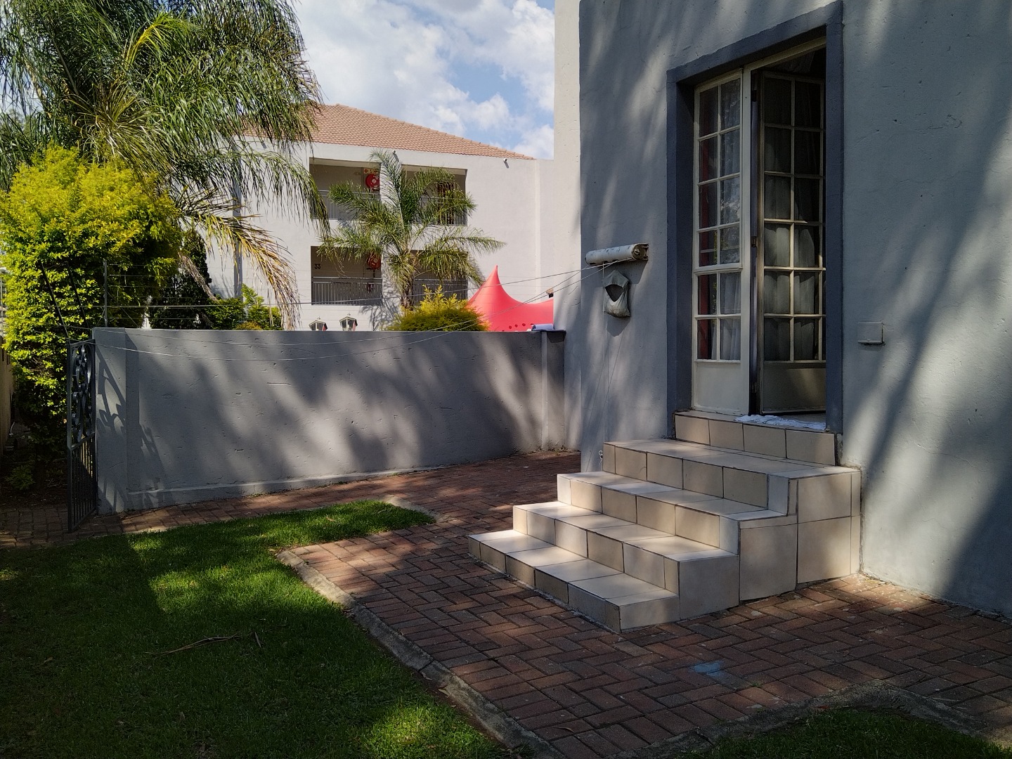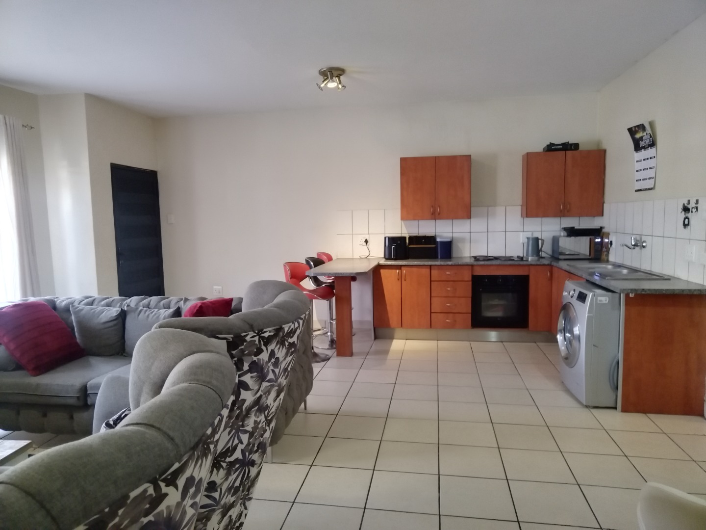 nestled within a secure estate in Brakpan North, To Let. this meticulously designed 95 sqm residence offers an exceptional opportunity for discerning buyers seeking country living with modern conveniences. The property forms part of a well-maintained complex, characterised by its contemporary architectural style, light grey facades, and tropical landscaping, providing a serene and aesthetically pleasing environment.