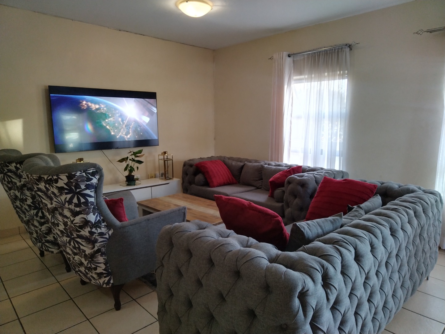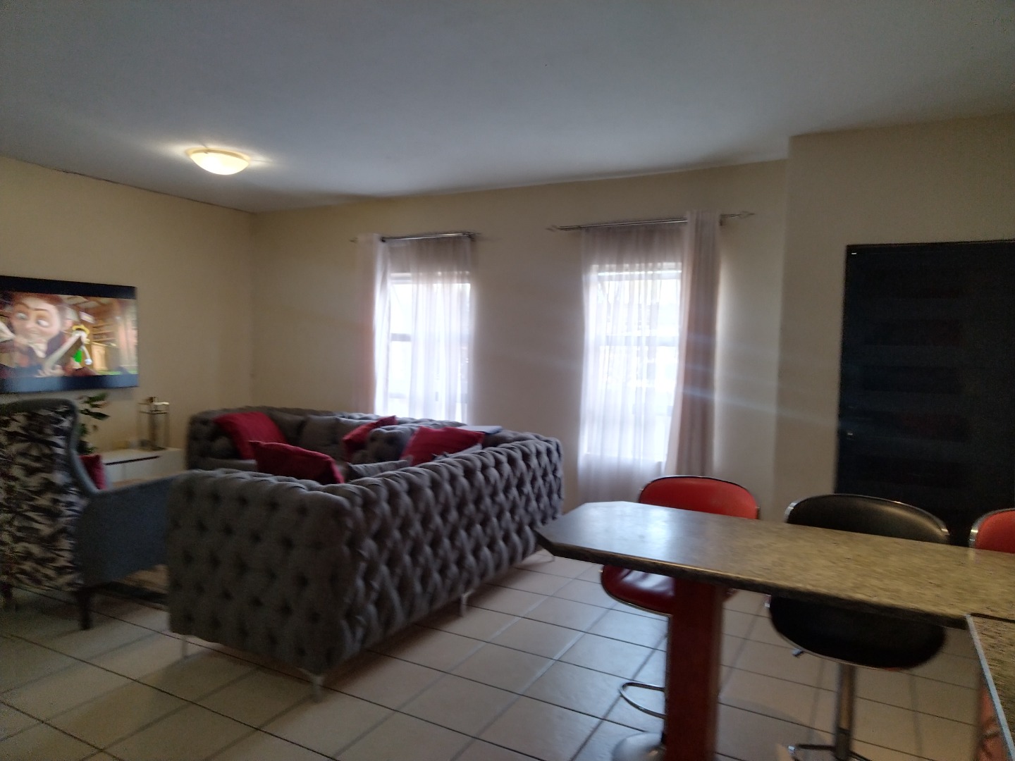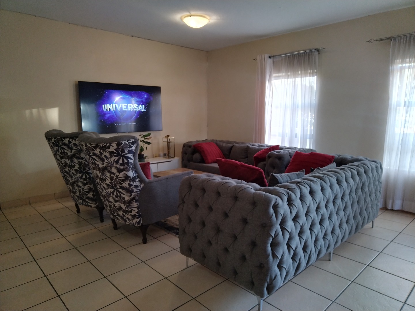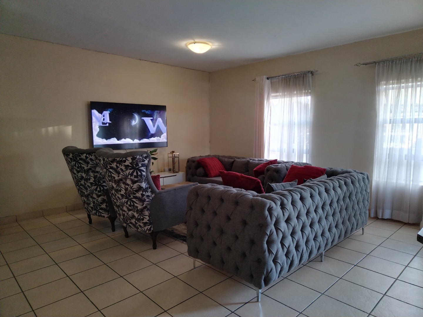 nestled within a secure estate in Brakpan North, To Let. this meticulously designed 95 sqm residence offers an exceptional opportunity for discerning buyers seeking country living with modern conveniences. The property forms part of a well-maintained complex, characterised by its contemporary architectural style, light grey facades, and tropical landscaping, providing a serene and aesthetically pleasing environment.