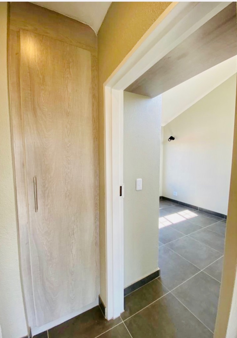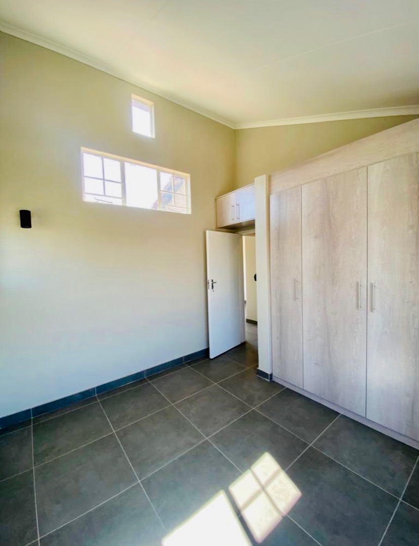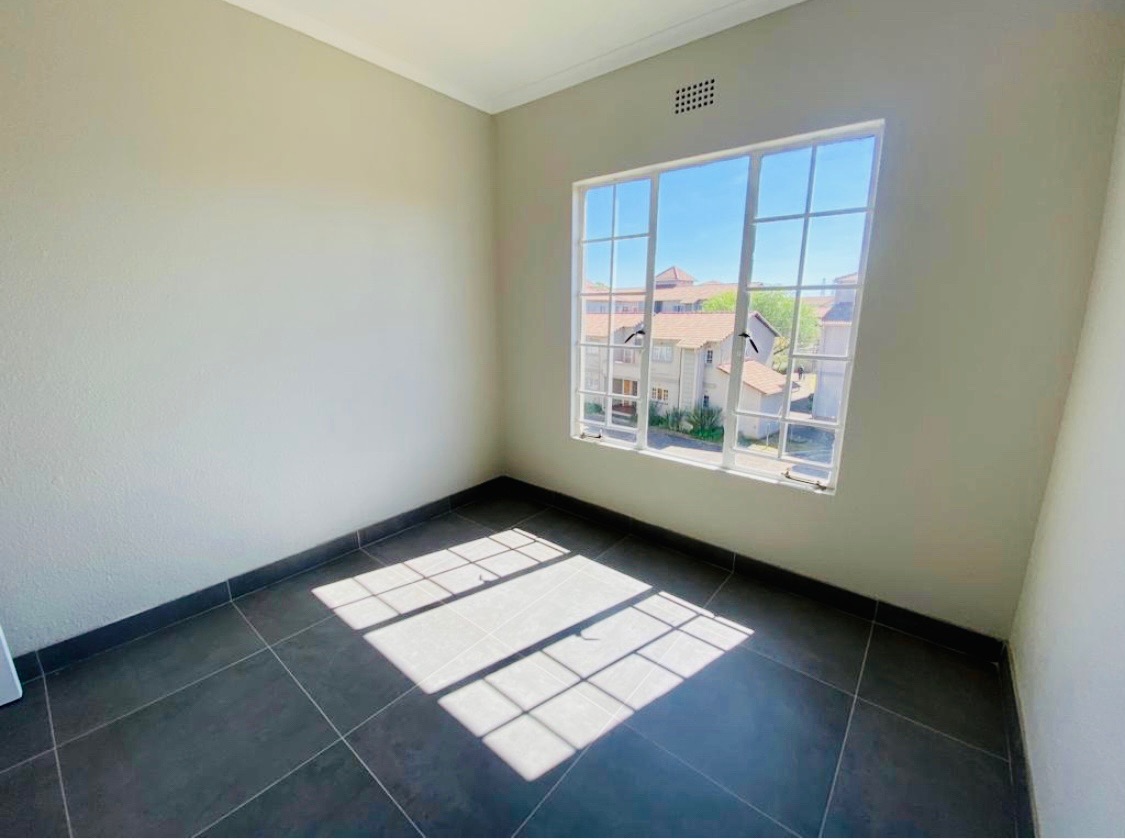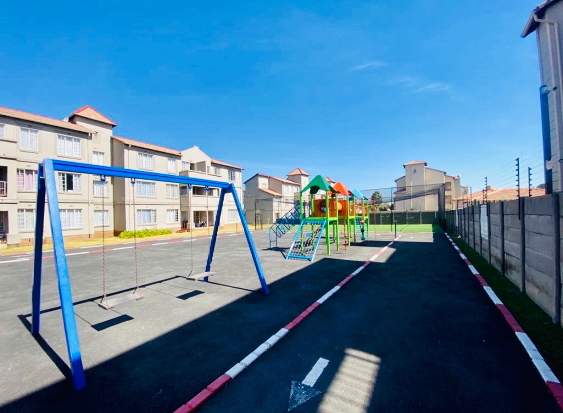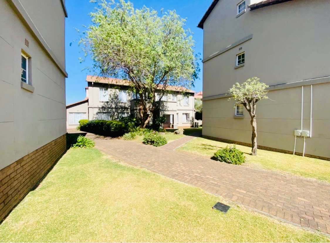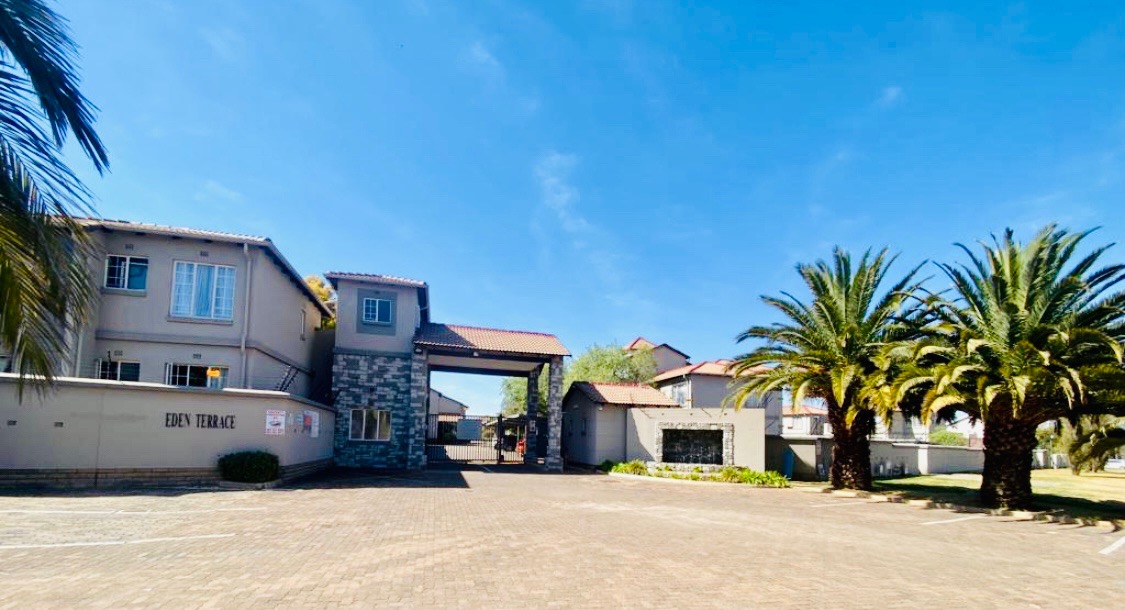 Discover modern living in this inviting 2-bedroom, 1-bathroom apartment, ideally situated within the secure Eden Terrace complex in Eden Glen, Edenvale. This contemporary unit features an open-plan layout, seamlessly connecting the lounge and family TV room to a well-appointed kitchen. The kitchen boasts sleek light wood-look cabinetry, dark countertops, a built-in hob, and ample storage, including a tall pantry-style cupboard, all complemented by durable dark tiled flooring. Natural light floods the living spaces, enhanced by recessed ceiling lights. The two comfortable bedrooms offer bright, clean spaces with neutral walls and modern dark tiled flooring. Each bedroom benefits from generous natural light and includes built-in wardrobes for practical storage. The stylish bathroom features modern fixtures, a walk-in shower with a rain showerhead, and a vanity with integrated storage, providing a refreshing retreat. A private balcony offers an outdoor extension to the living area. Residents of this security complex enjoy access to a range of communal amenities, including a sparkling swimming pool, a clubhouse, and a communal braai area, perfect for relaxation and entertaining. The property includes one dedicated parking bay, with ample additional parking options available within the well-maintained grounds. With 24-hour security, an access gate, security post, and electric fencing, peace of mind is assured. Eden Glen offers a convenient suburban lifestyle with scenic views, making this apartment an excellent choice for professionals or small families seeking comfort and security. Key Features: * 2 Bedrooms, 1 Bathroom * Open-plan living area * Modern kitchen with built-in hob * Built-in wardrobes * Balcony * Communal swimming pool and clubhouse * Communal braai area * One dedicated parking bay * 24-hour security with access control