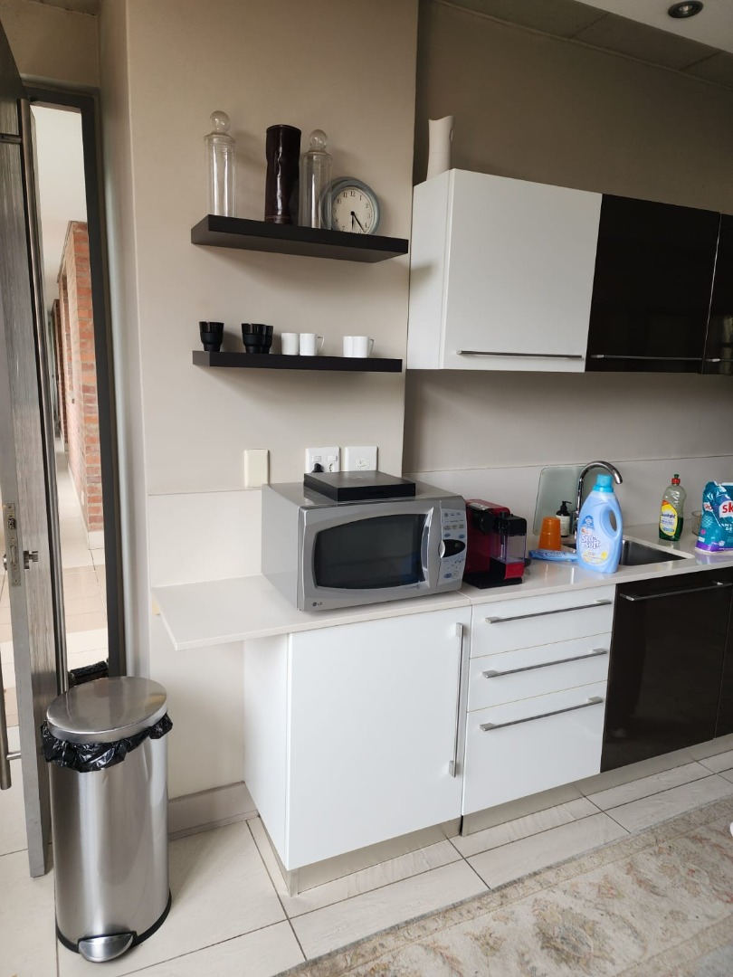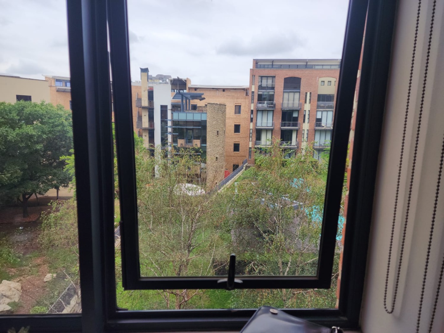 Apartment is light, bright and spacious, with north and south facing bedrooms. Views of complex garden, swimming pool as well as Melrose Arch Precinct on the Square. Awesome views! Superbly located. On the doorstep to all amenities, restaurants and cosmopolitan atmosphere. Safe and secure. The building has a back up generator, during load-shedding. Undercover basement parking as well as ample visitor parking. Convenient pay as you go electricity.