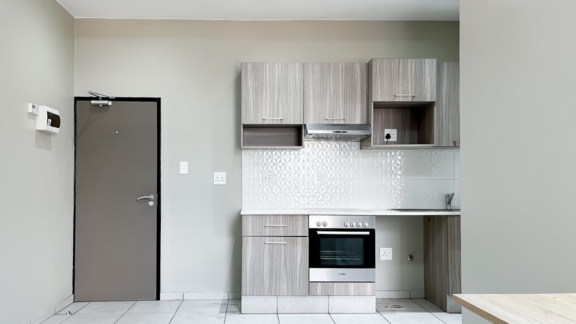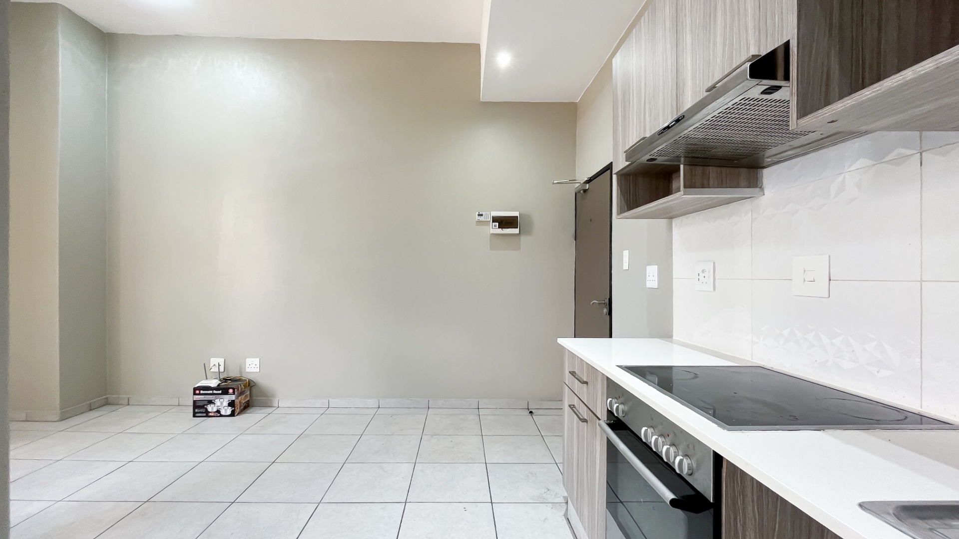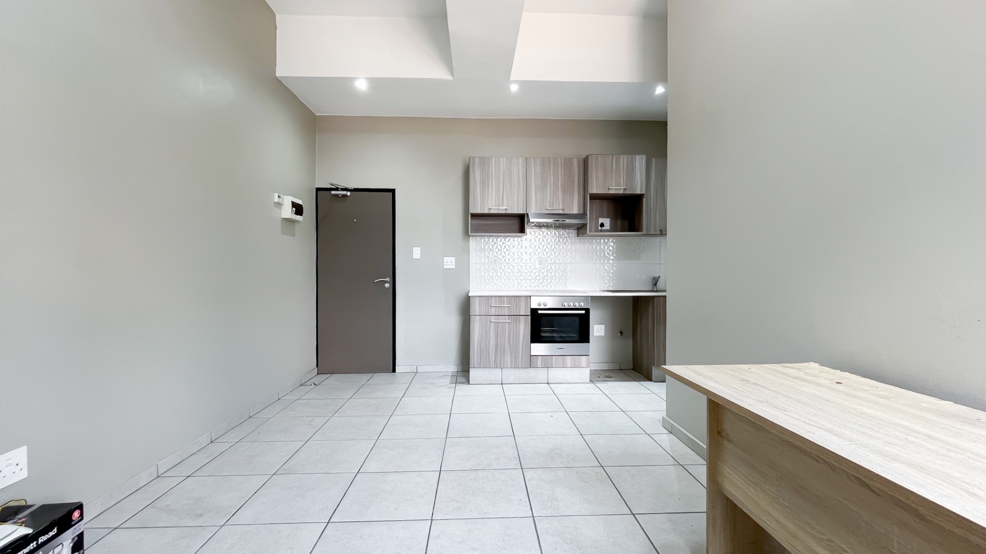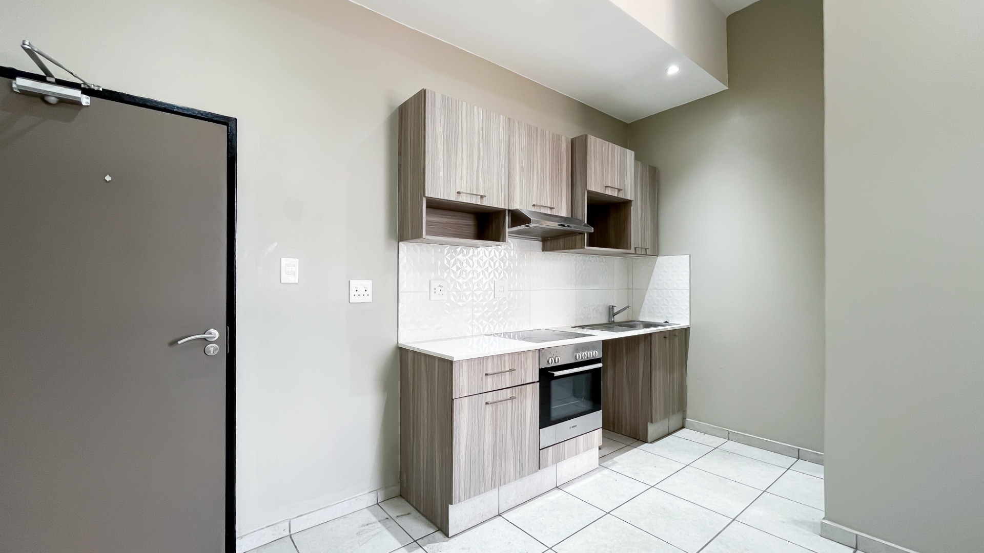 The generously sized bedroom comfortably accommodates a king-size bed with additional room for your lifestyle needs. Wall-to-wall built-in cupboards offer ample packing space. The modern en-suite bathroom is fitted with a sleek shower cubicle, basin, and loo.